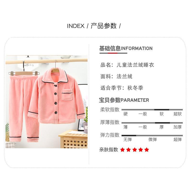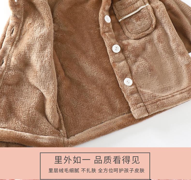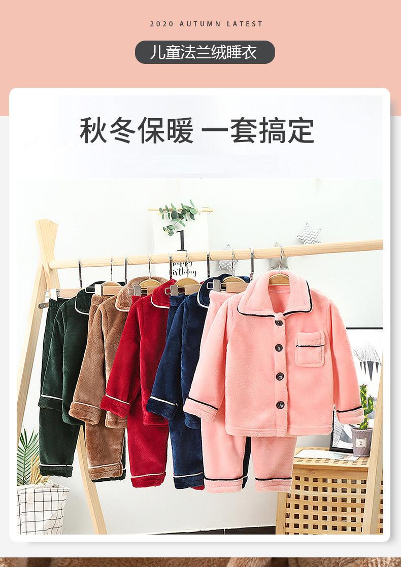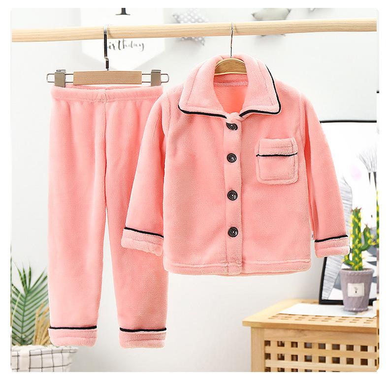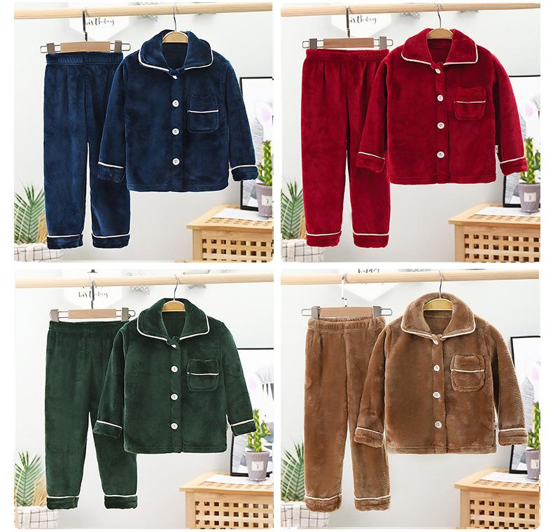 Conjunto de pijama de franela para niños, forro polar coral, para niños y niñas, otoño e invierno, de doble cara, grueso, para el hogar.
