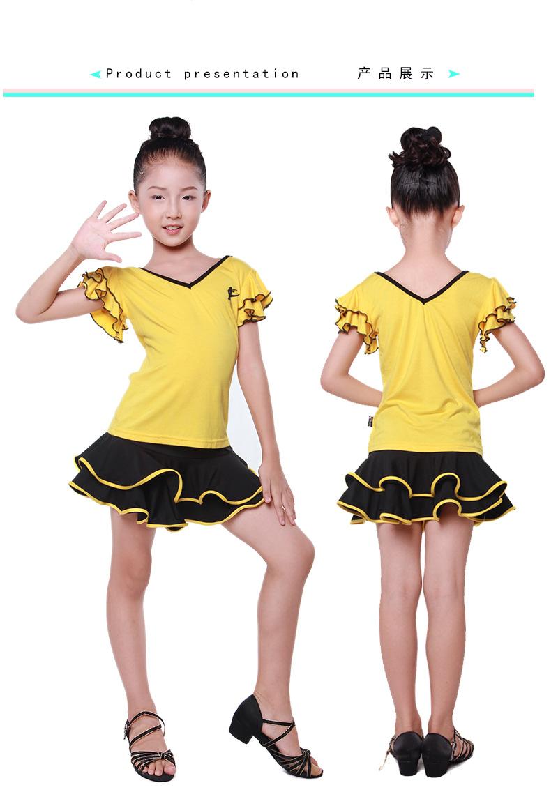 Traje de Ropa Latina de Verano para Niños Falda Hoja de Loto Ropa de Práctica Ropa de Práctica para Niños Ropa de Actuación Ropa de Baile para Niñas Pasarela