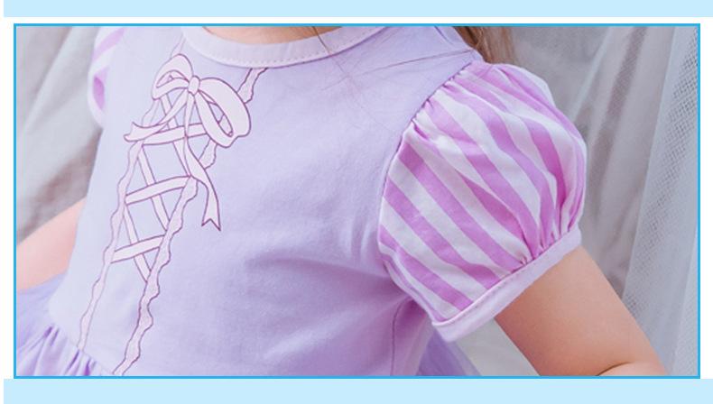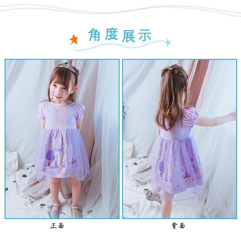 Vestido de princesa Elsa de Frozen de manga corta colorido, ropa infantil de comercio exterior, vestido de niña, disfraz de actuación para el Día del Niño
