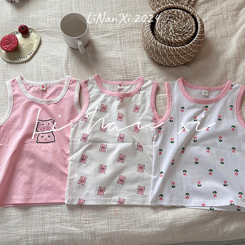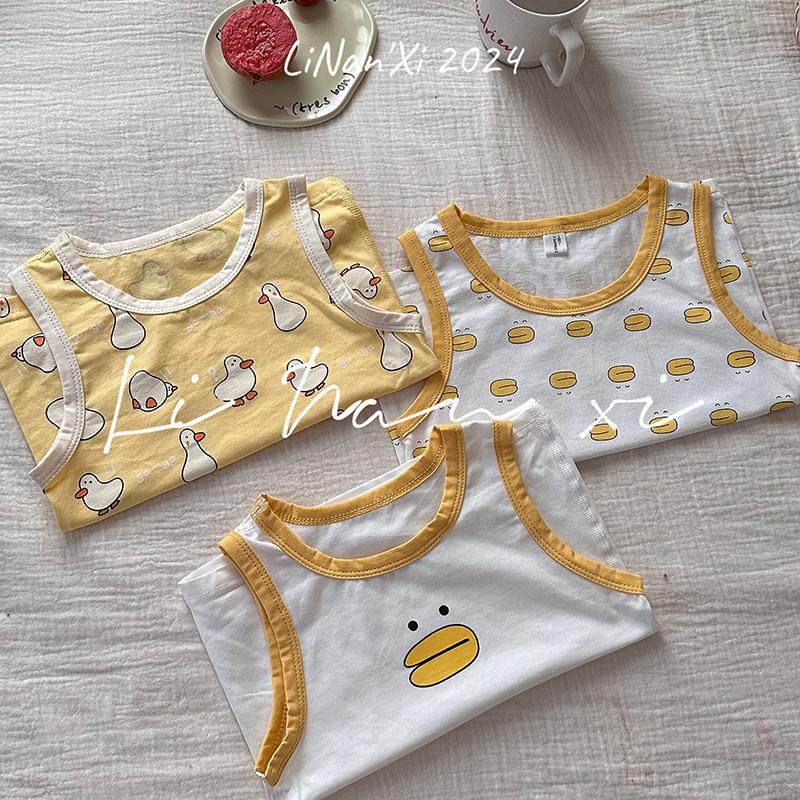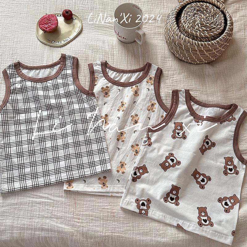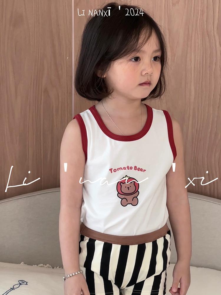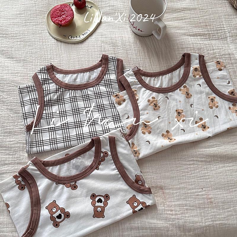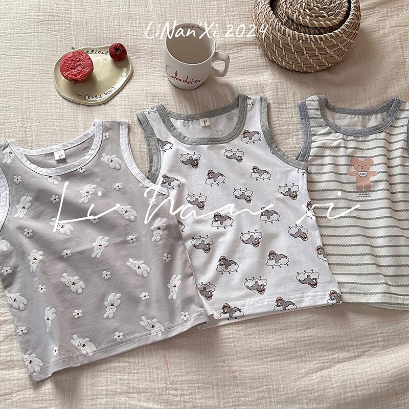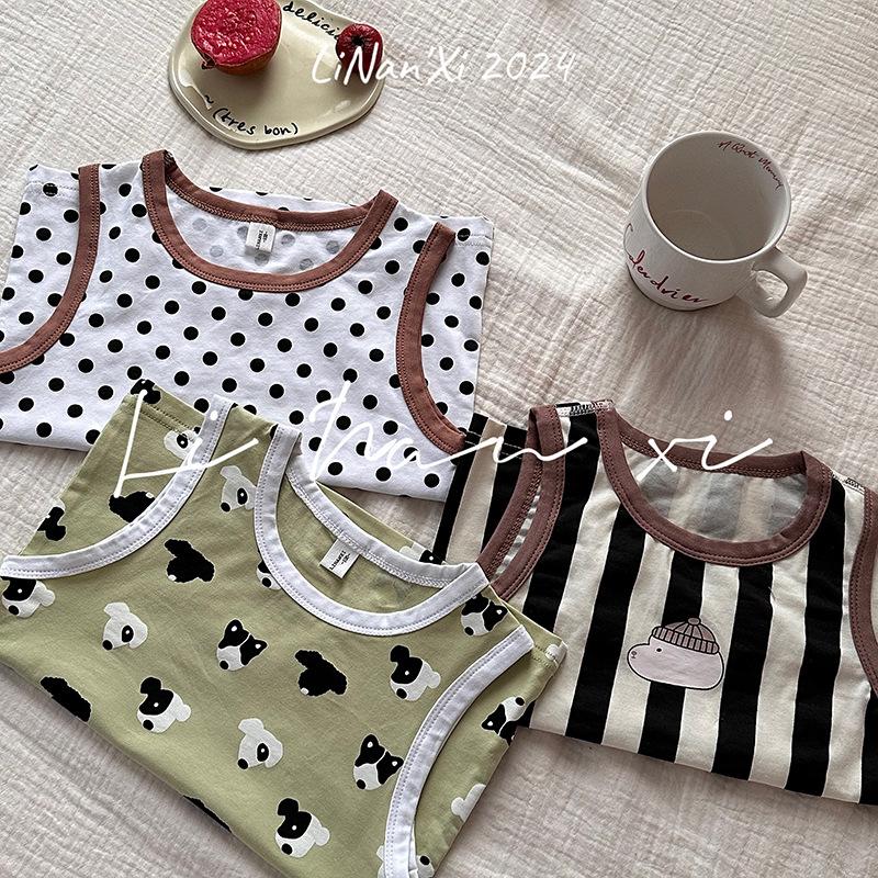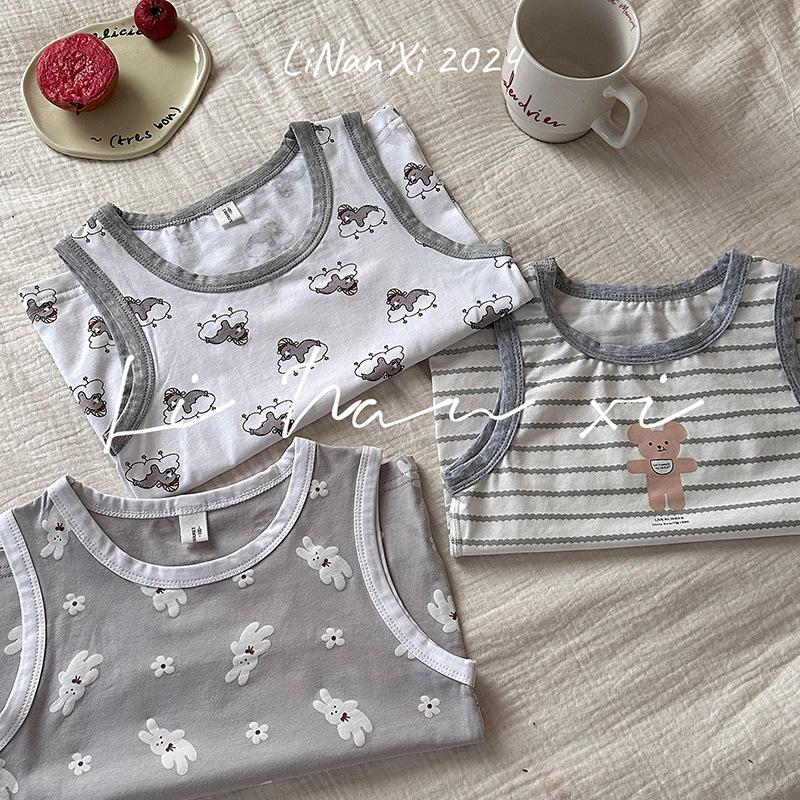 Chaleco infantil de verano de 24 años, nuevo para niños y niñas, para combinar con todo, para las cuatro estaciones, ropa de casa con dibujos animados, 3 piezas