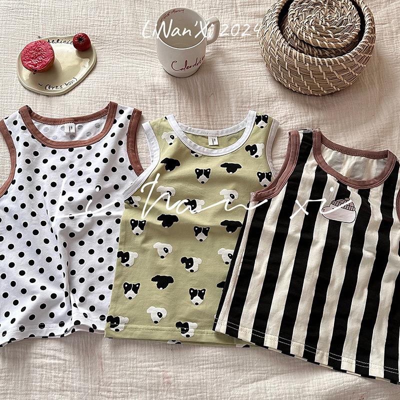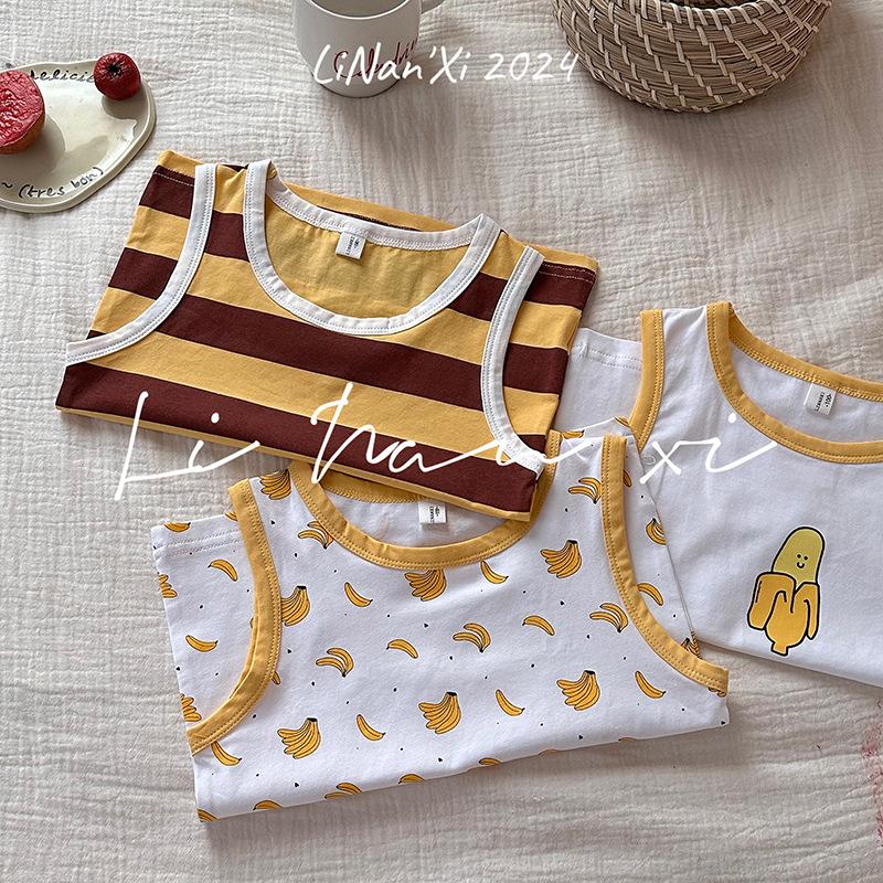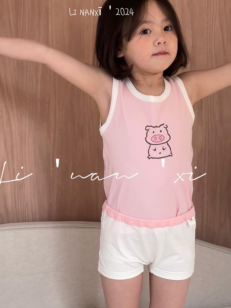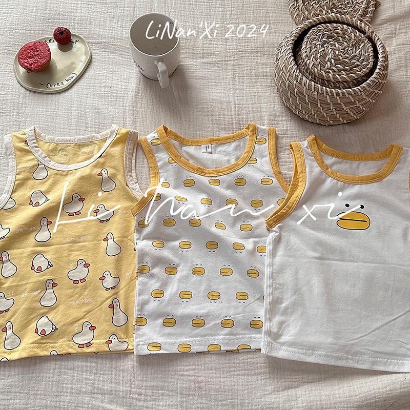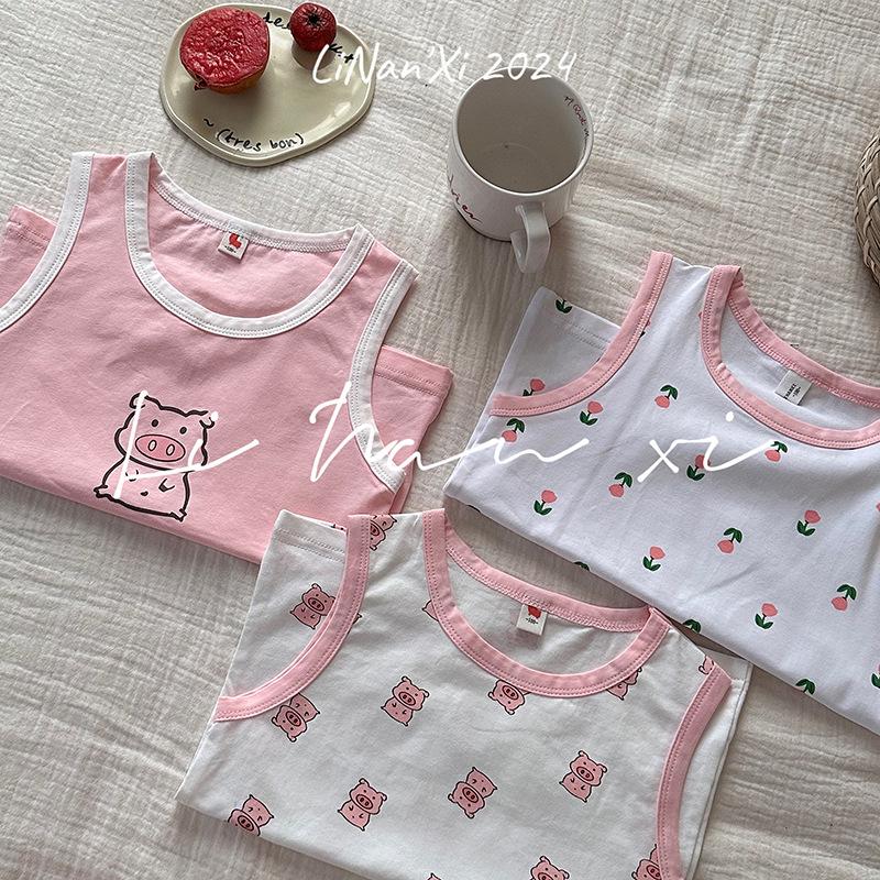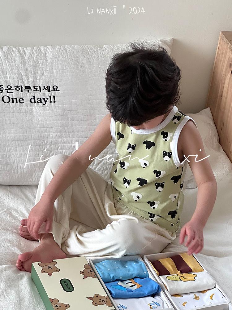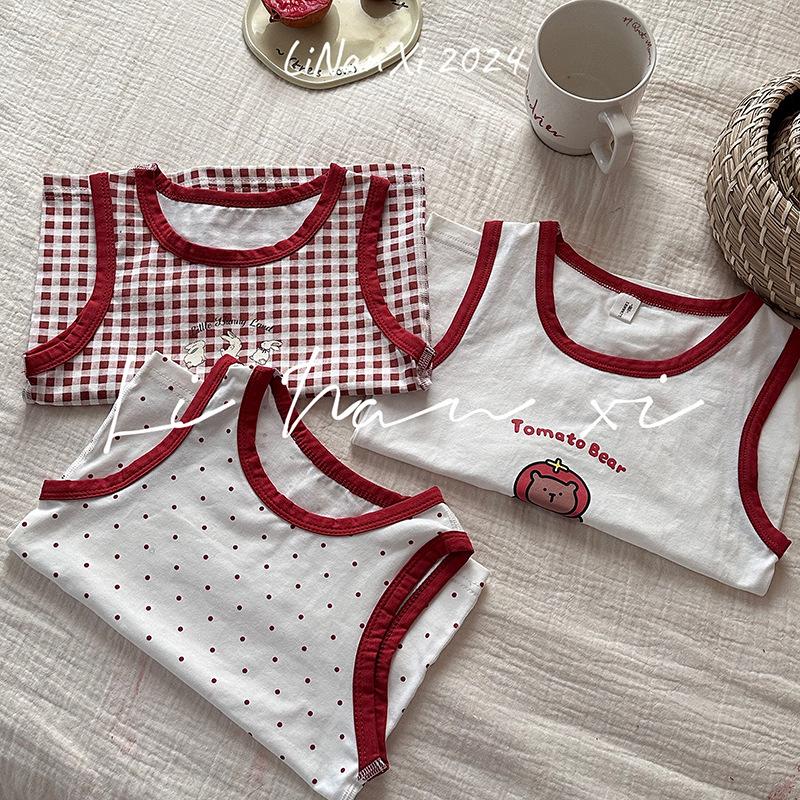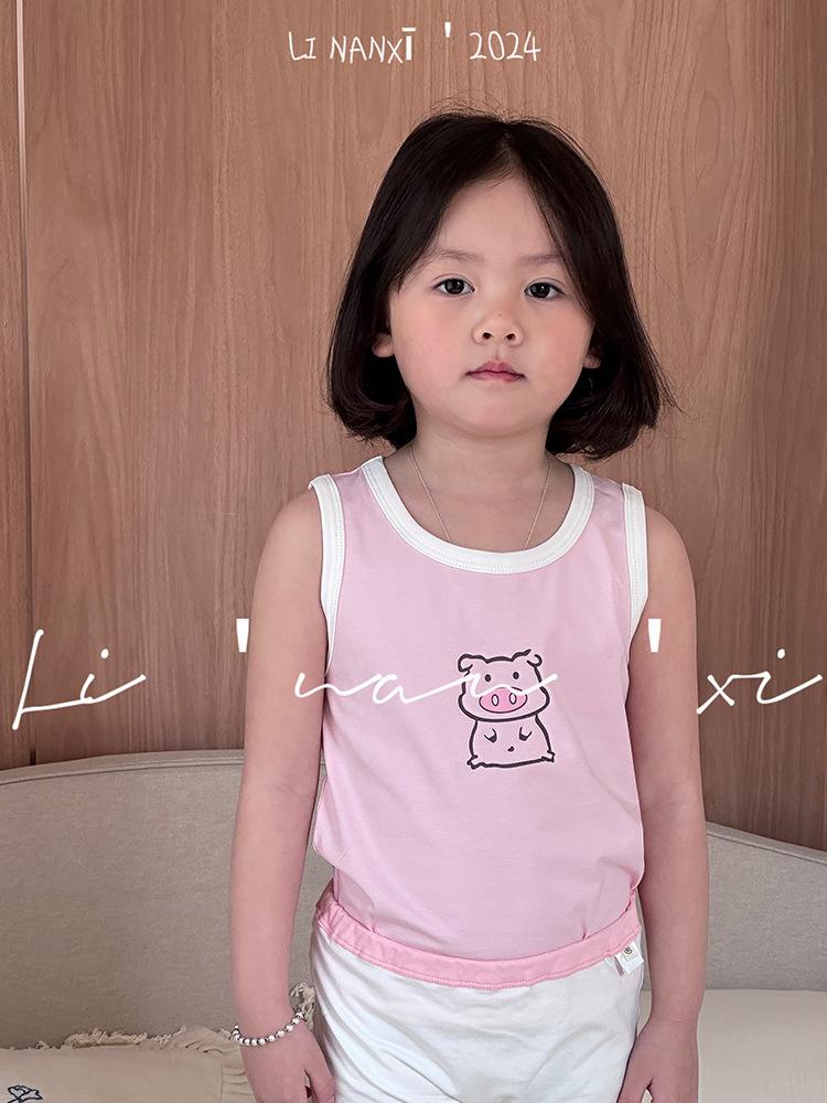 Chaleco infantil de verano de 24 años, nuevo para niños y niñas, para combinar con todo, para las cuatro estaciones, ropa de casa con dibujos animados, 3 piezas