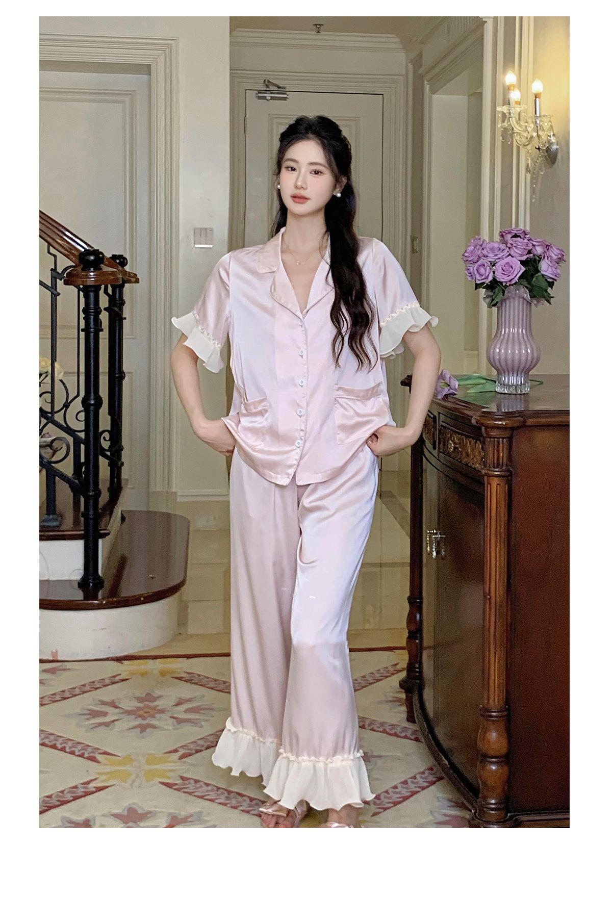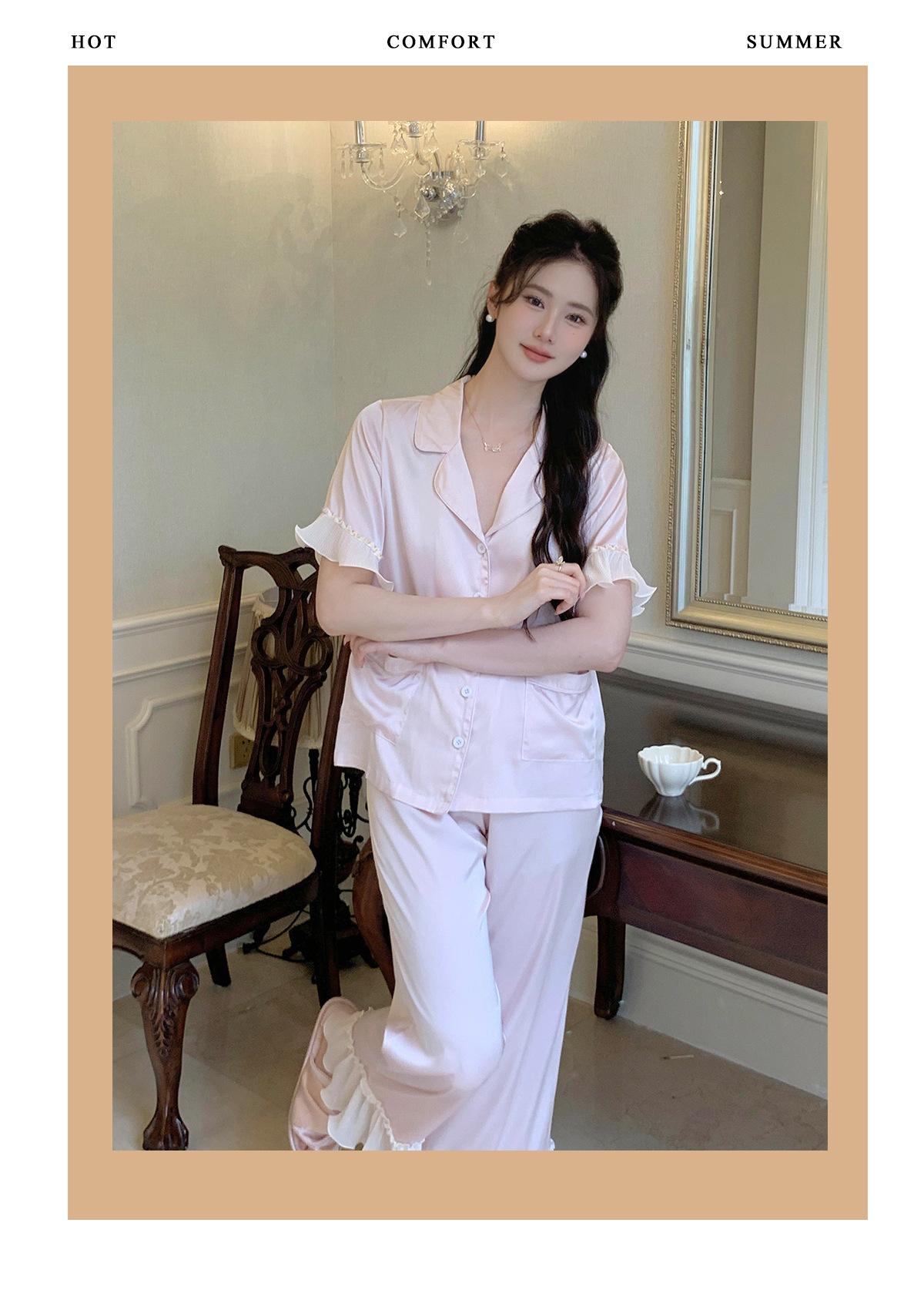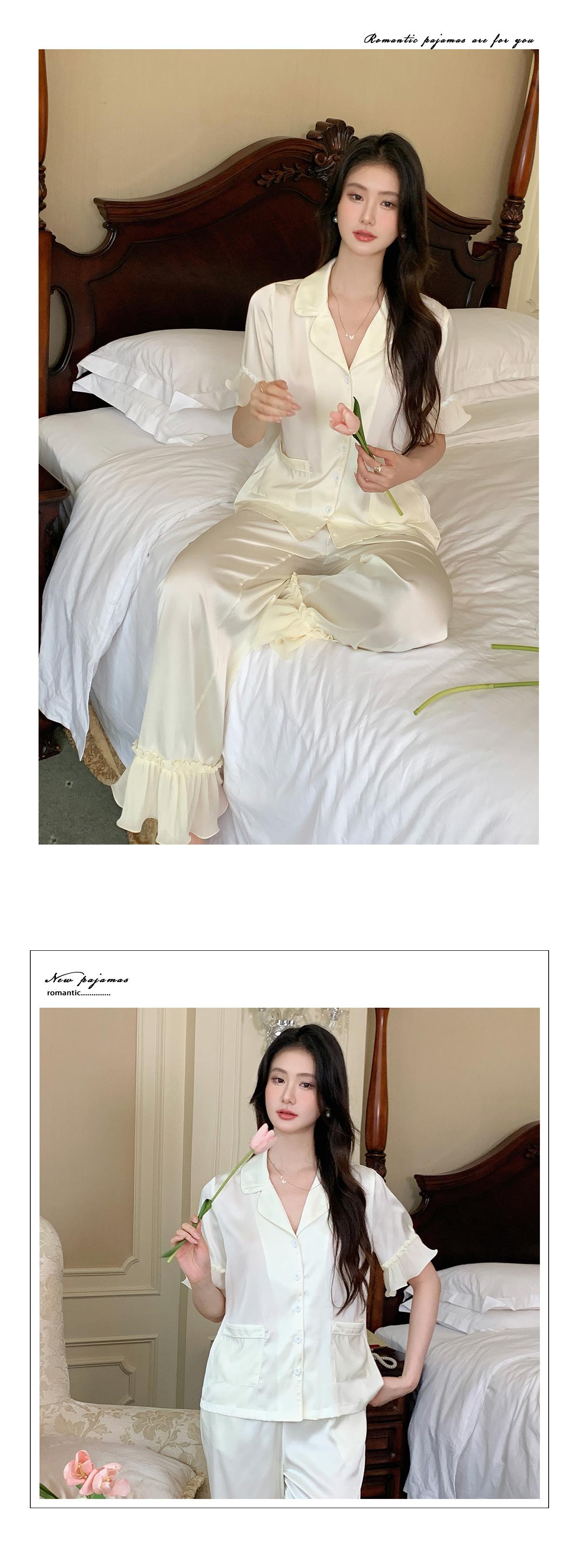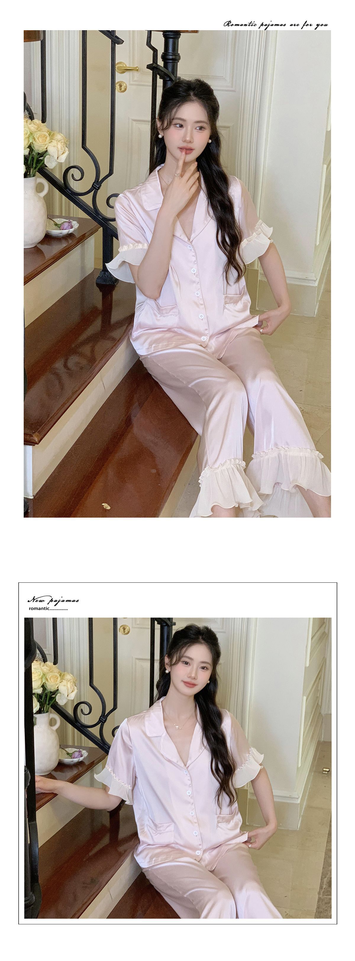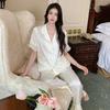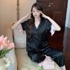 Conjunto de Pijama Francés Nuevo Pijama de Satén para Mujer Pantalones de Manga Corta Delgados Sueltos Se Puede Usar Fuera Ropa de Casa