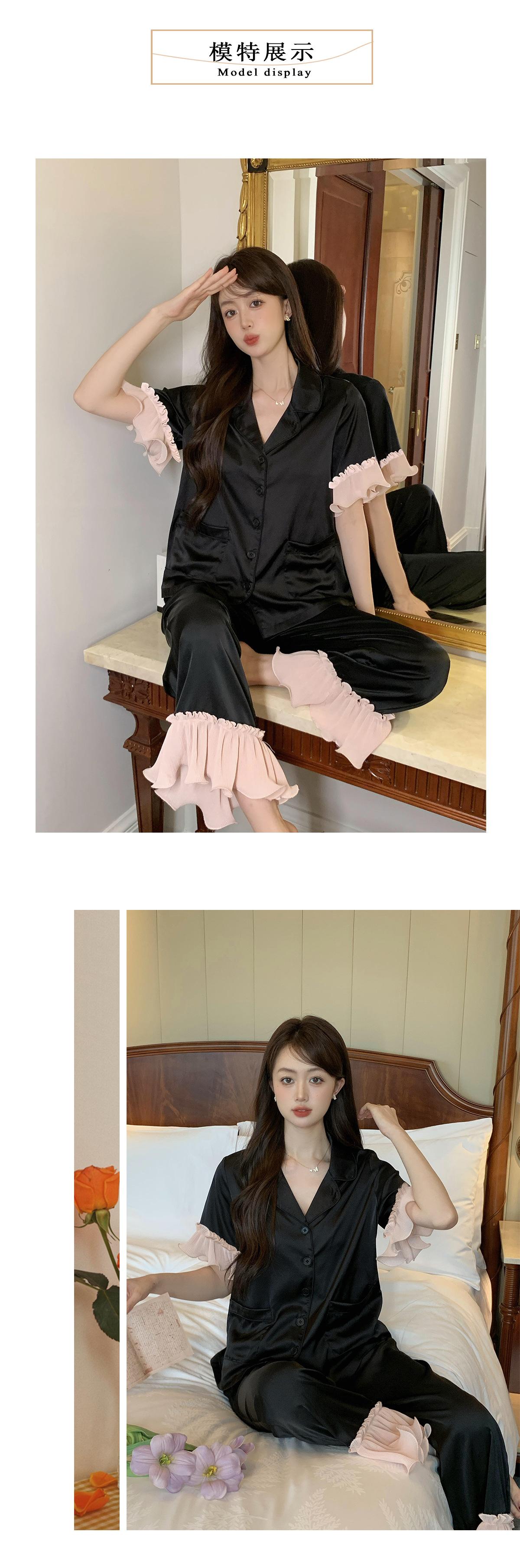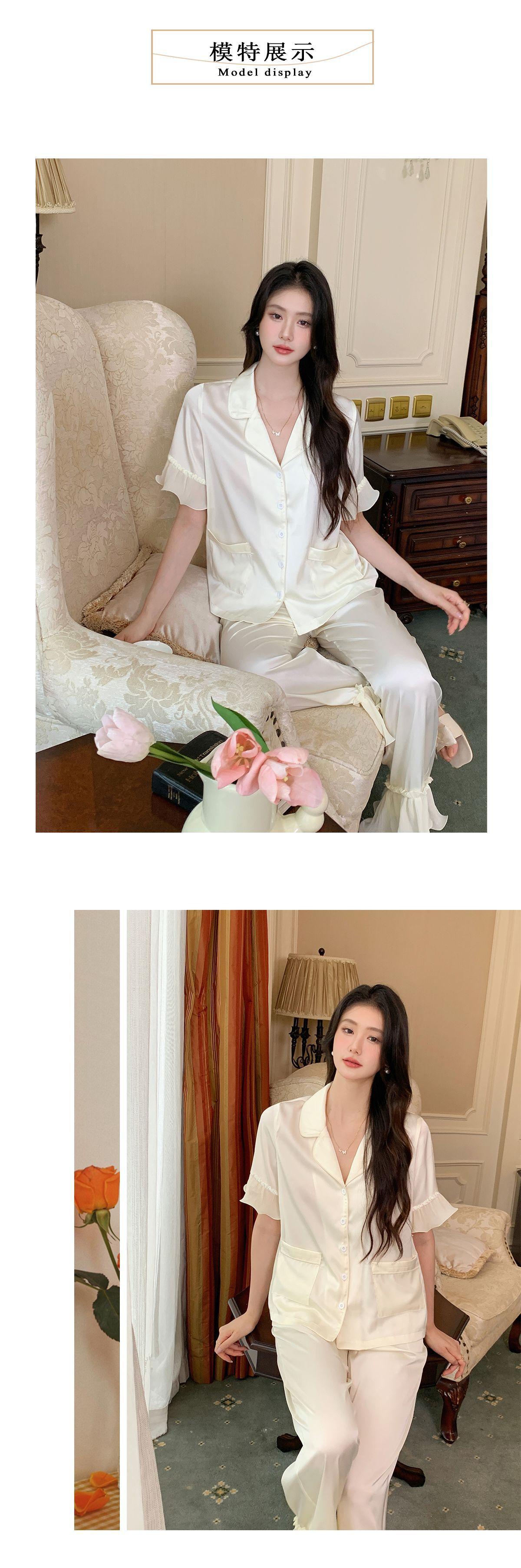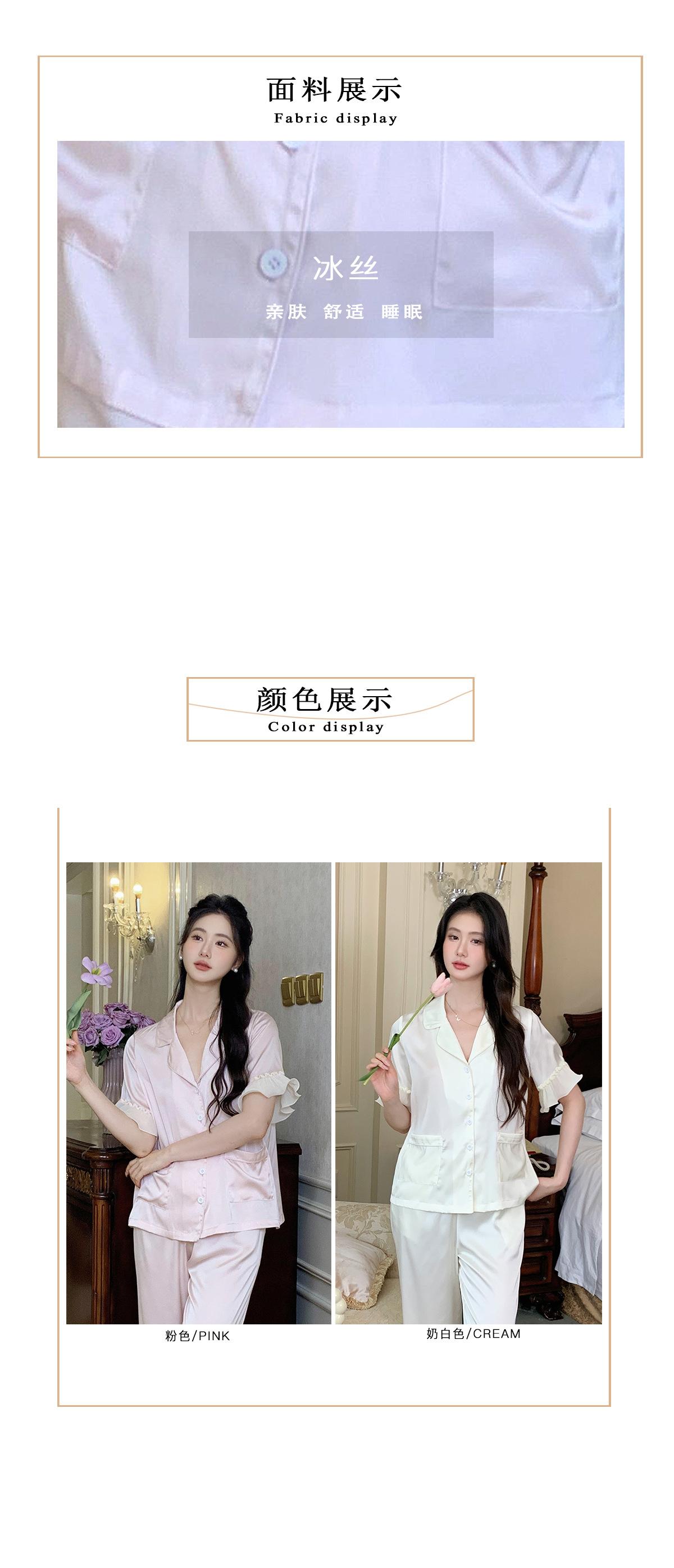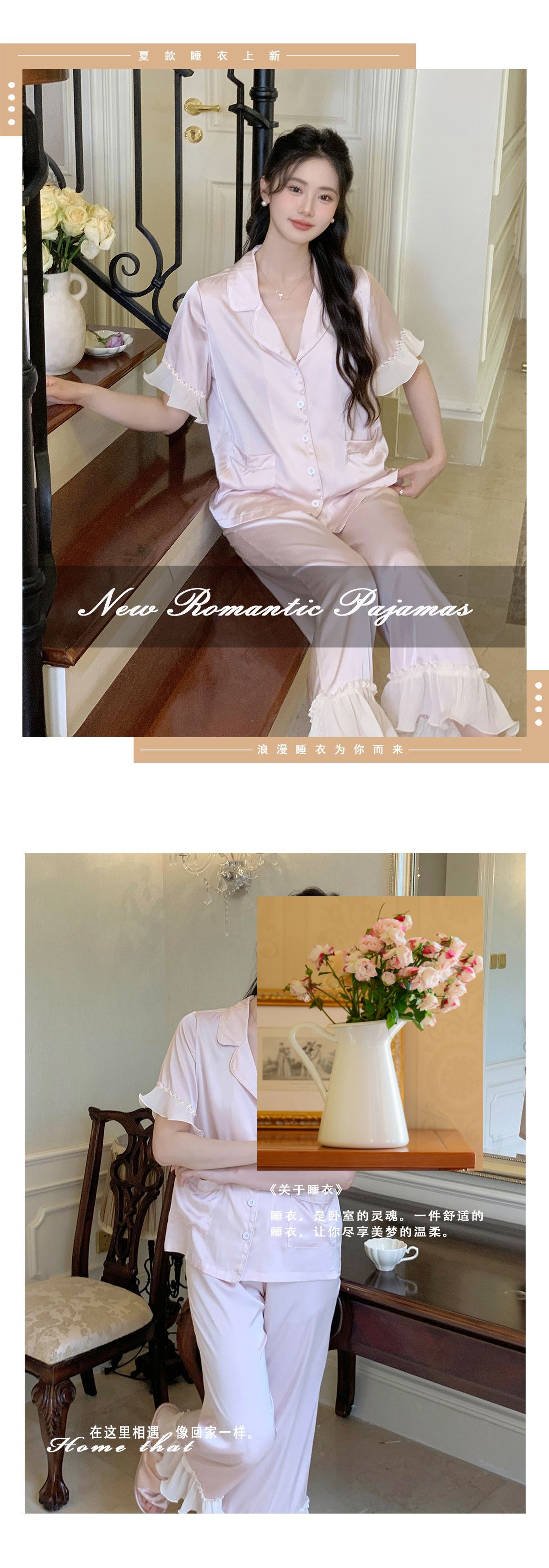 Conjunto de Pijama Francés Nuevo Pijama de Satén para Mujer Pantalones de Manga Corta Delgados Sueltos Se Puede Usar Fuera Ropa de Casa