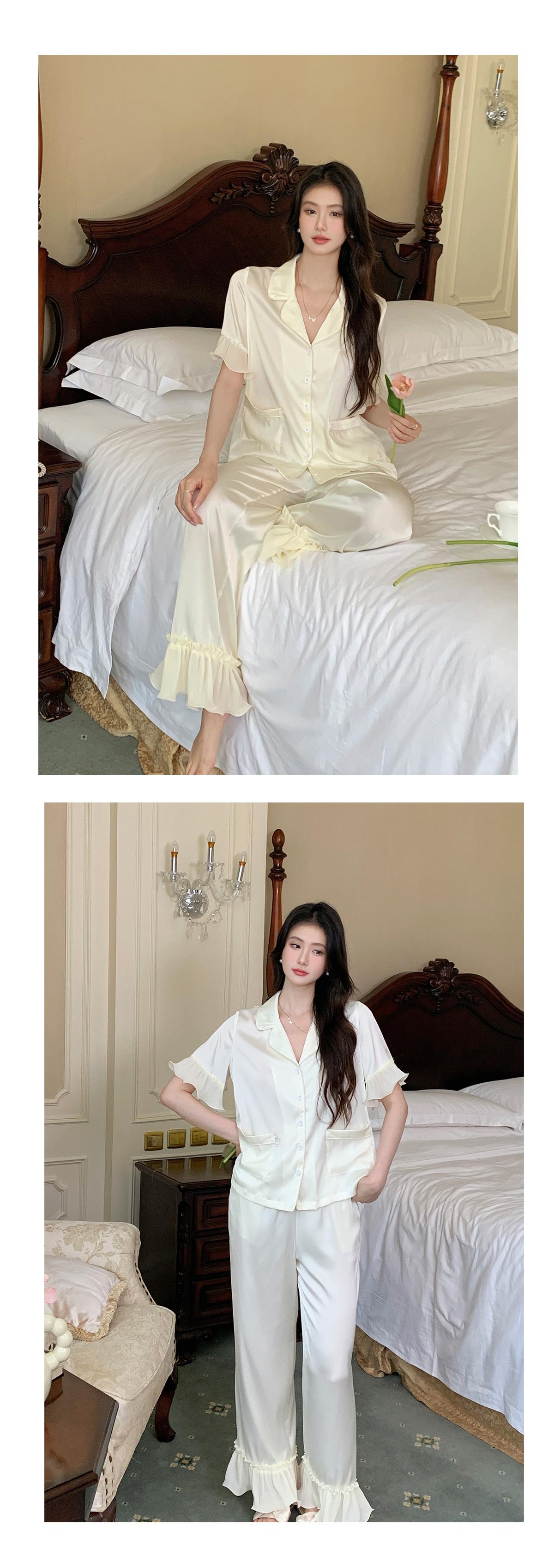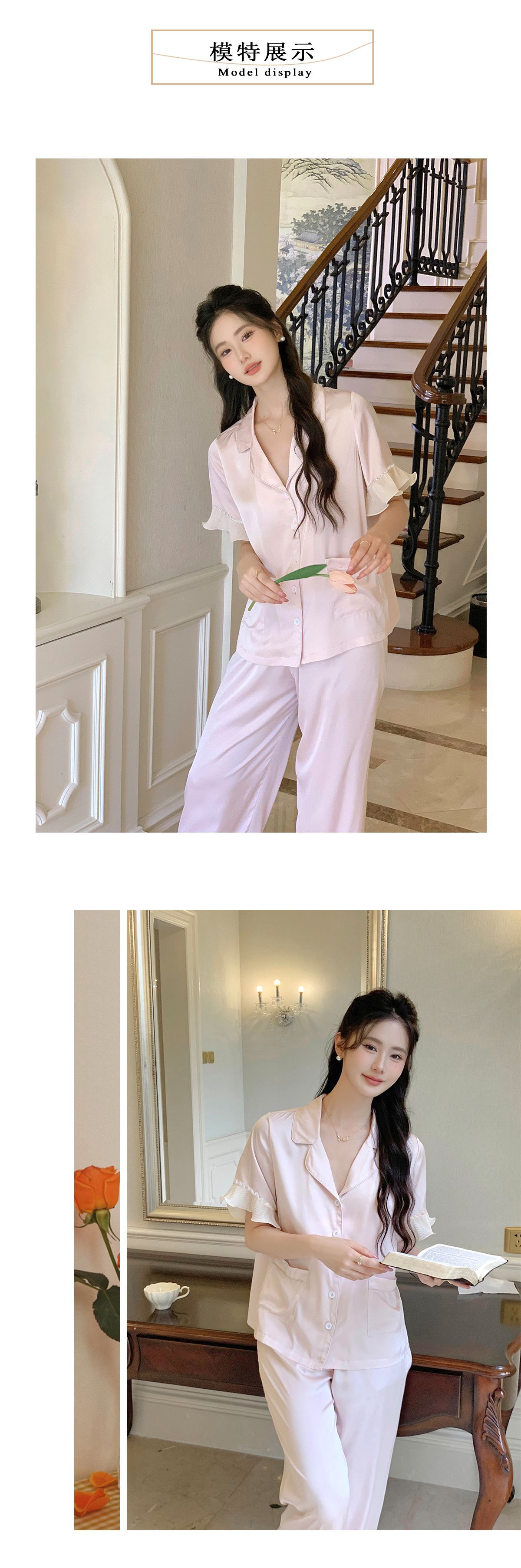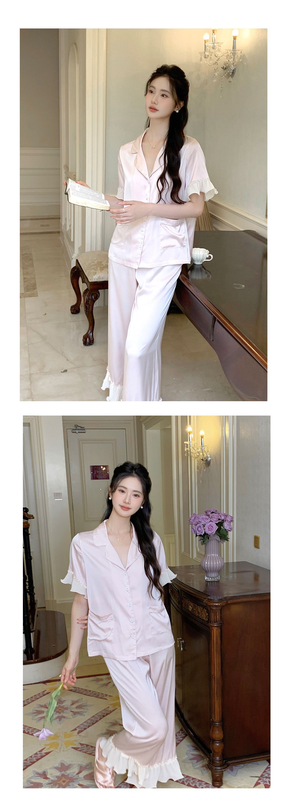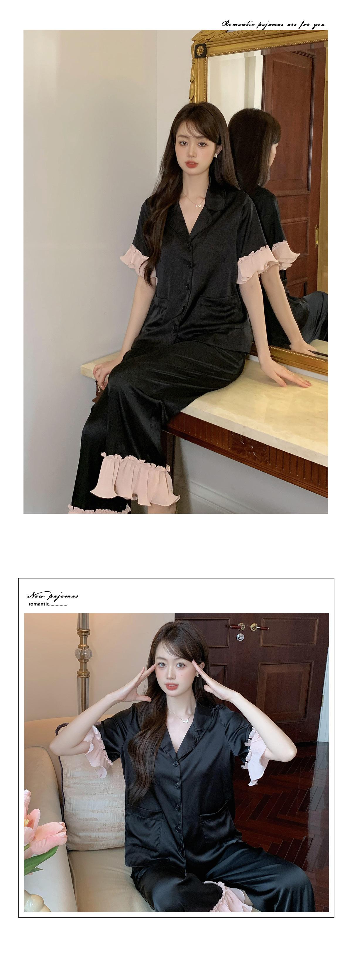 Conjunto de Pijama Francés Nuevo Pijama de Satén para Mujer Pantalones de Manga Corta Delgados Sueltos Se Puede Usar Fuera Ropa de Casa