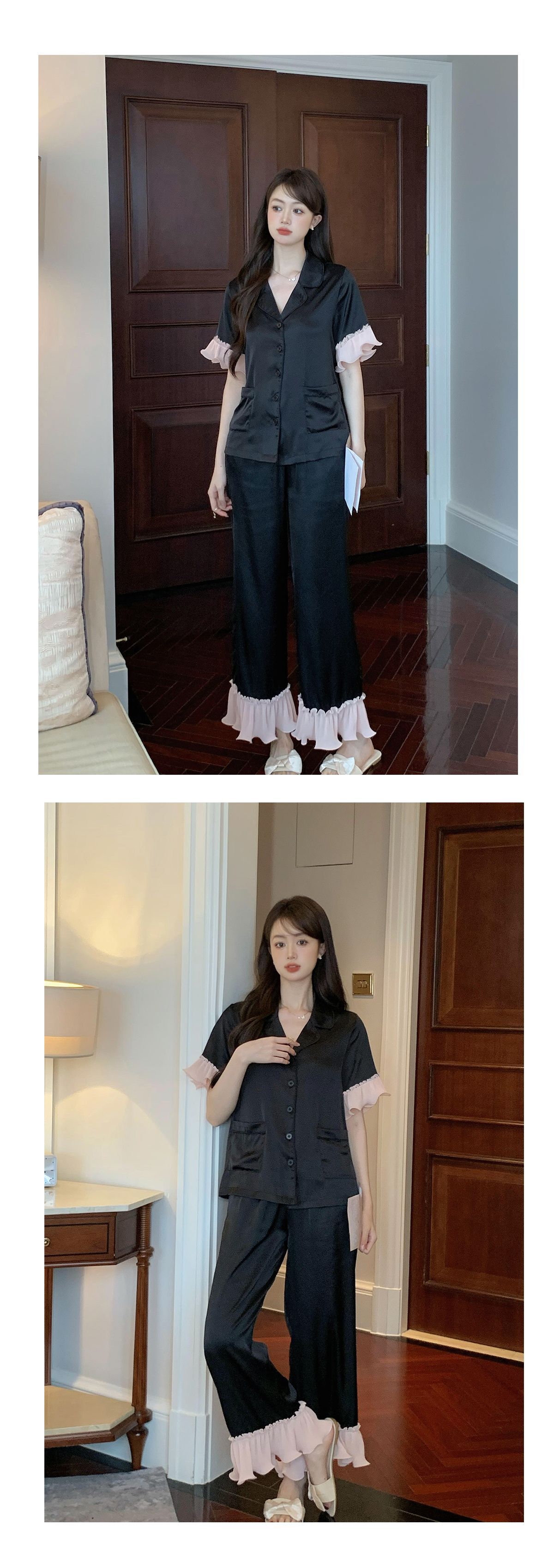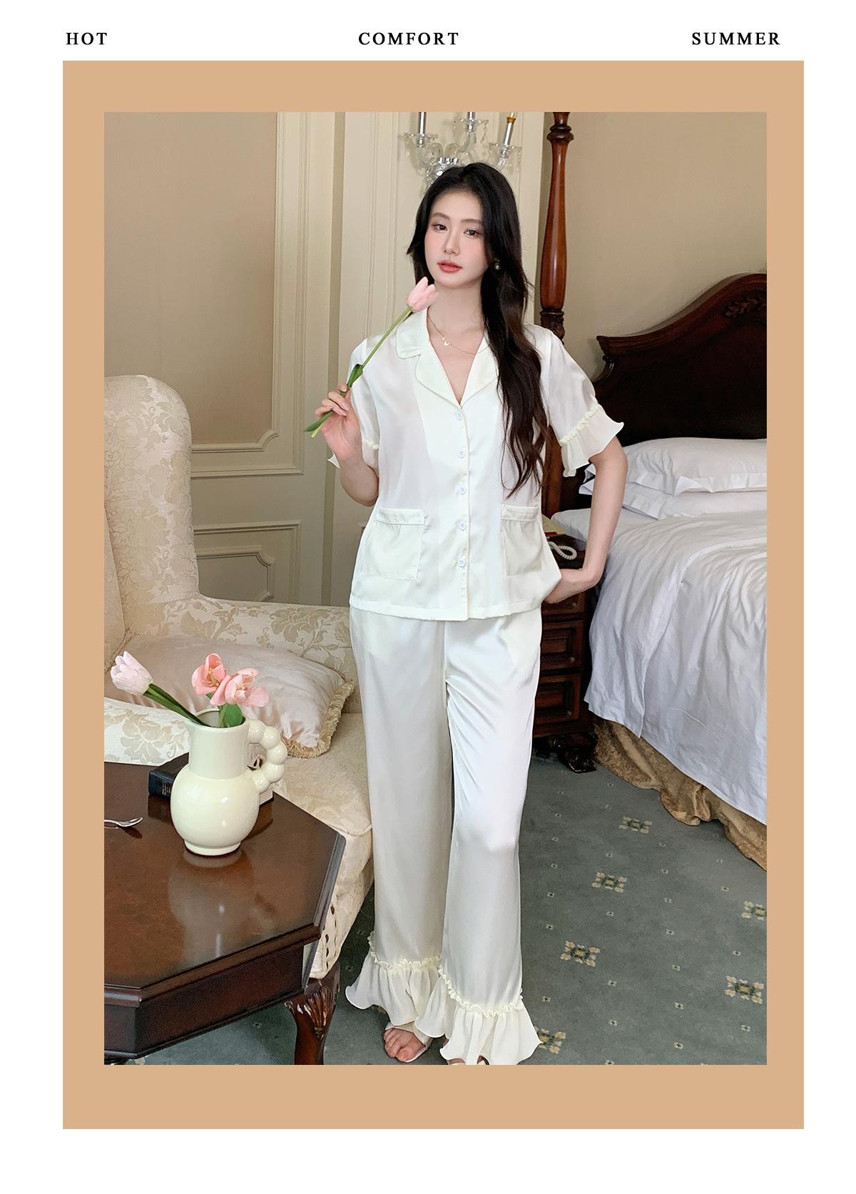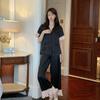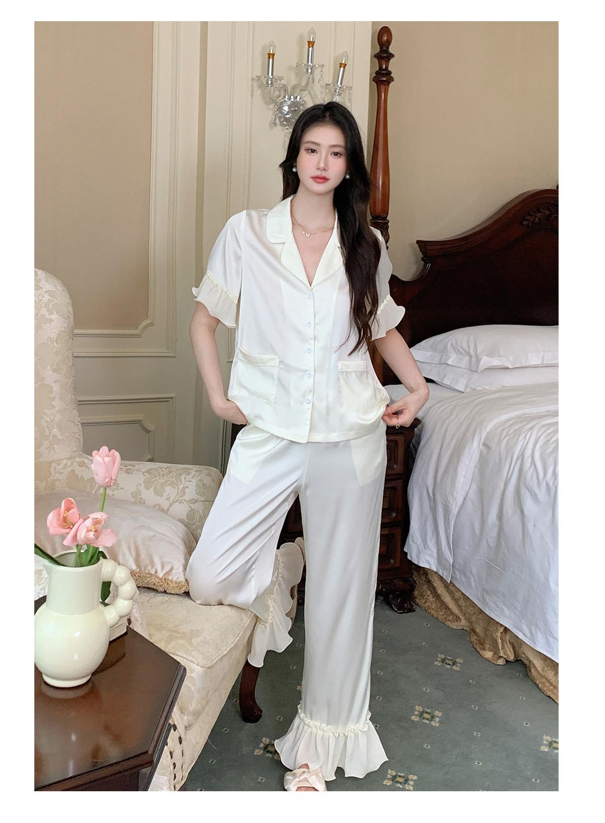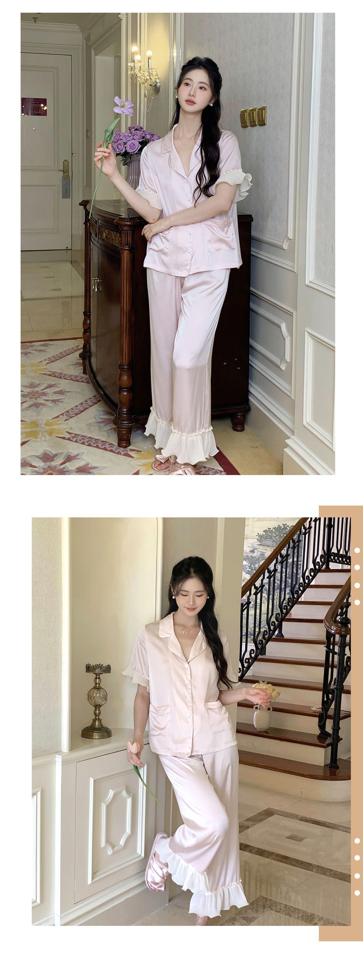 Conjunto de Pijama Francés Nuevo Pijama de Satén para Mujer Pantalones de Manga Corta Delgados Sueltos Se Puede Usar Fuera Ropa de Casa