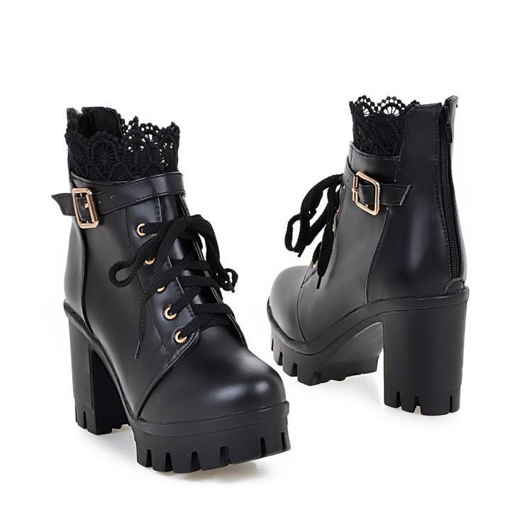 Invierno piel sintética corta en stock talla única punta redonda zapatos negros de viscosa botas Martin botas de media caña sgs