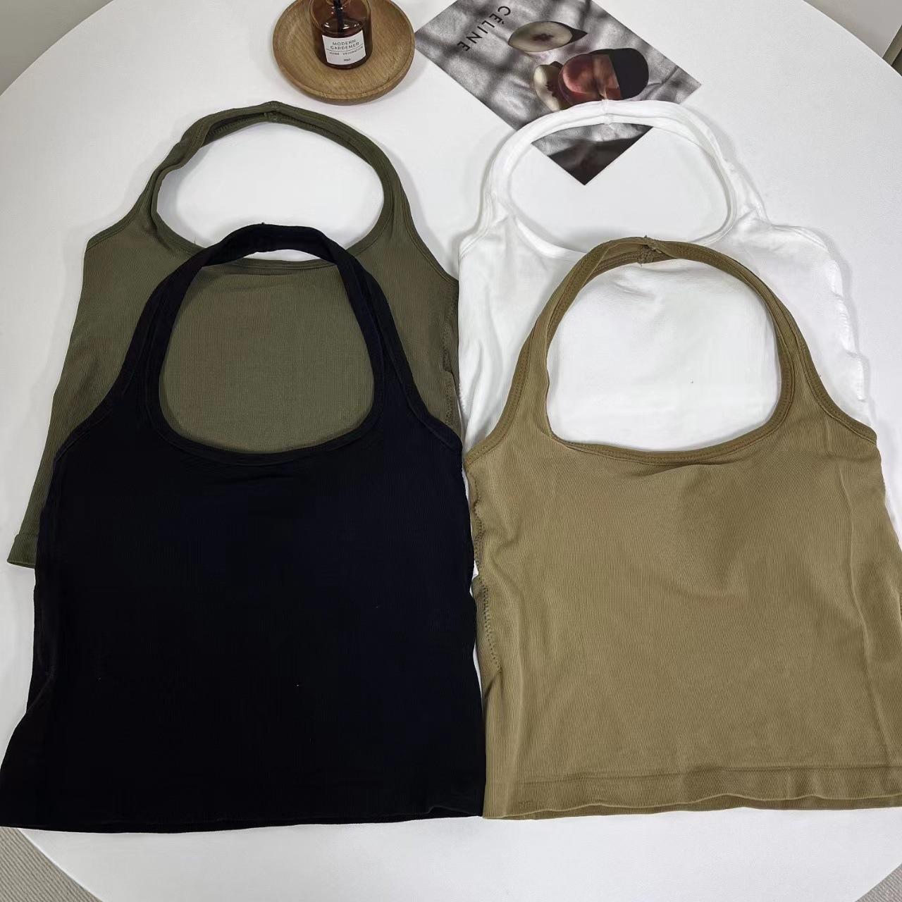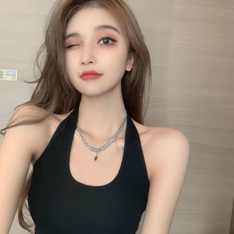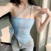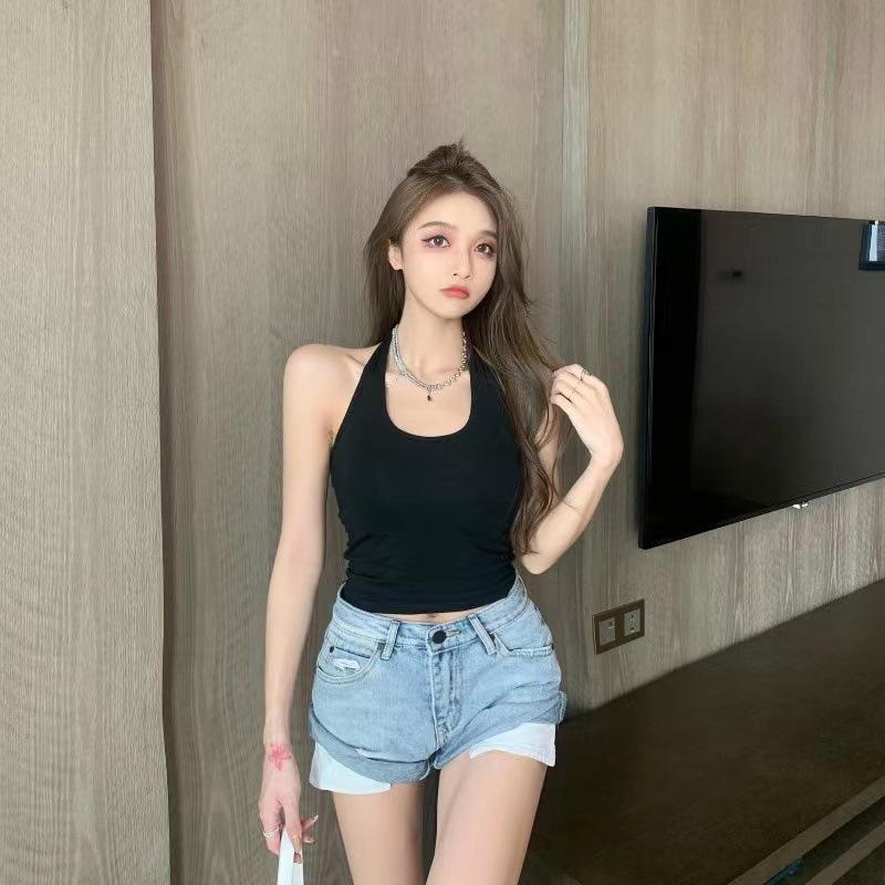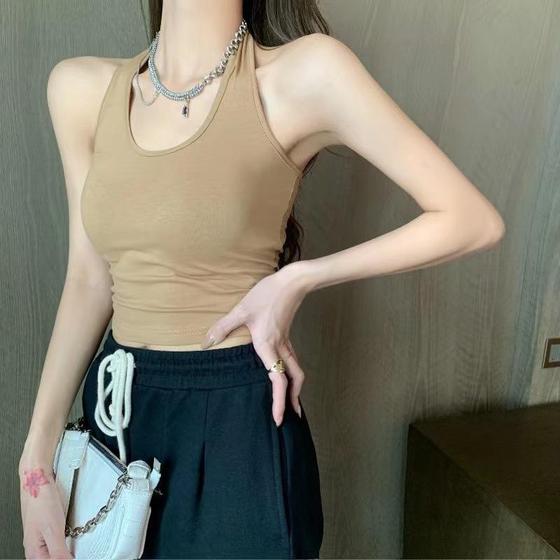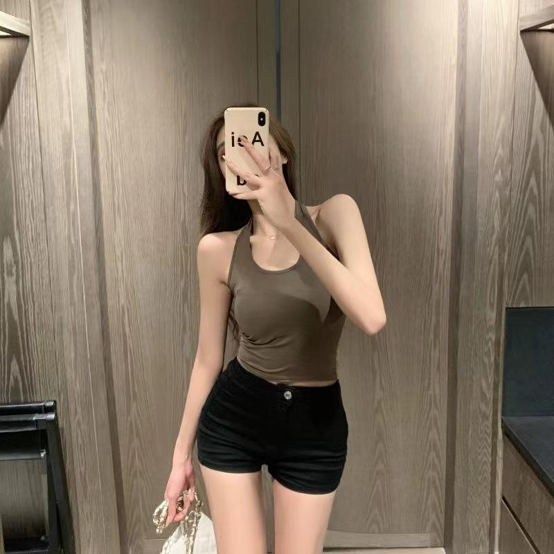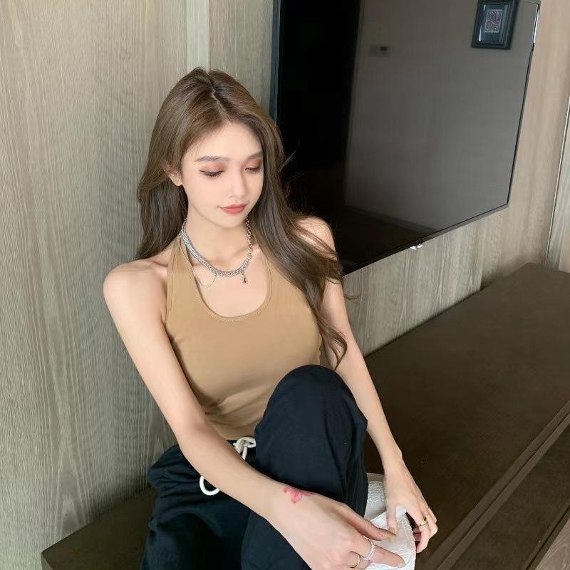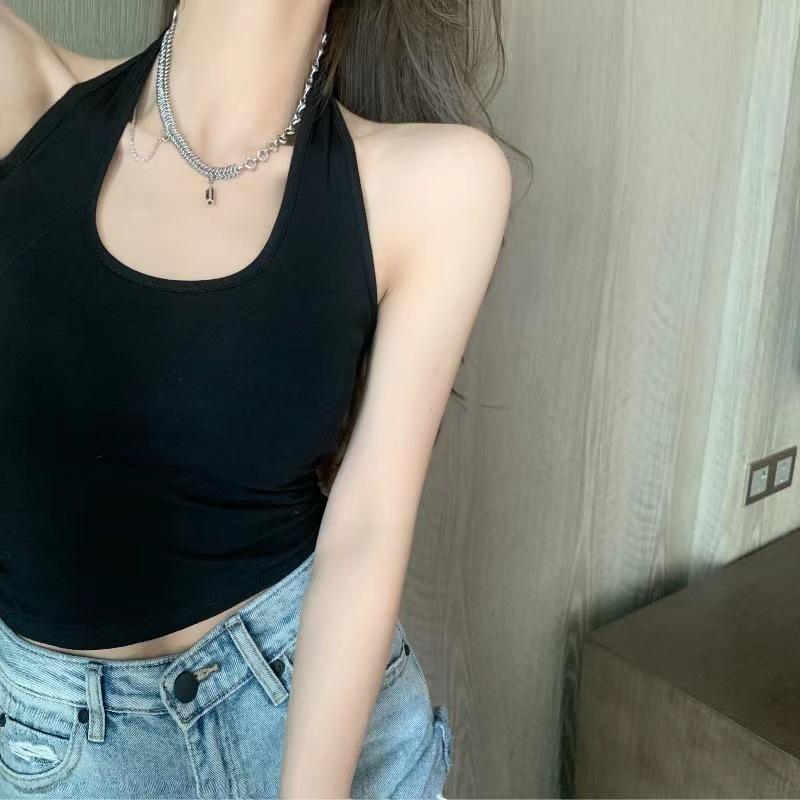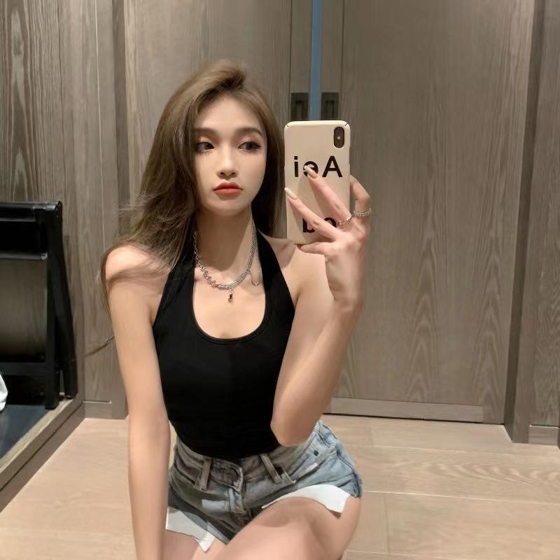 Nuevo Estilo Hermoso Top de Espalda Camisola de Cuello Halter Chaleco Chica Spice Irregular Ajustado Adelgazante Puro Interior Deseo Primavera Corto Mujer