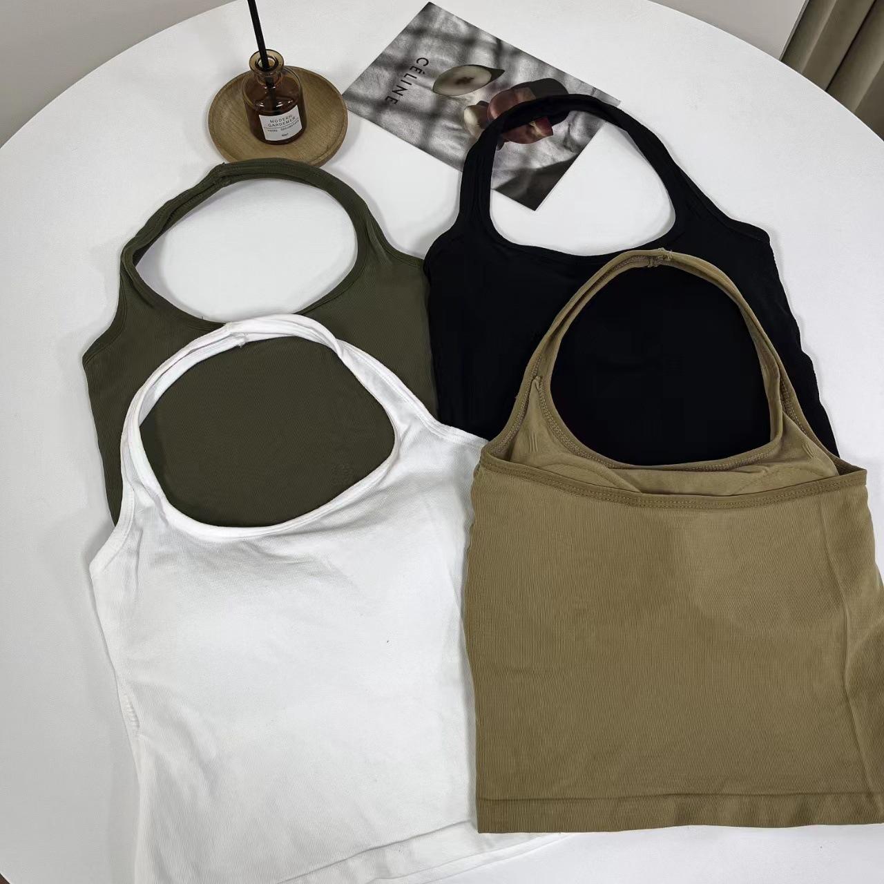 Nuevo estilo hermoso top de espalda halter camisola chica hot irregular ajustado delgado deseo puro ropa interior primavera estilo corto femenino