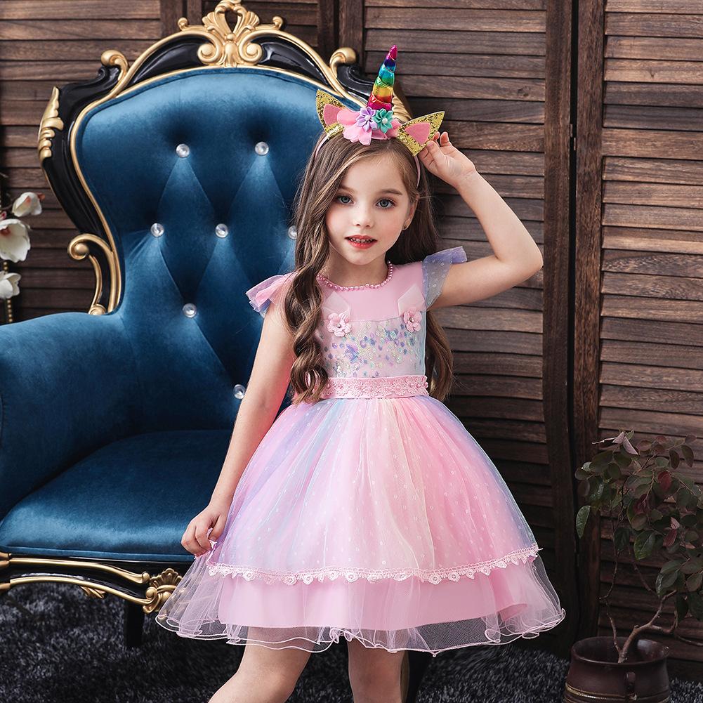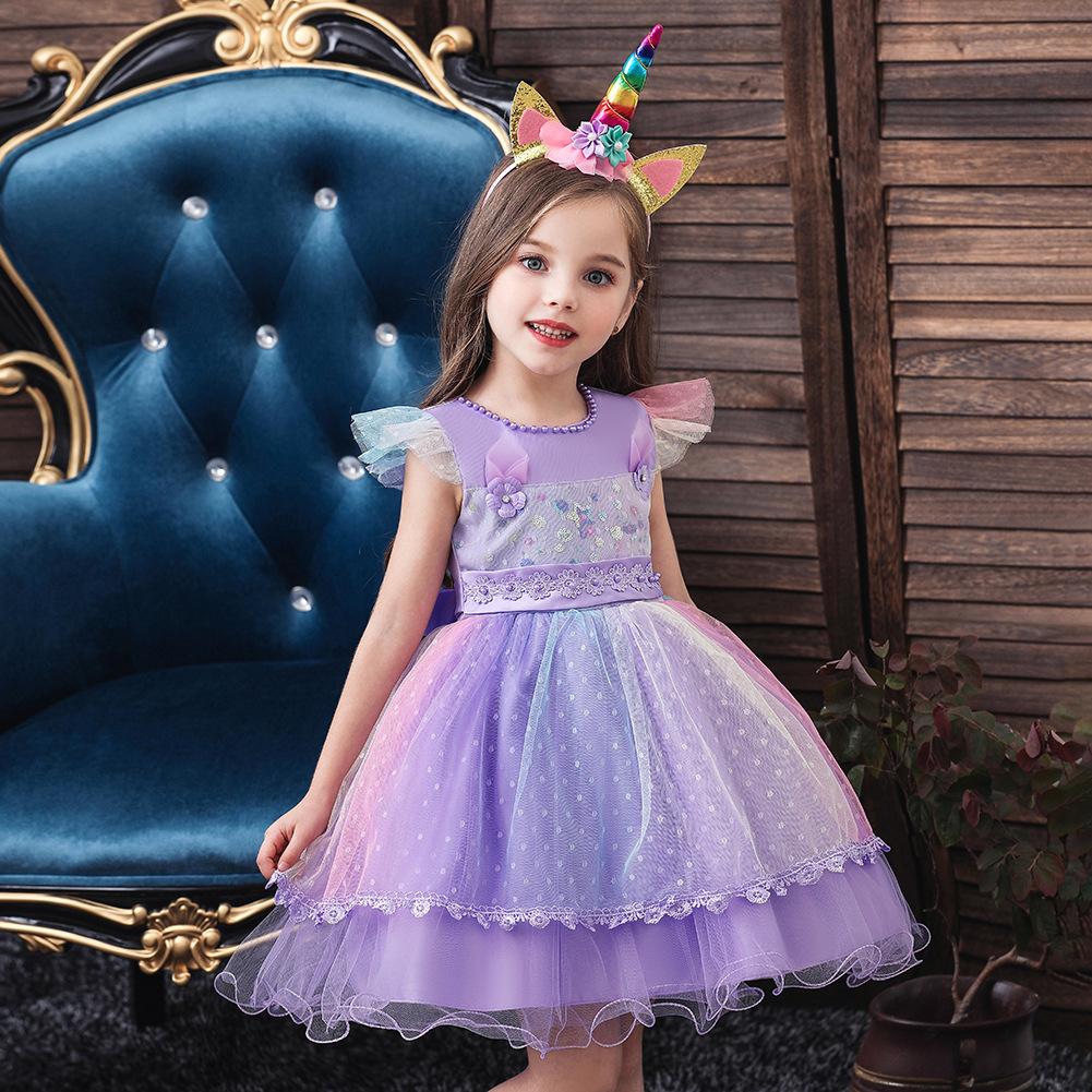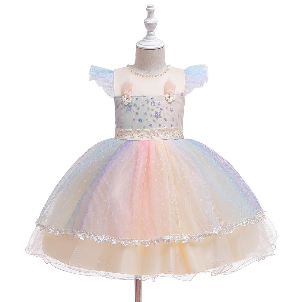 Vestido de princesa para niñas de nuevo estilo, vestido de unicornio con cuentas para niños, disfraz de cosplay de Halloween, vestido para niñosOrdene ahora