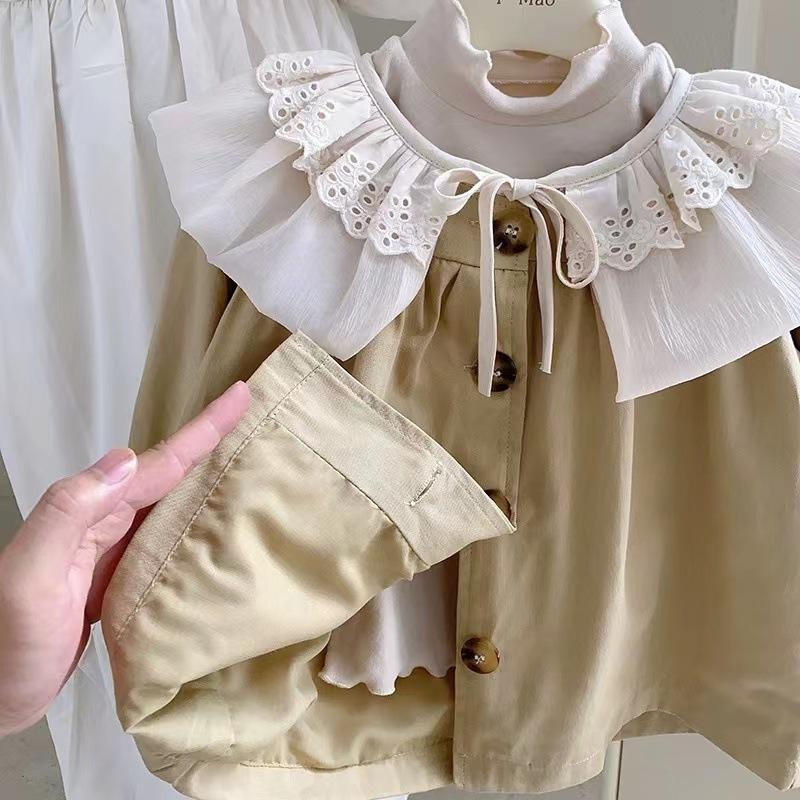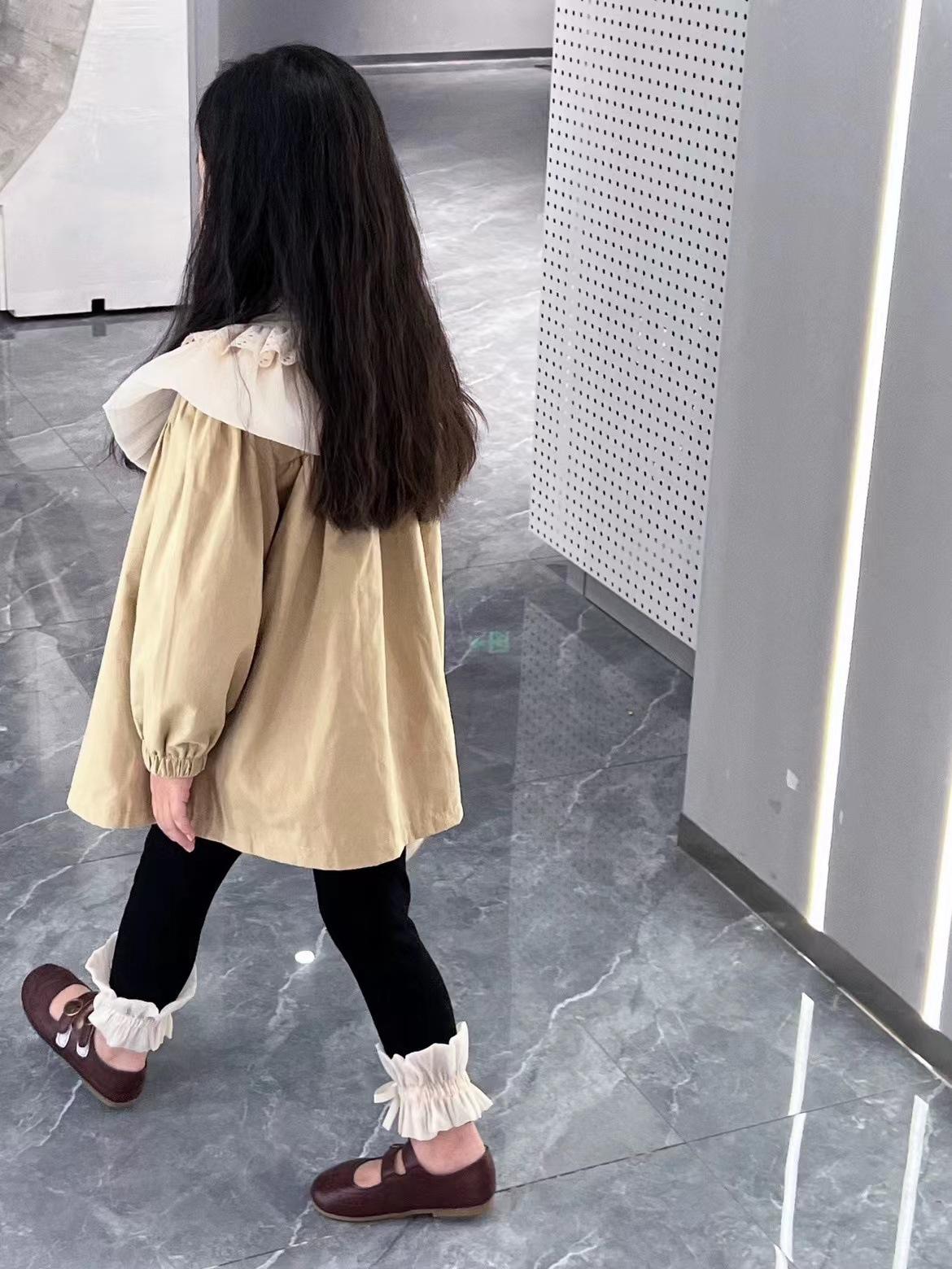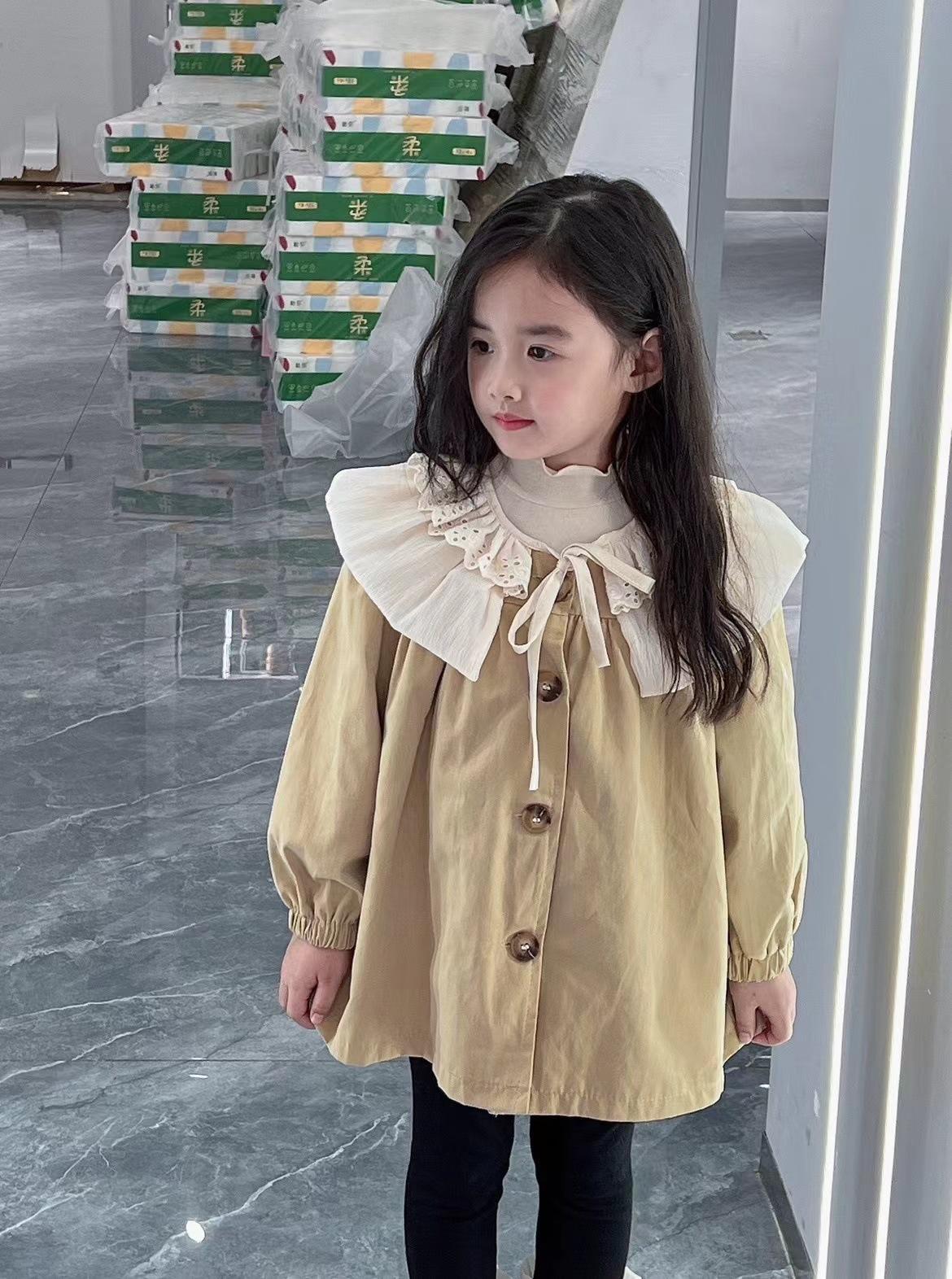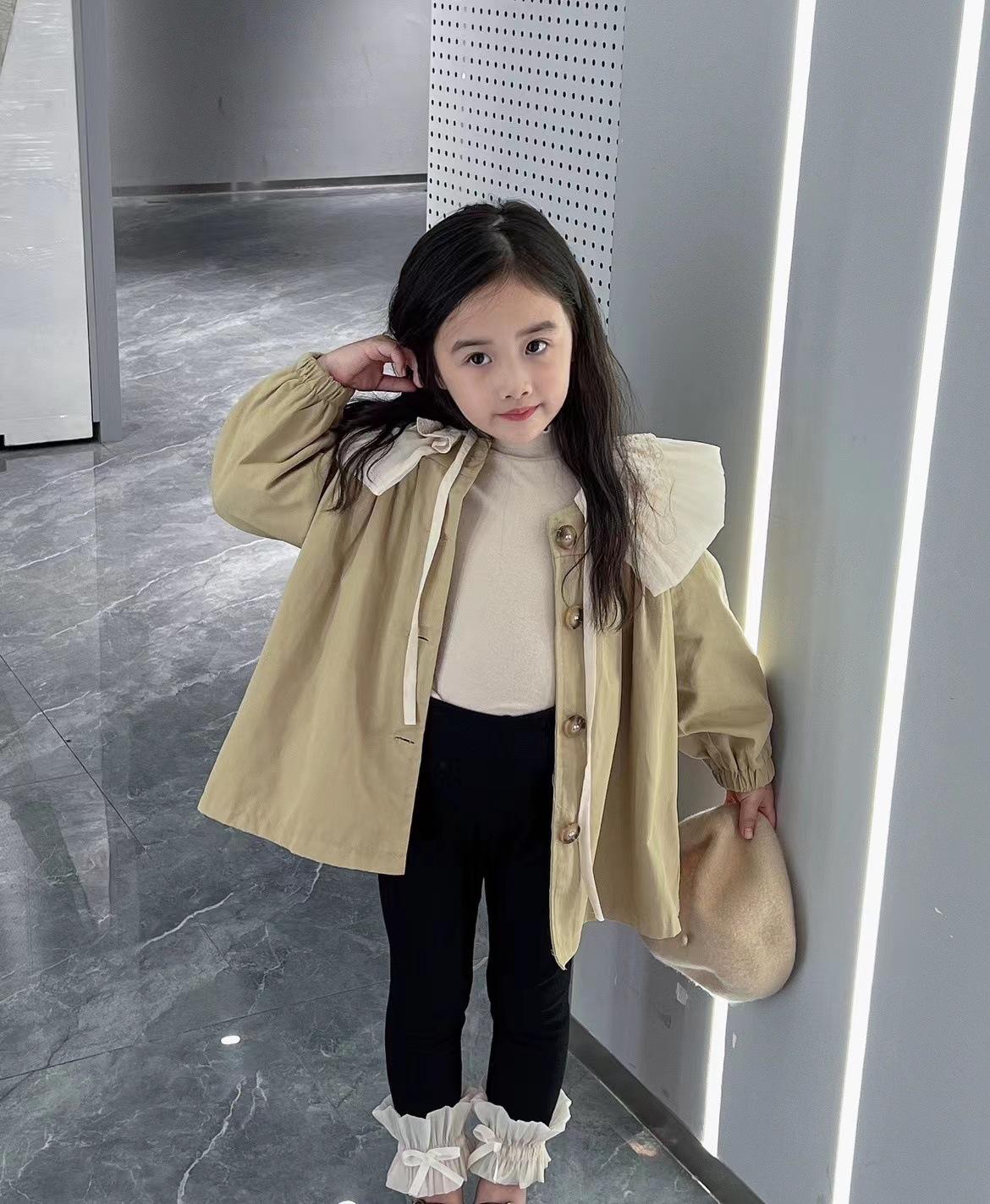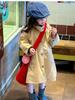 Gabardina para niña de longitud media, primavera y otoño 2023, nuevos estilos para niños pequeños y medianos, elegantes tops retro, ropa de bebé, tendencia