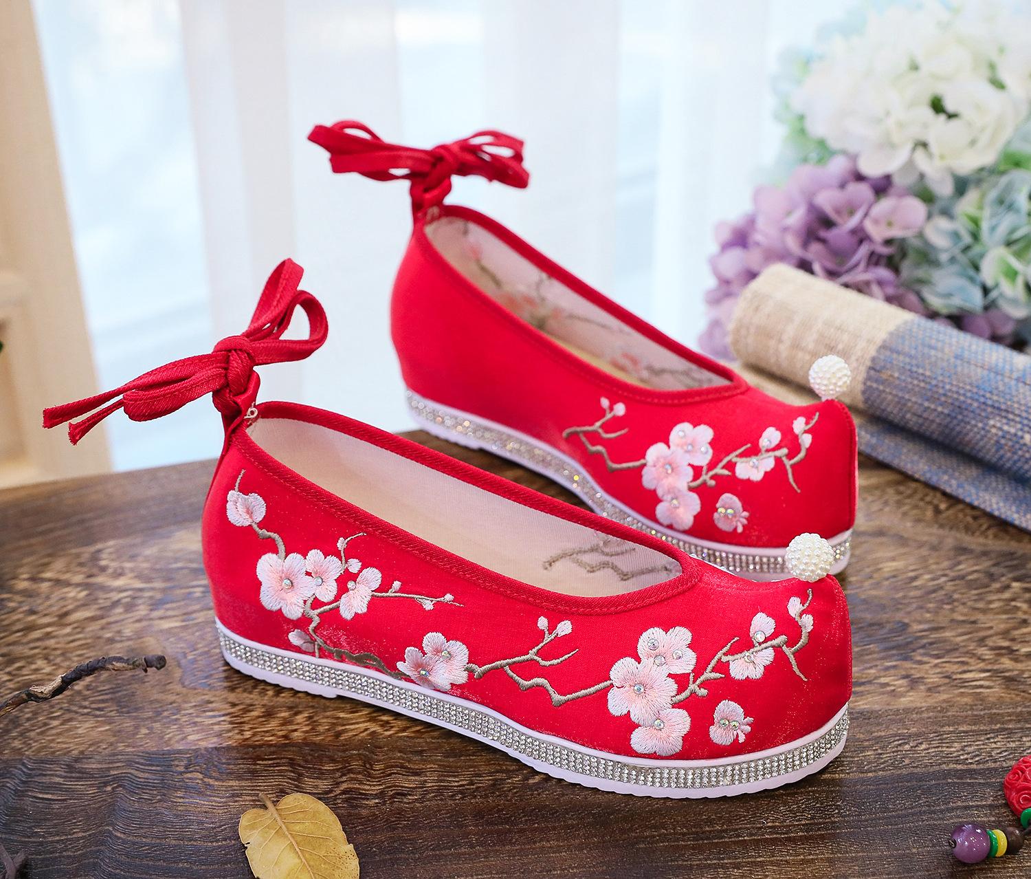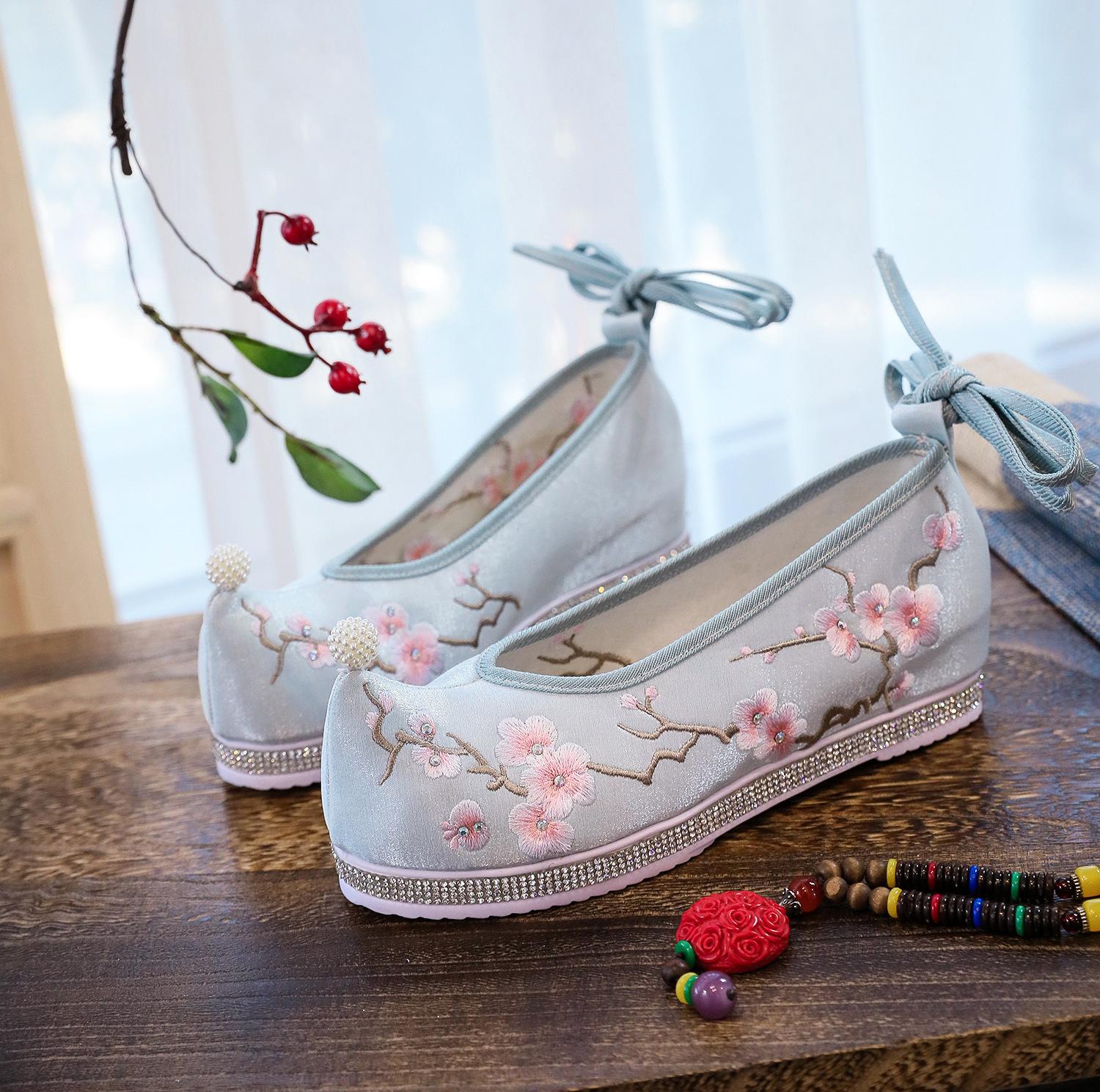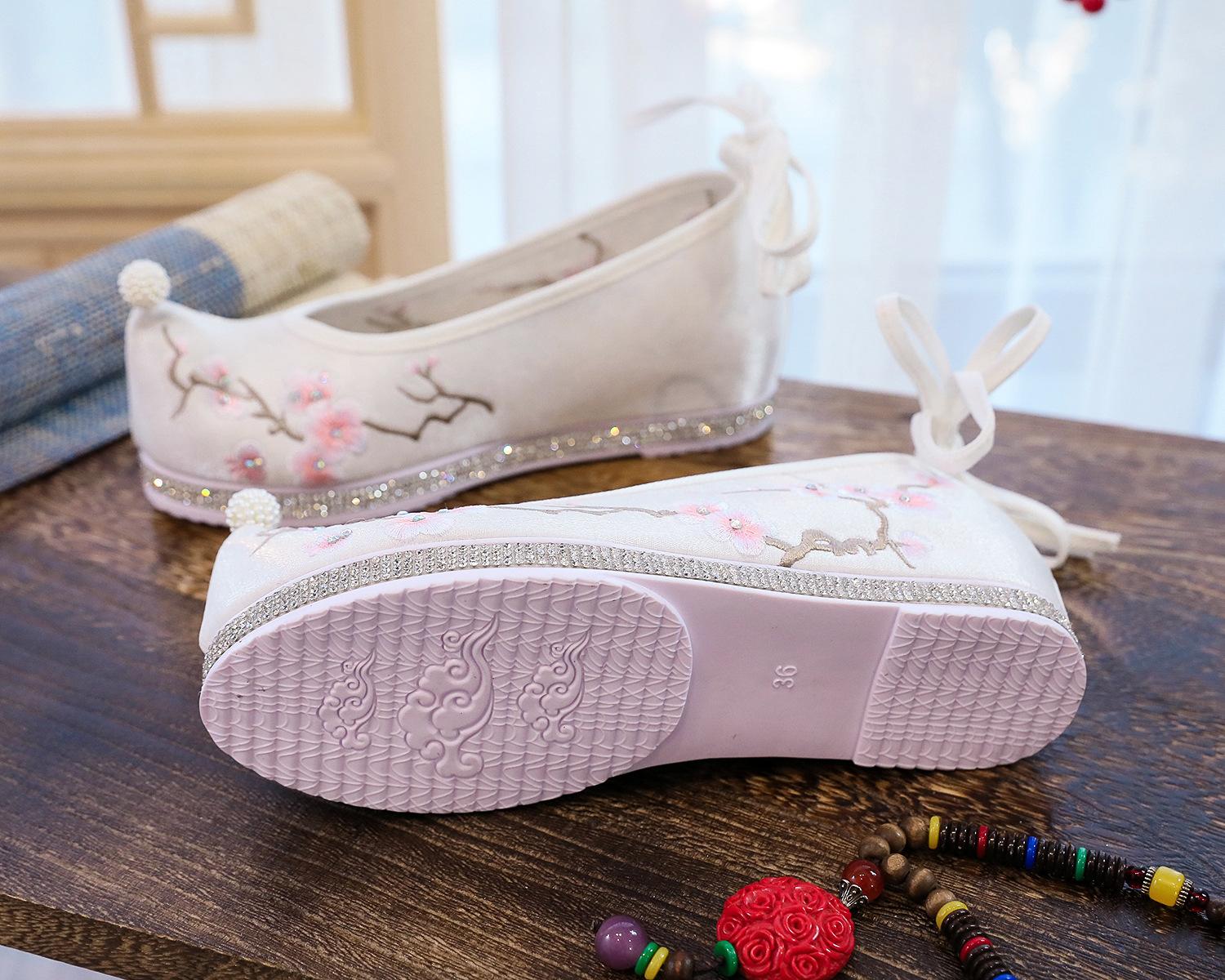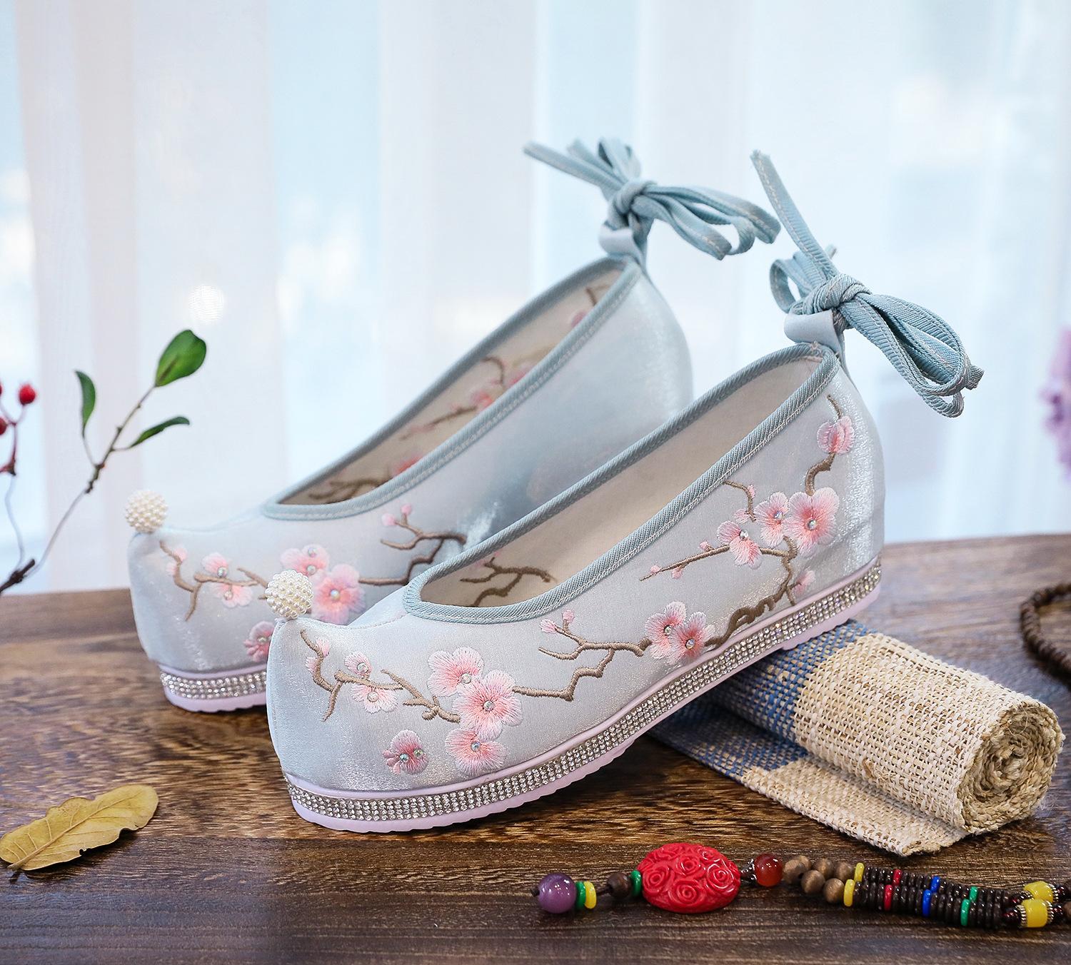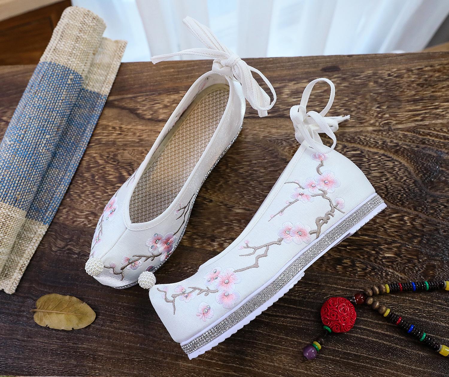 Zapatos de lazo, zapatos Hanfu, zapatos bordados para mujer, zapatos colgantes, elementos chinos que combinan con el traje antiguo, aumento de altura interior