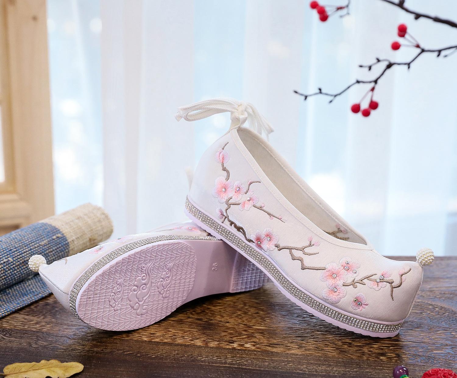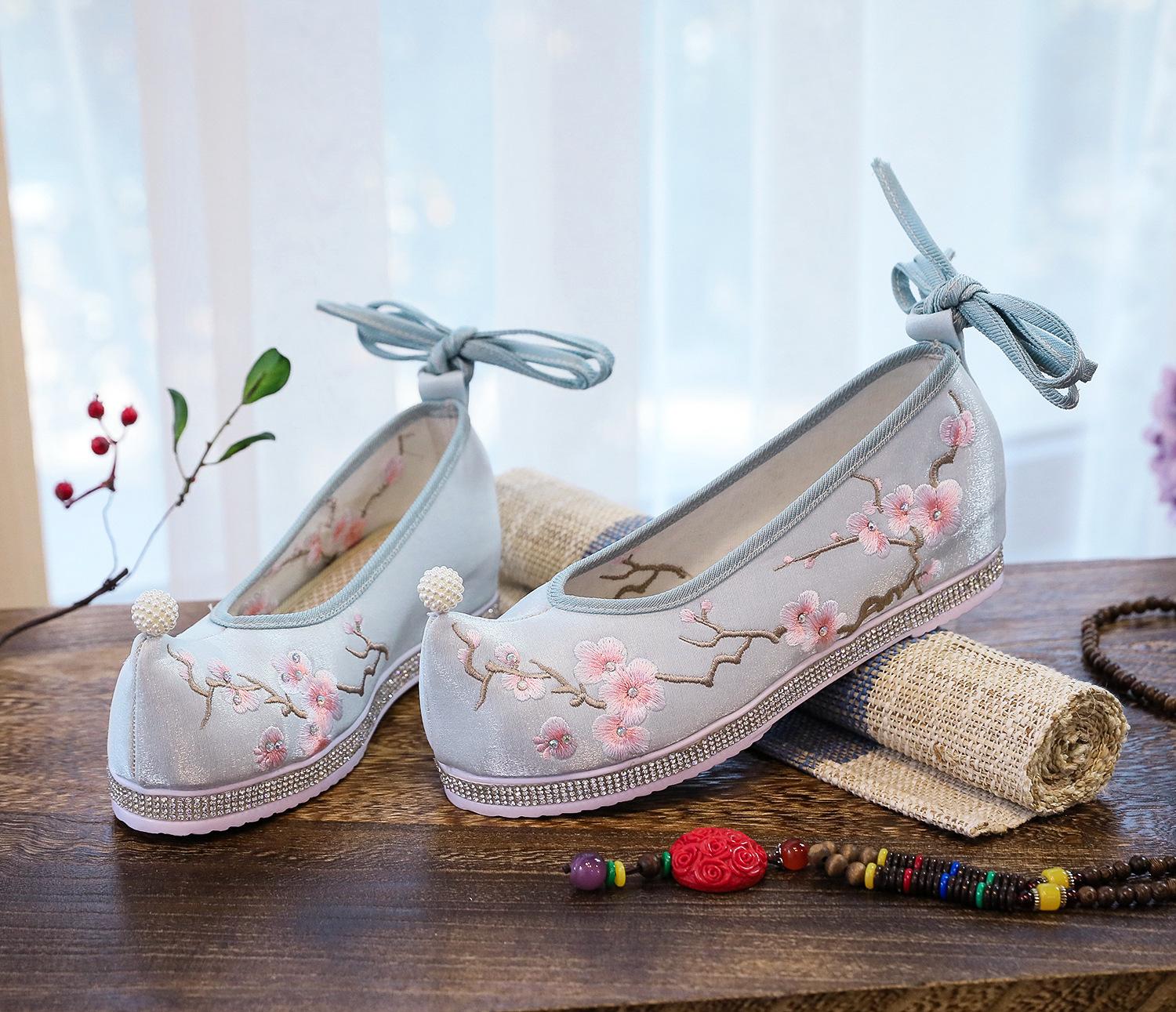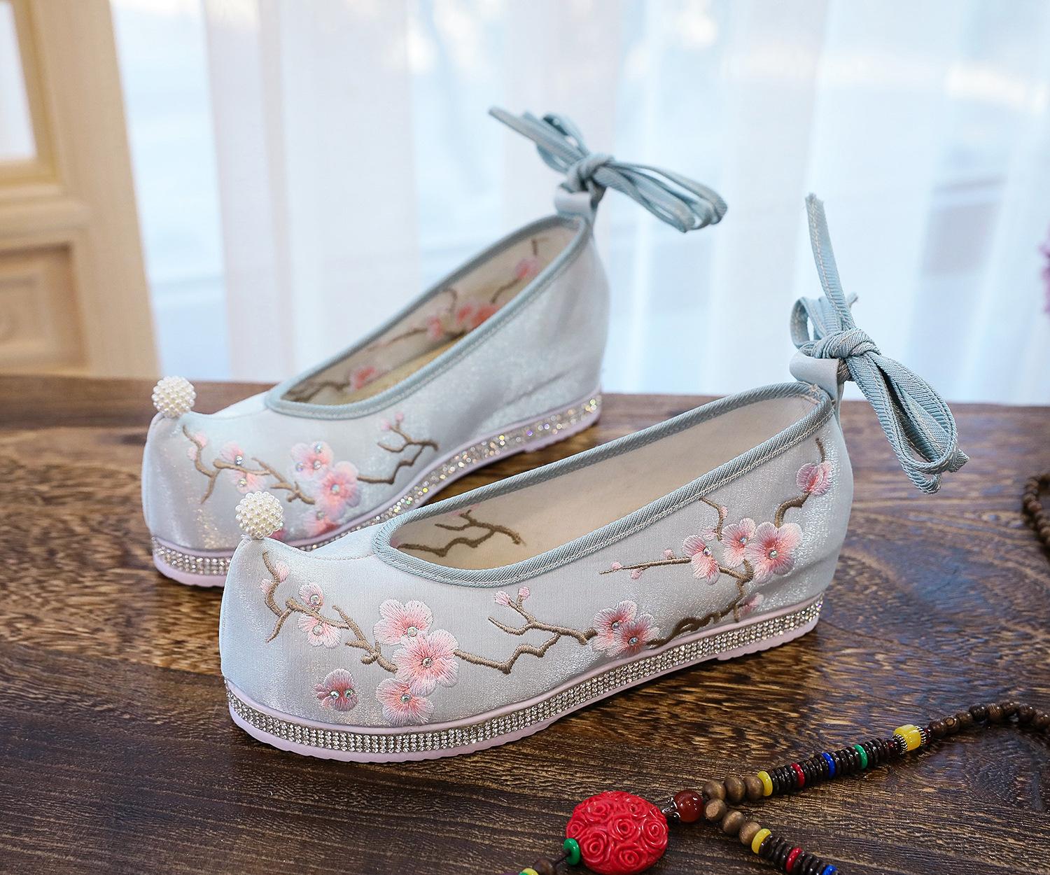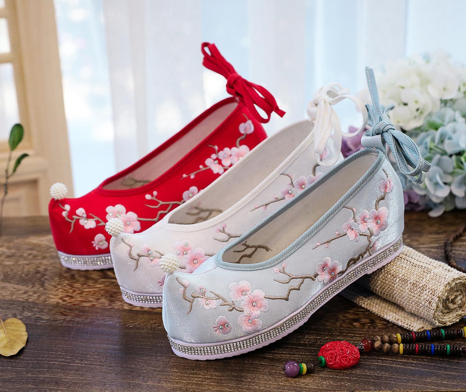 Zapatos de lazo, zapatos Hanfu, zapatos bordados para mujer, zapatos colgantes, elementos chinos que combinan con el traje antiguo, aumento de altura interior