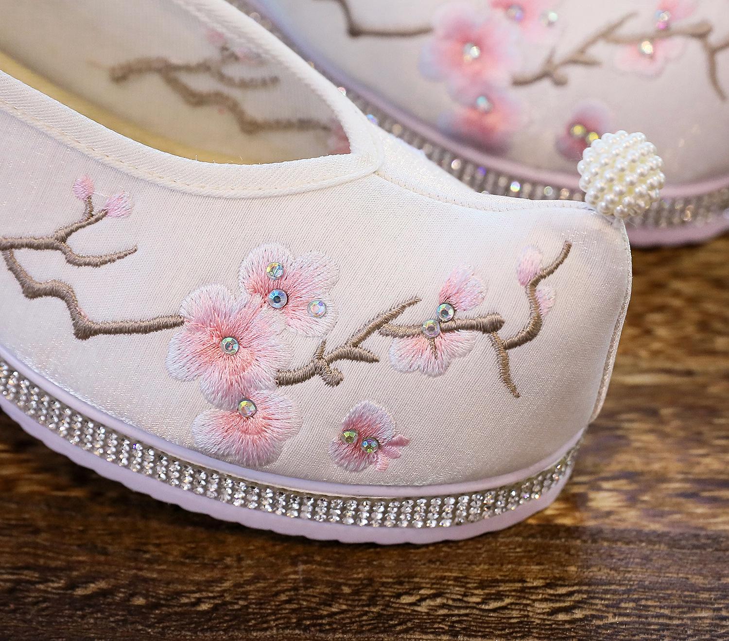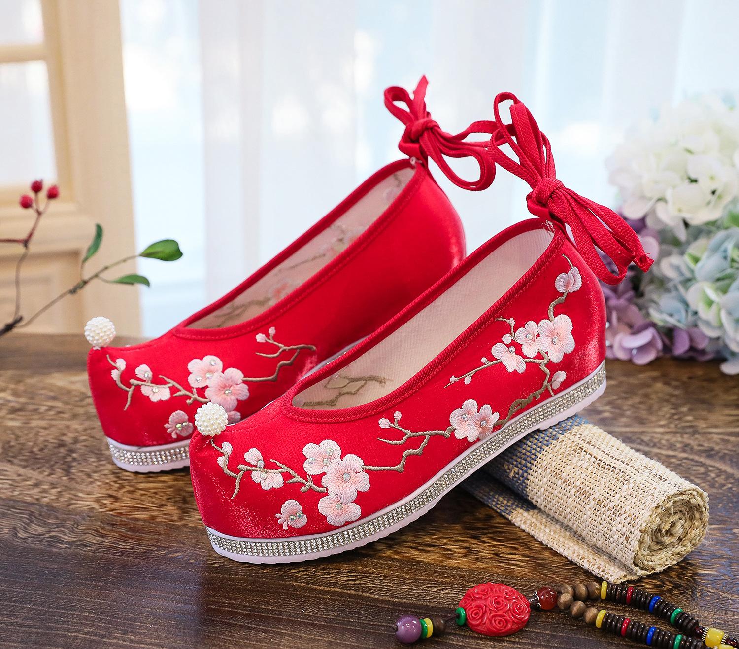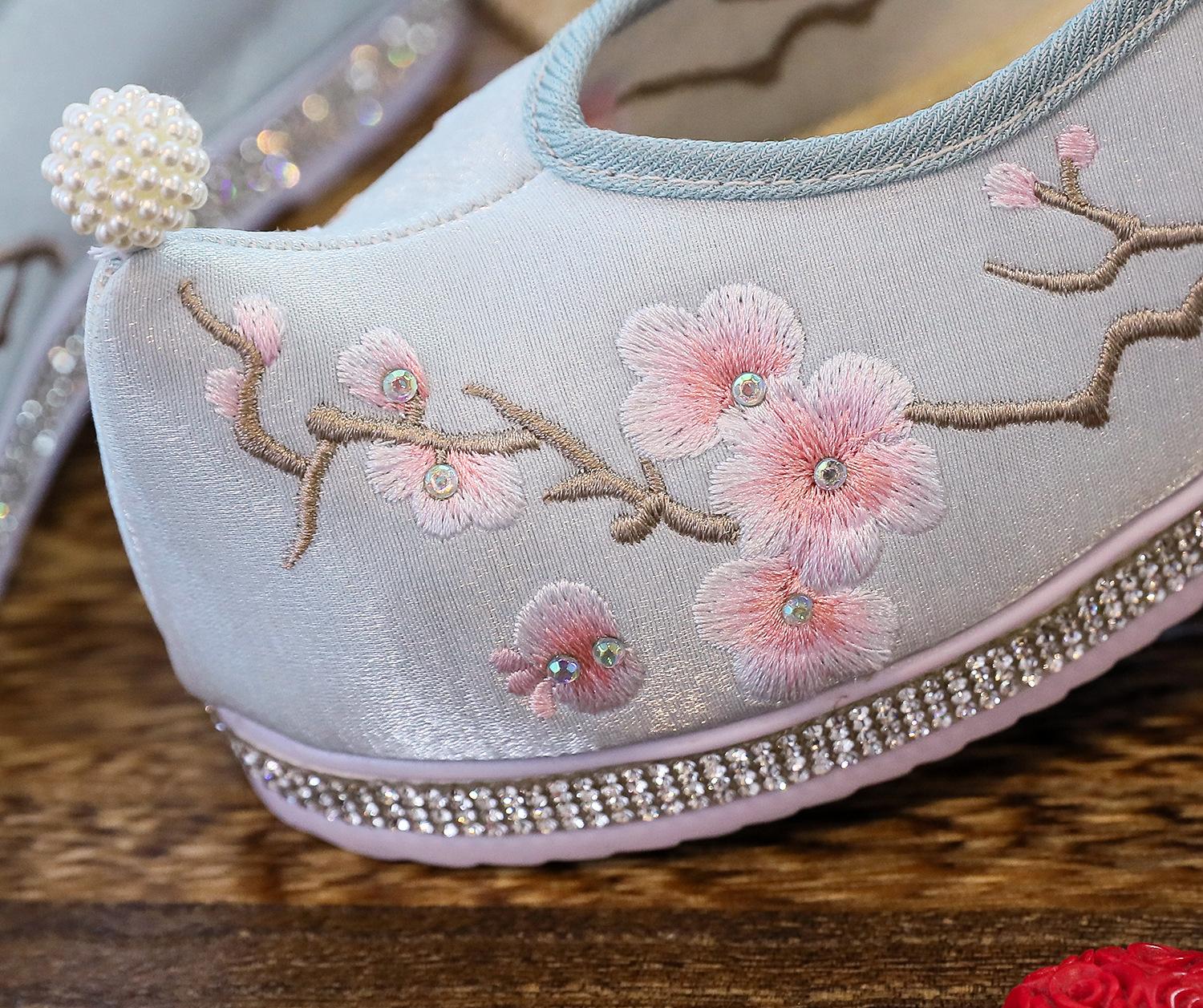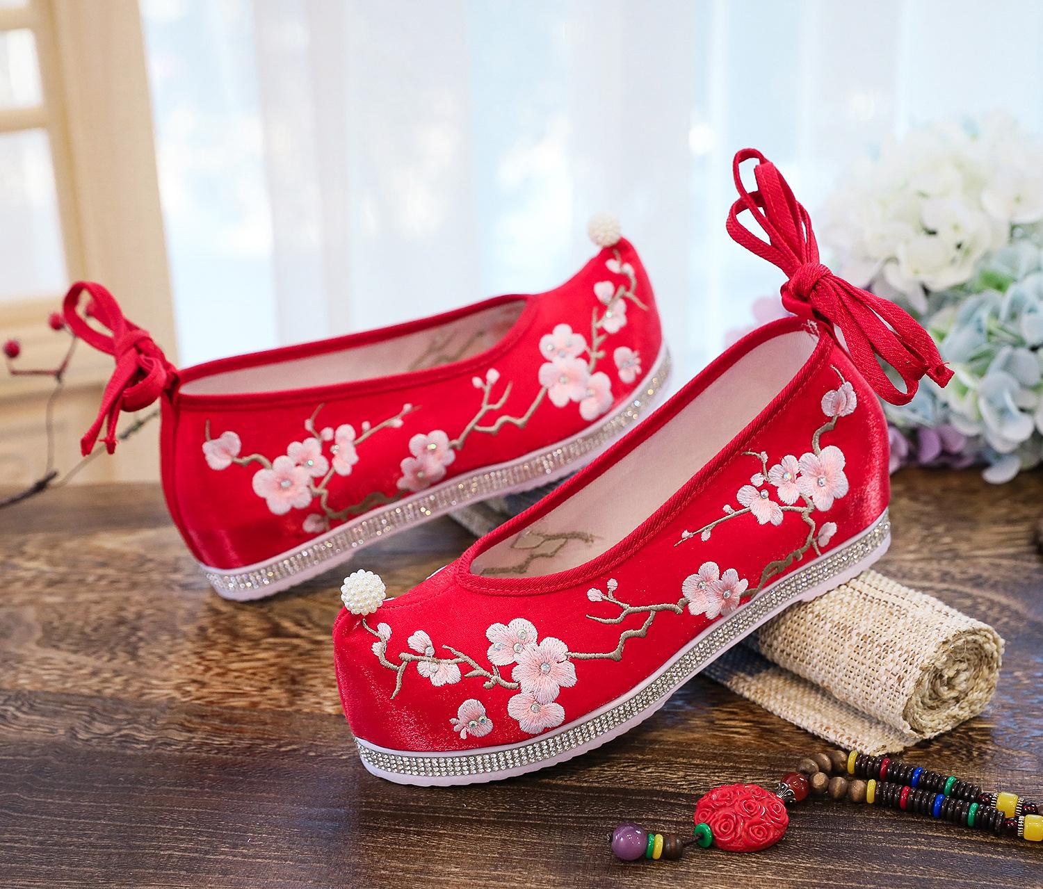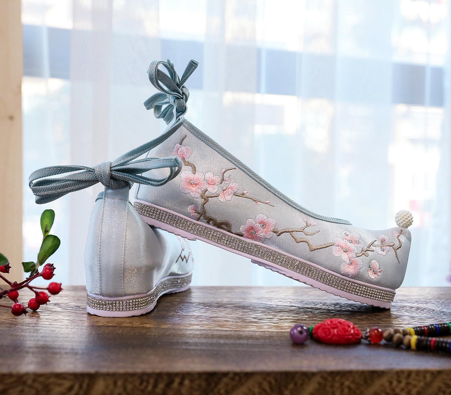 Zapatos de lazo, zapatos Hanfu, zapatos bordados para mujer, zapatos colgantes, elementos chinos que combinan con el traje antiguo, aumento de altura interior