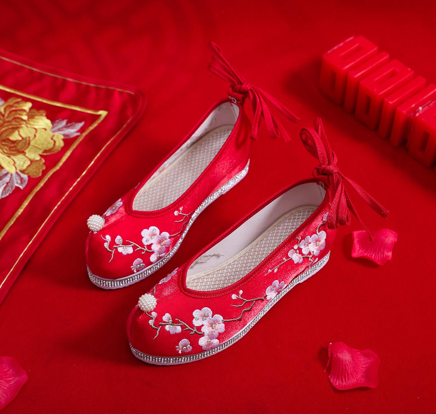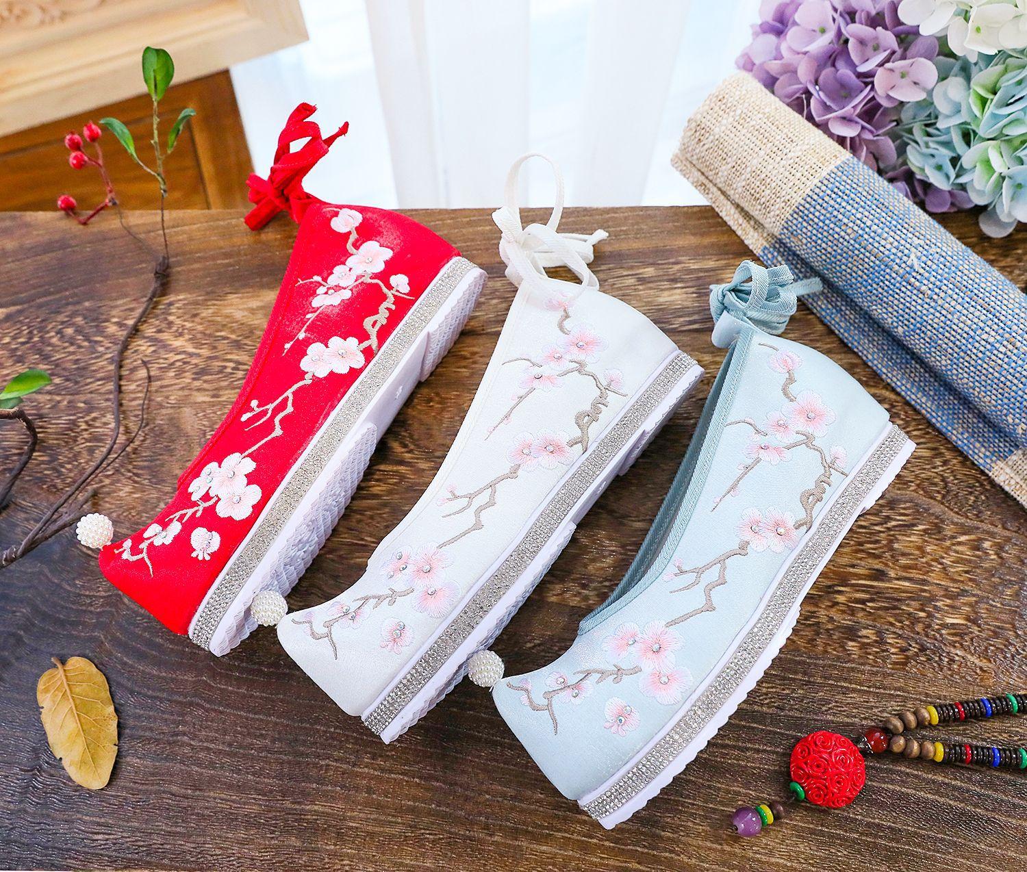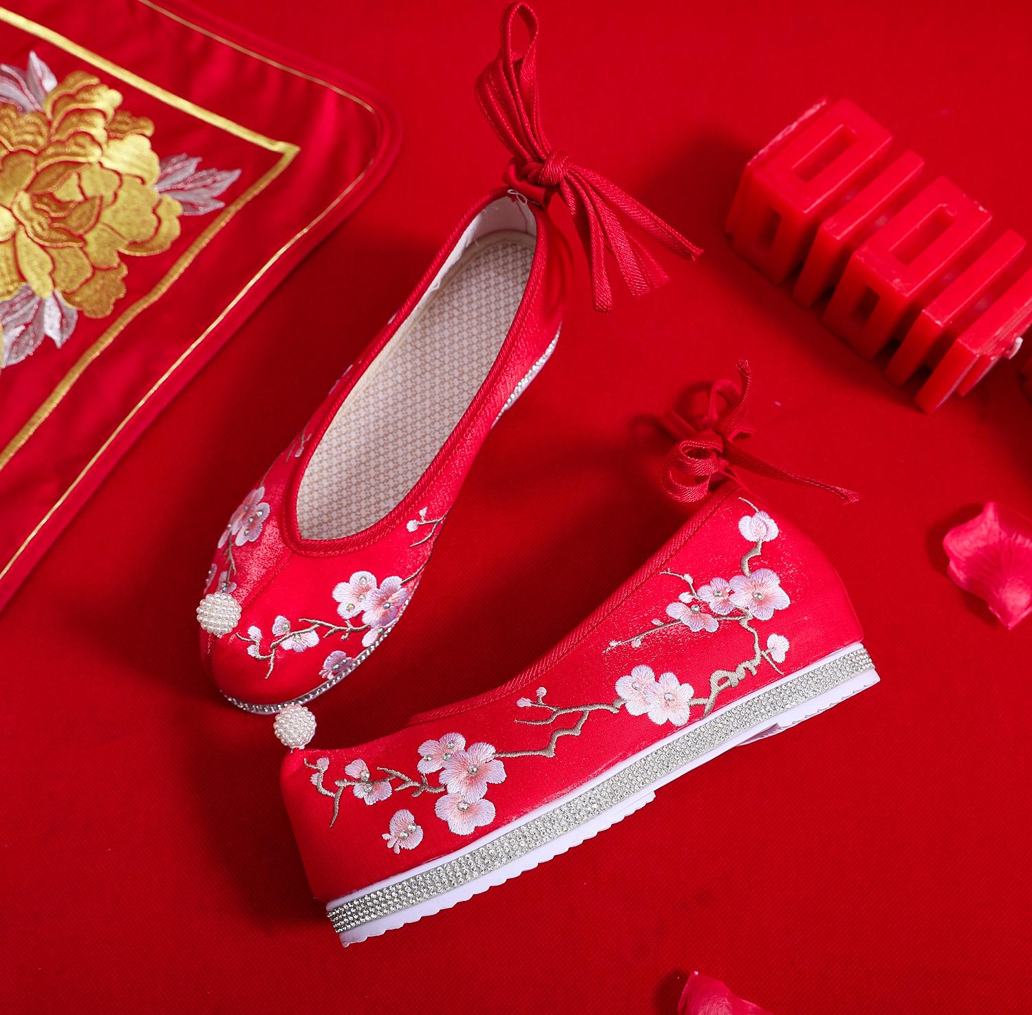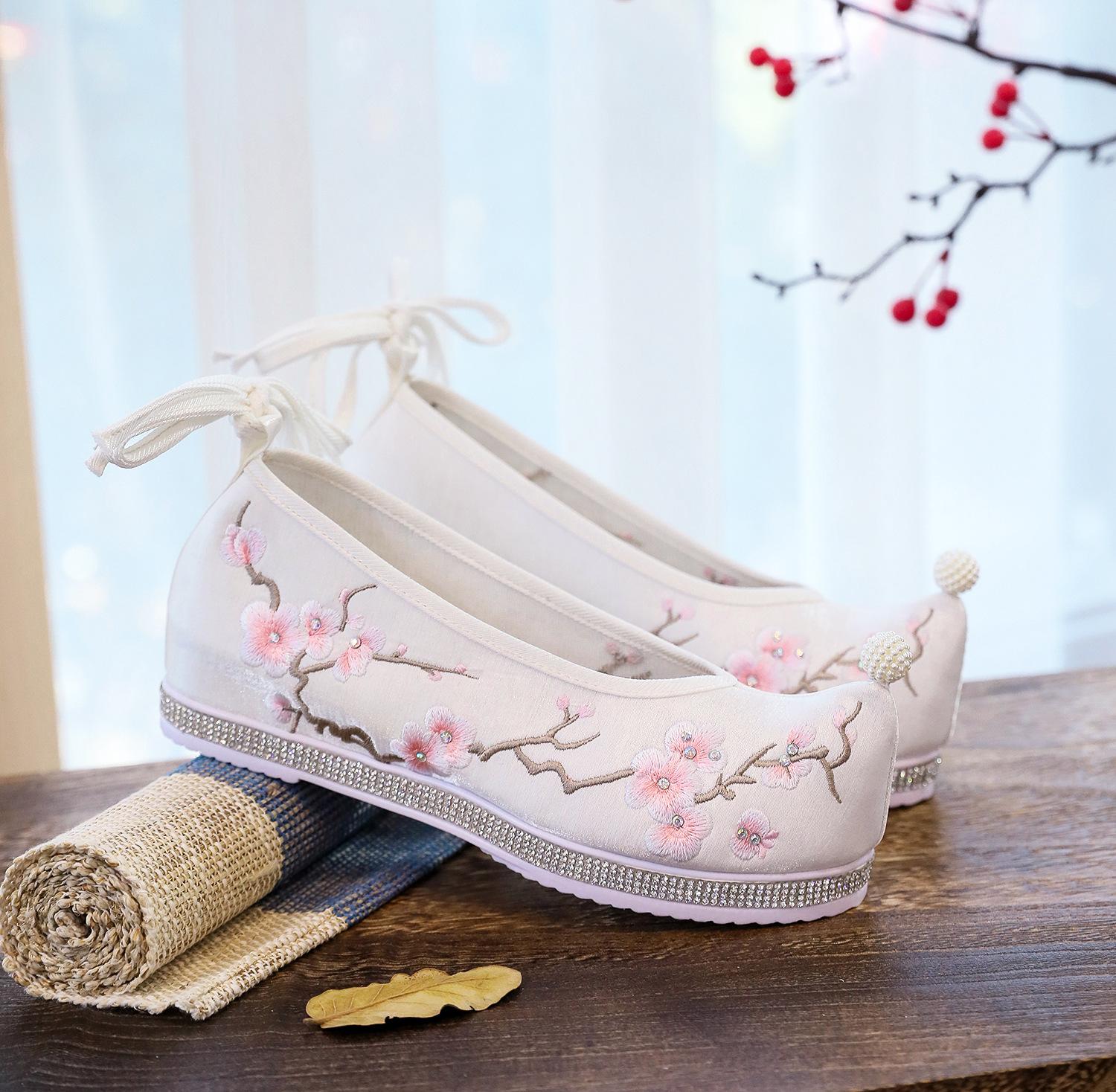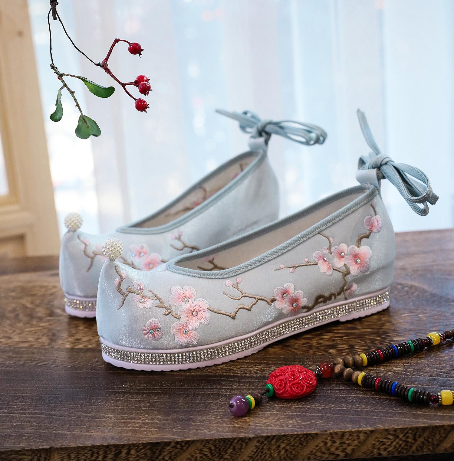 Zapatos de lazo, zapatos Hanfu, zapatos bordados para mujer, zapatos colgantes, elementos chinos que combinan con el traje antiguo, aumento de altura interior