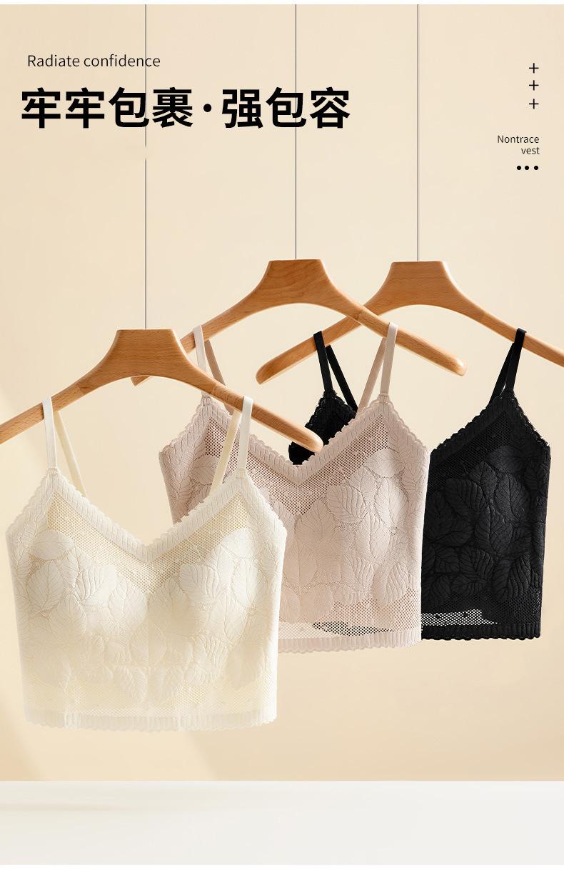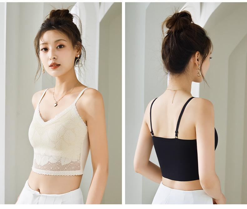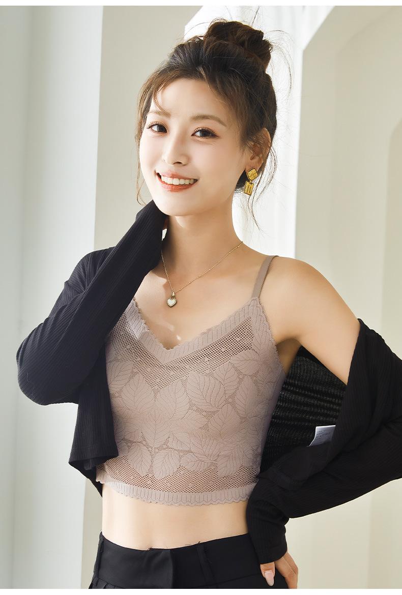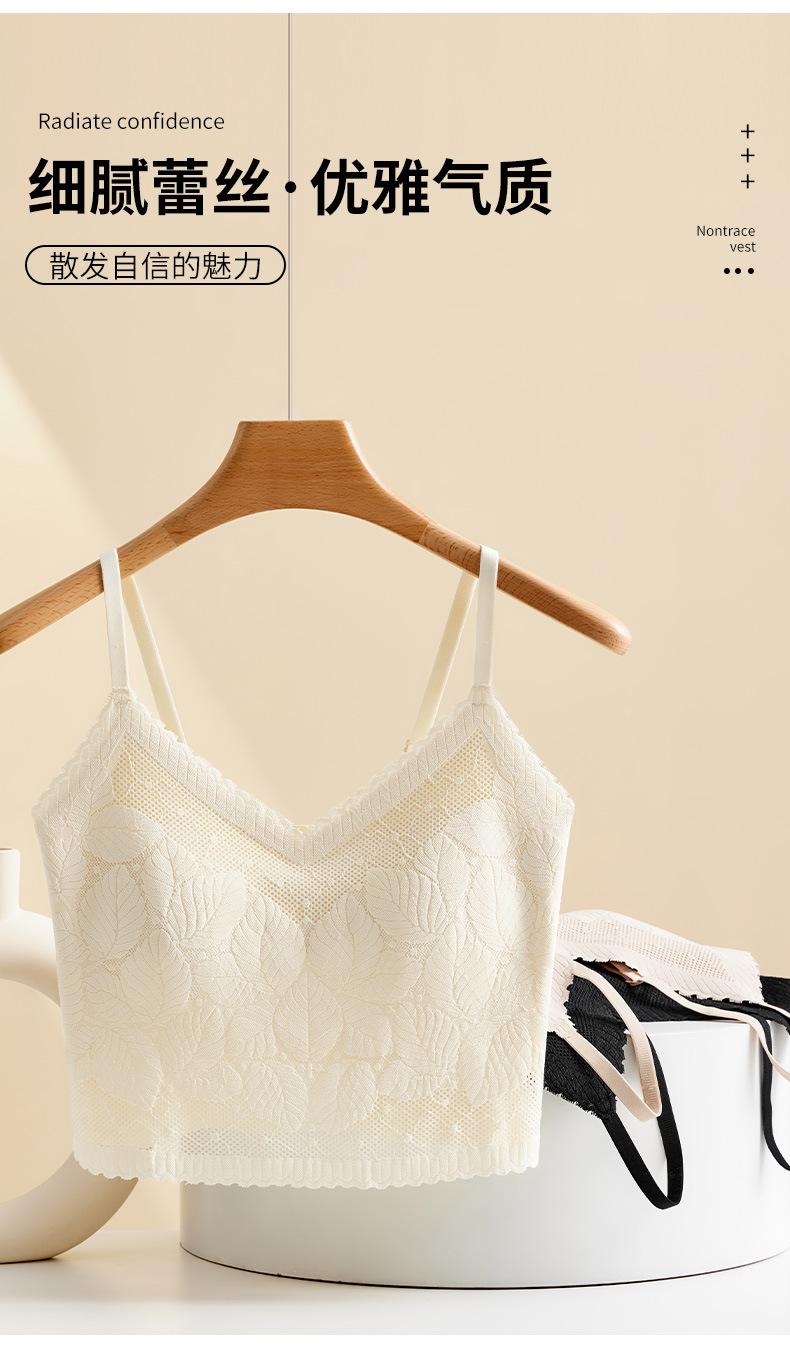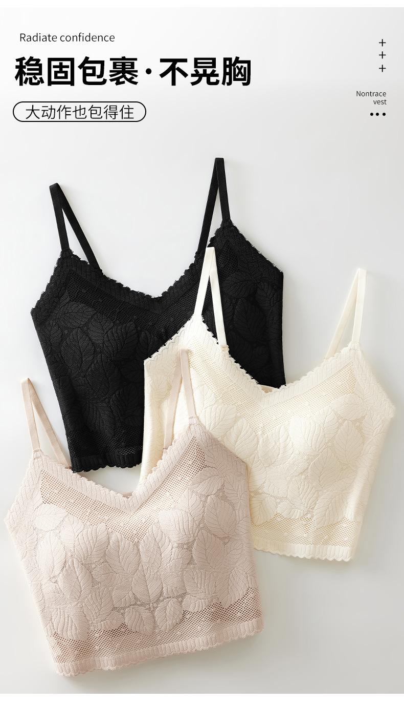 Chaleco de una pieza con tirantes sin costuras y espalda hermosa para mujer, sujetador sin uso de copa fija, ropa interior de encaje sexy con escote en V de longitud media