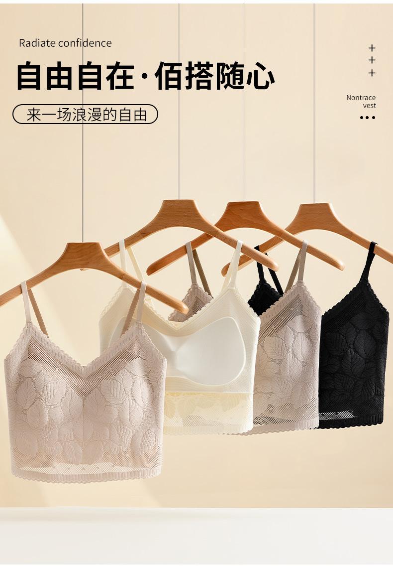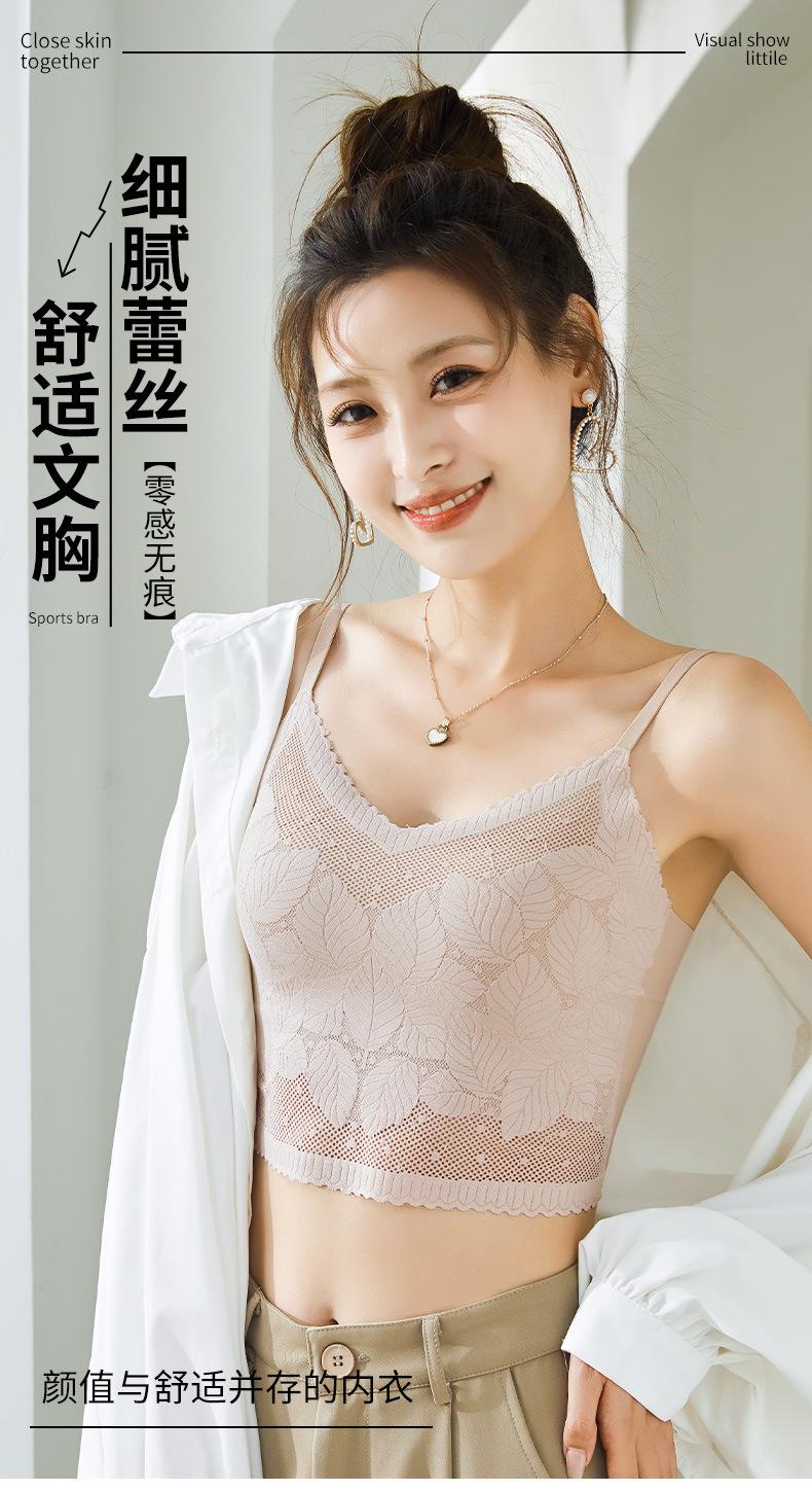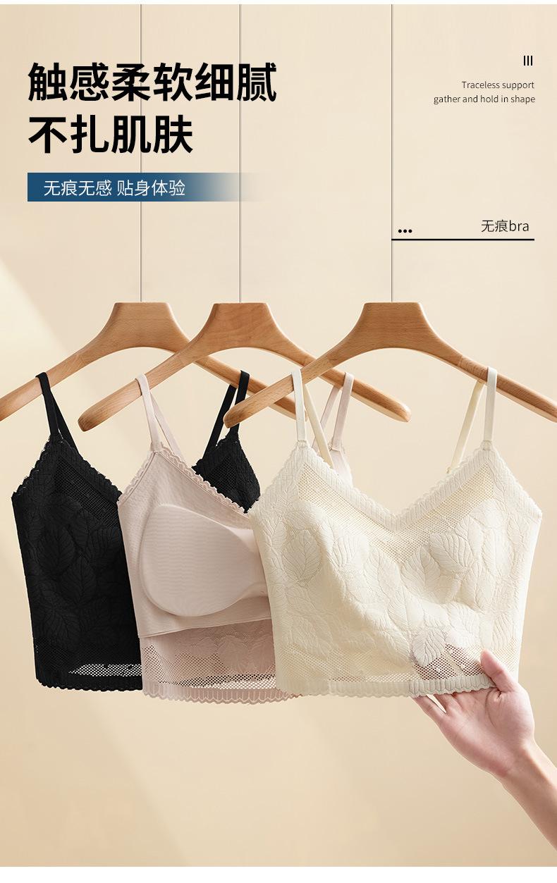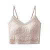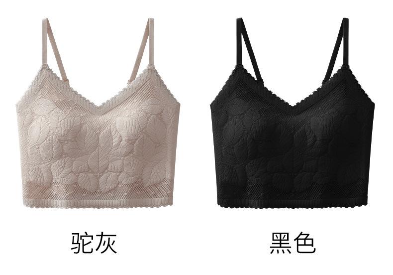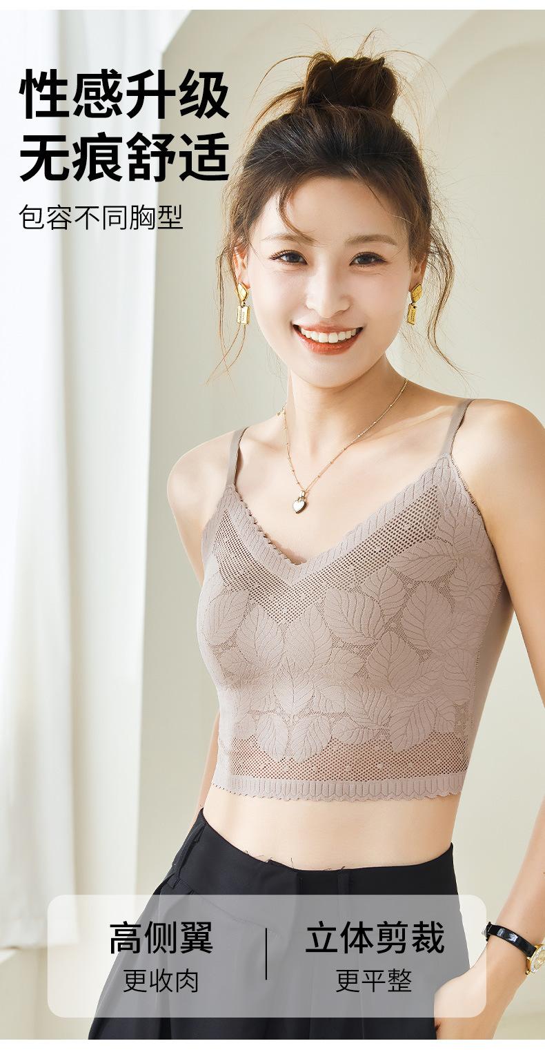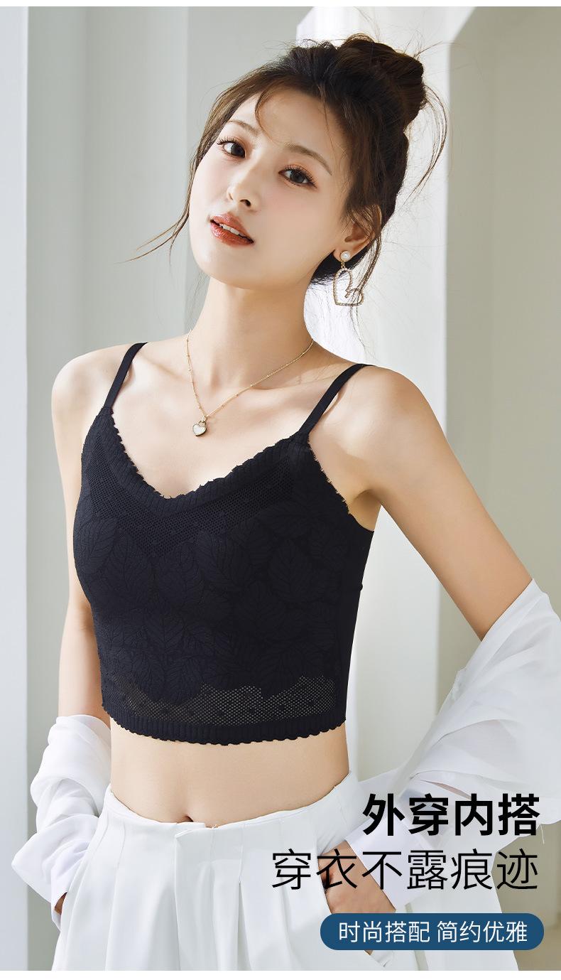 Chaleco de una pieza con tirantes sin costuras y espalda hermosa para mujer, sujetador sin uso de copa fija, ropa interior de encaje sexy con escote en V de longitud media