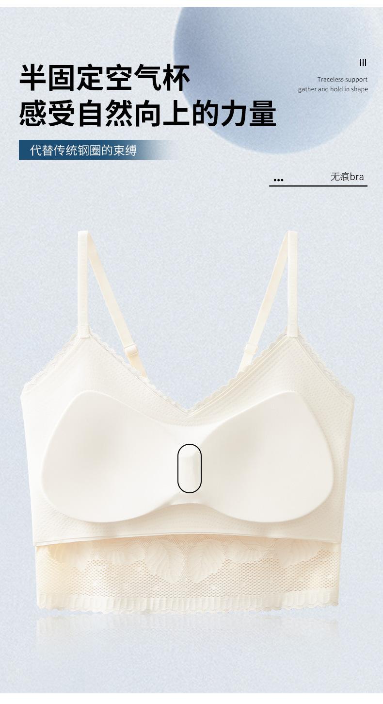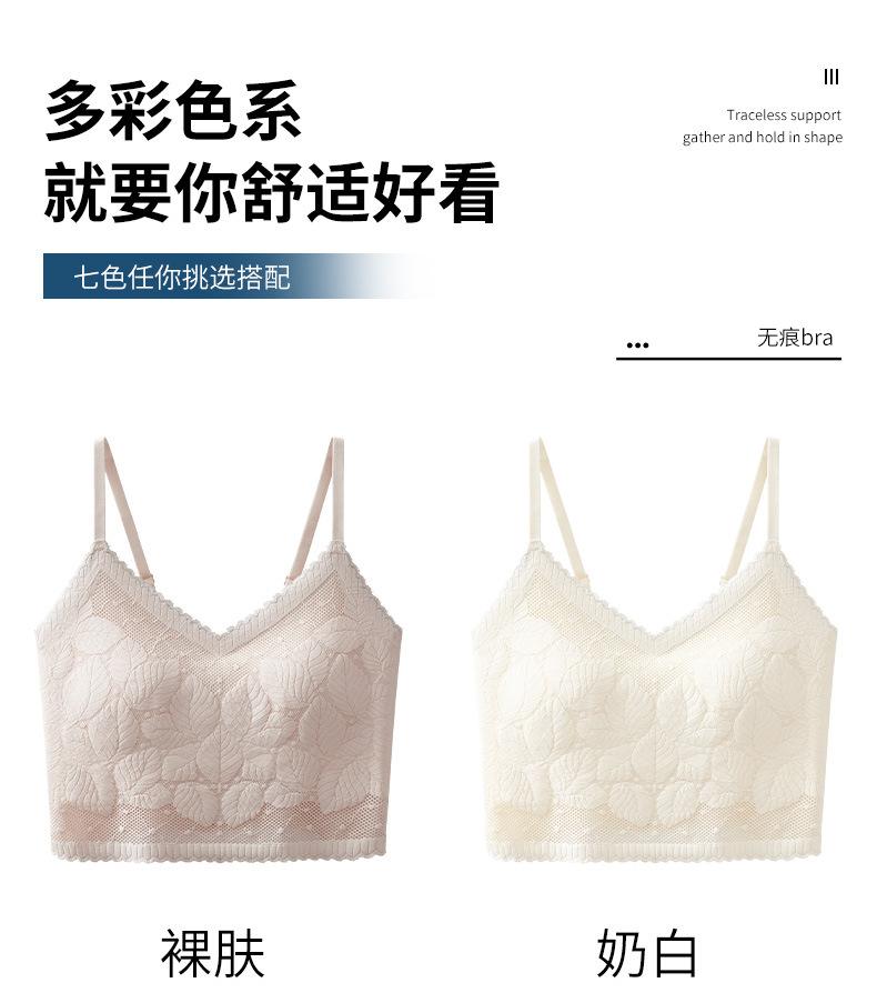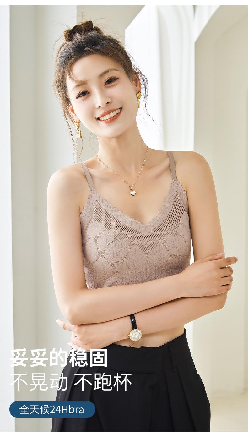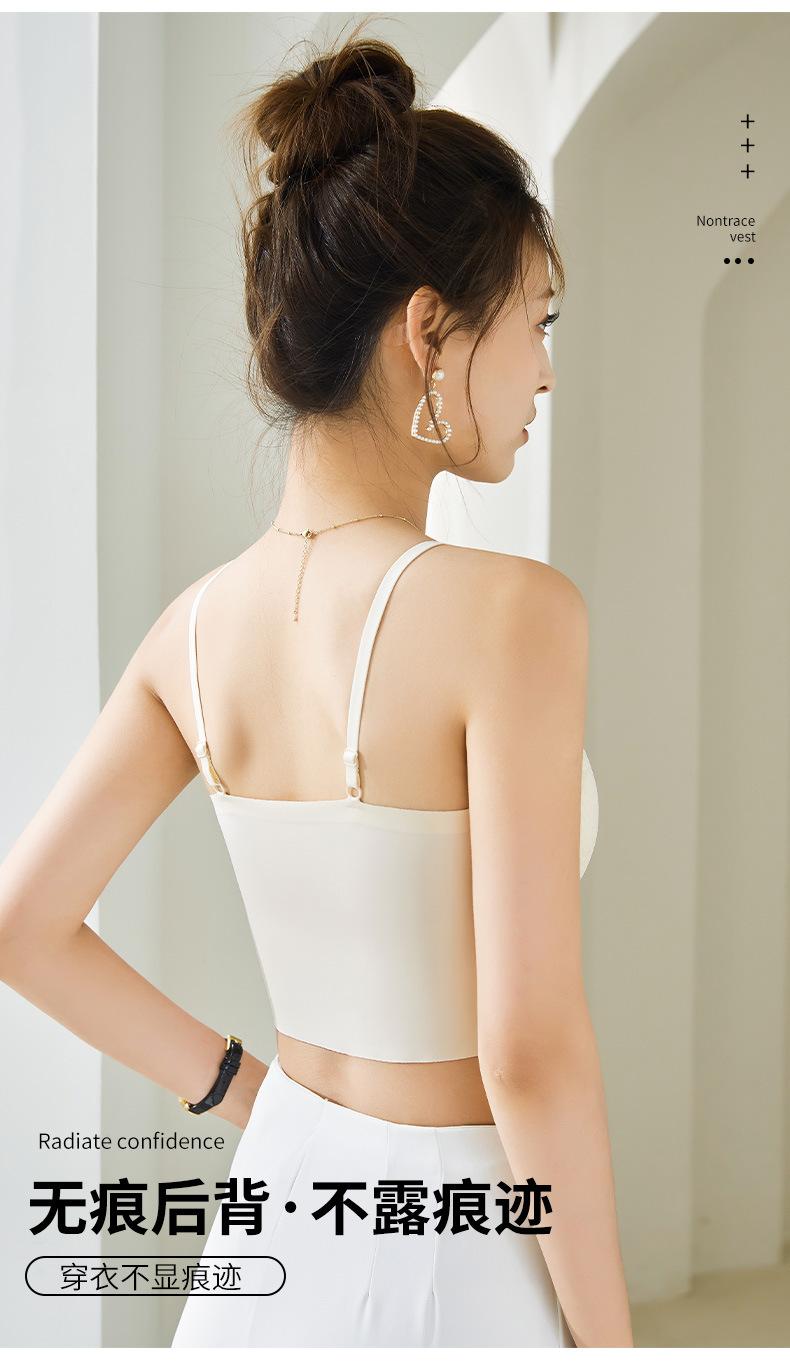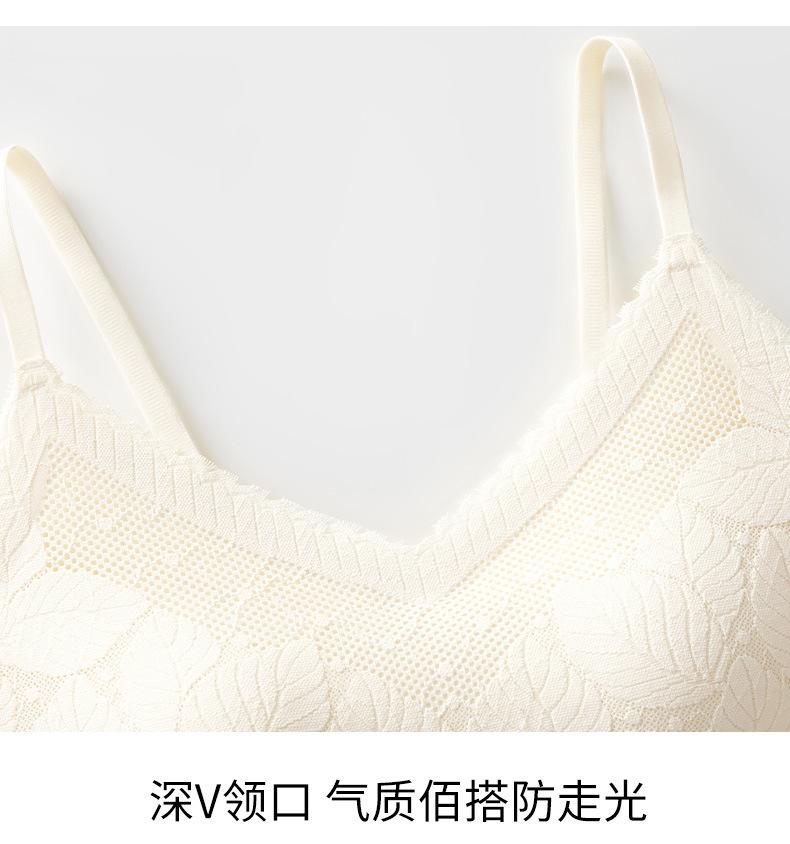 Chaleco de una pieza con tirantes sin costuras y espalda hermosa para mujer, sujetador sin uso de copa fija, ropa interior de encaje sexy con escote en V de longitud media