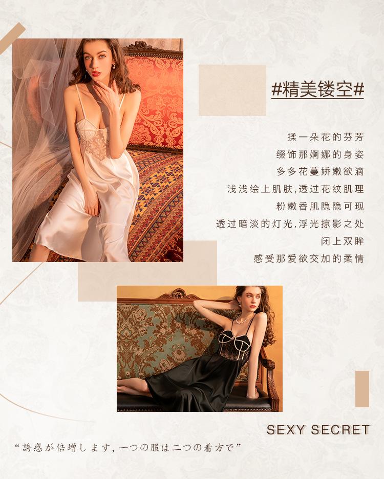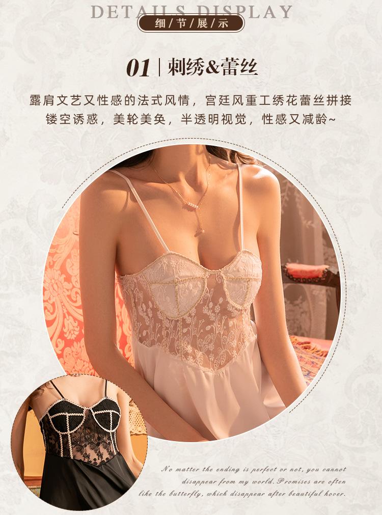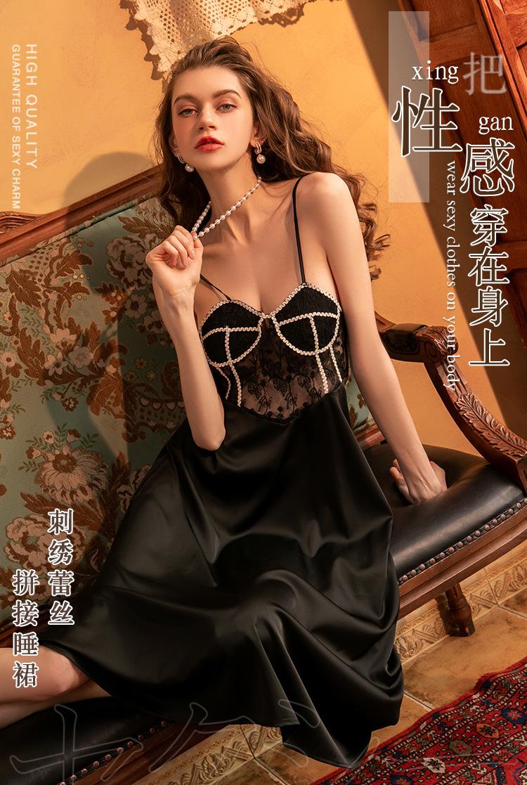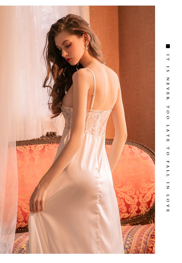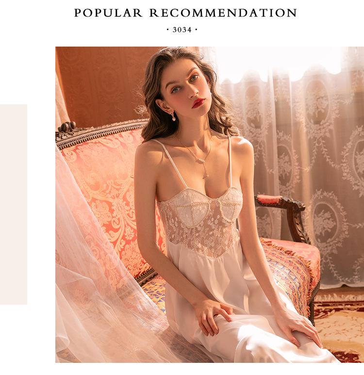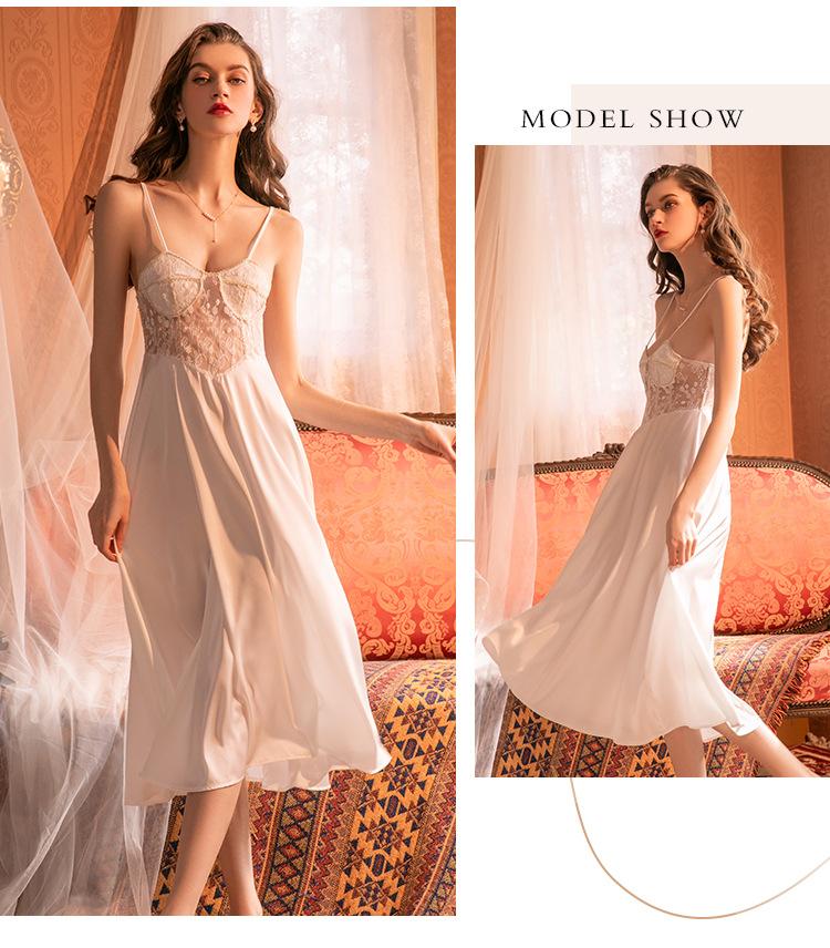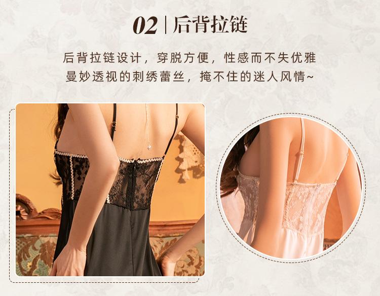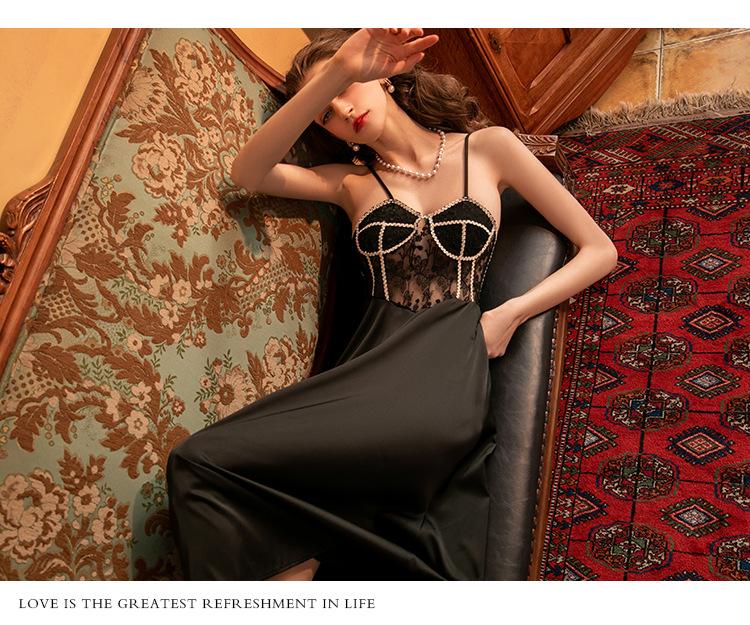 Camisón de tirantes finos de puro deseo, sexy de encaje, pijamas de verano de seda helada, ropa para el hogar, encaje de perspectiva de lujo ligero, vestido de tirantes