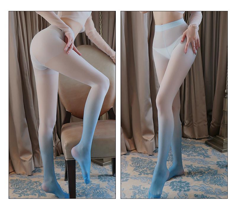 Medias de seda negra sexy de verano para mujer, con corte arbitrario y degradado, ultrafinas y antienganches, 3096