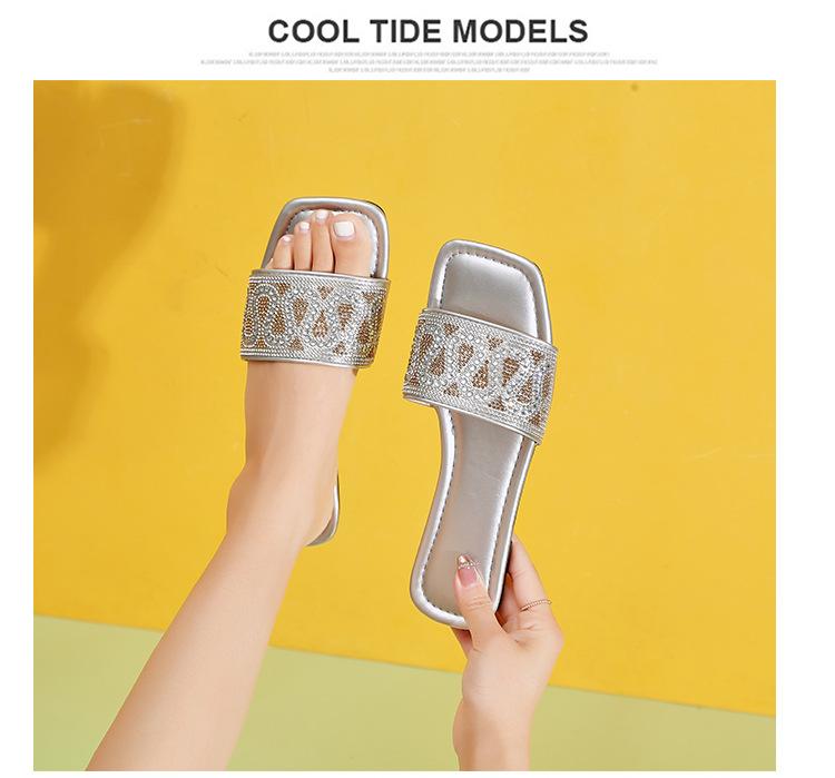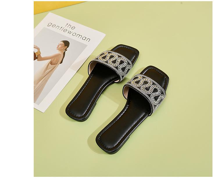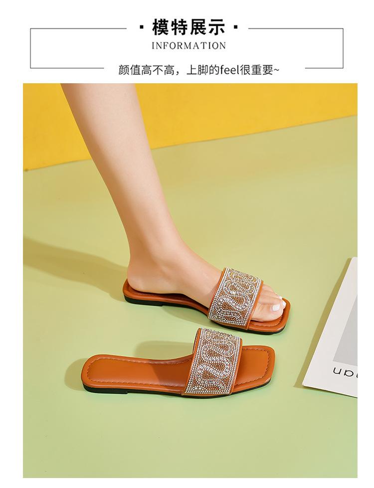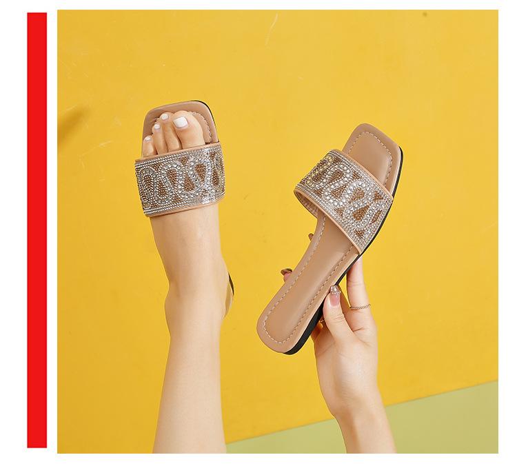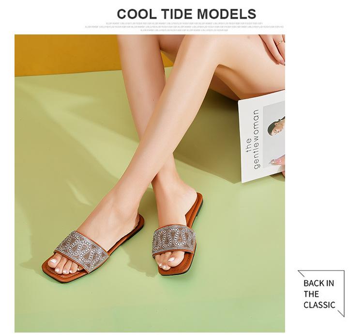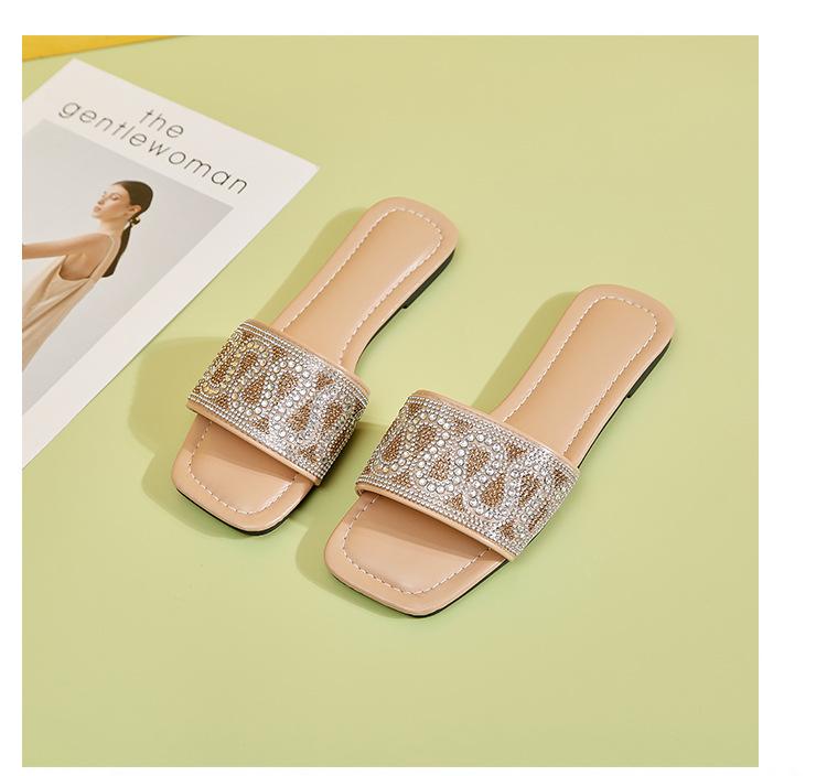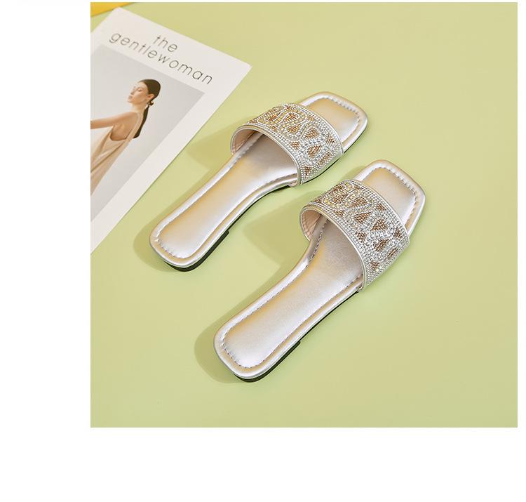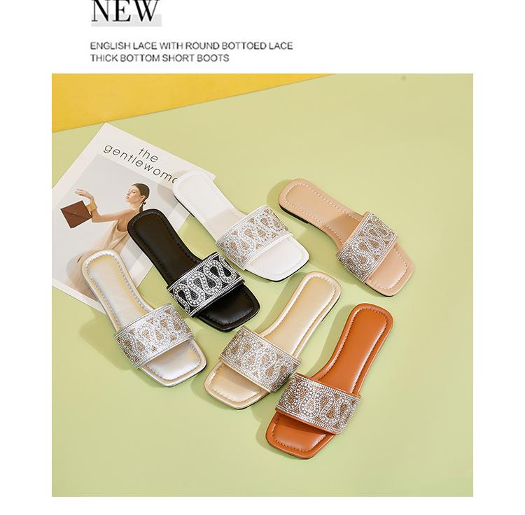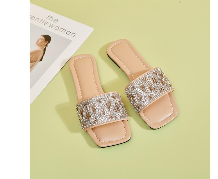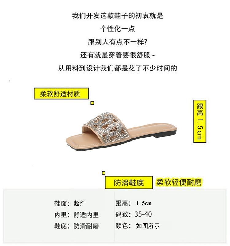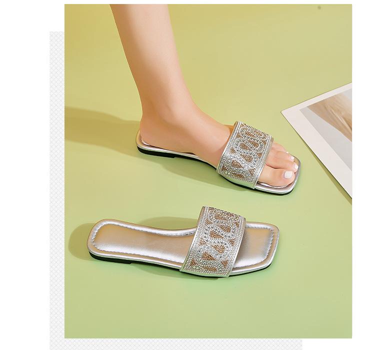 Zapatillas planas de punta cuadrada con pedrería estilo coreano para comercio exterior, para mujer, para uso transfronterizo, talla grande, ligeras, sandalias de playa wish