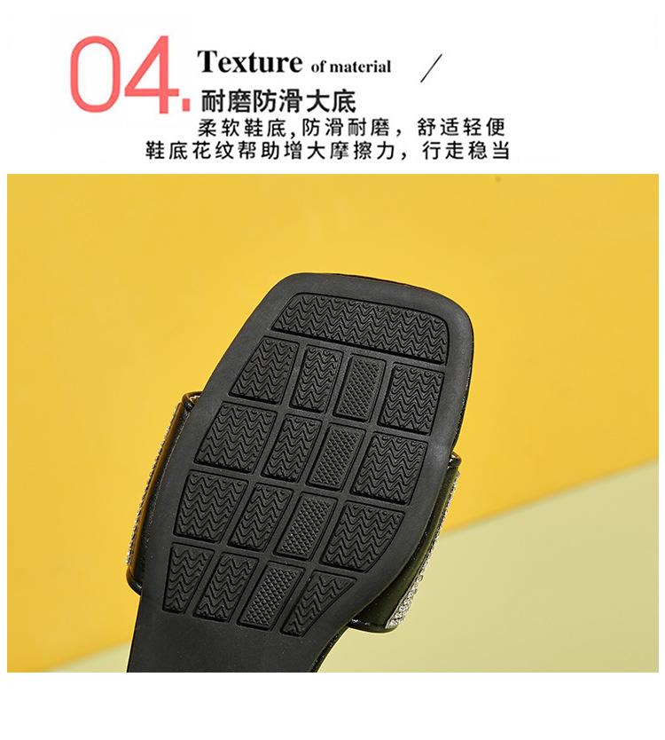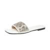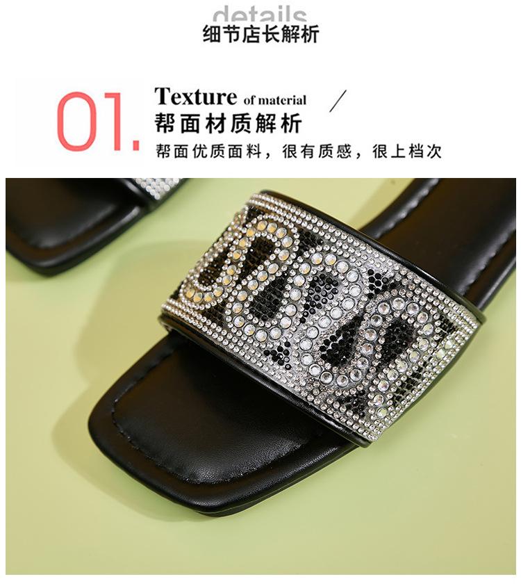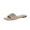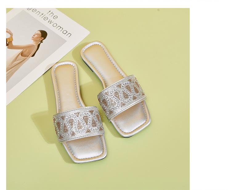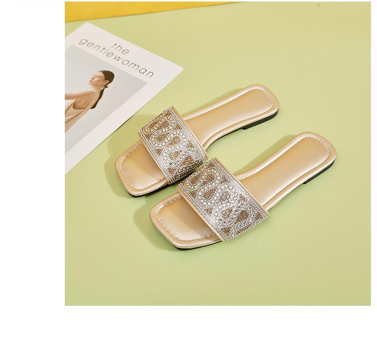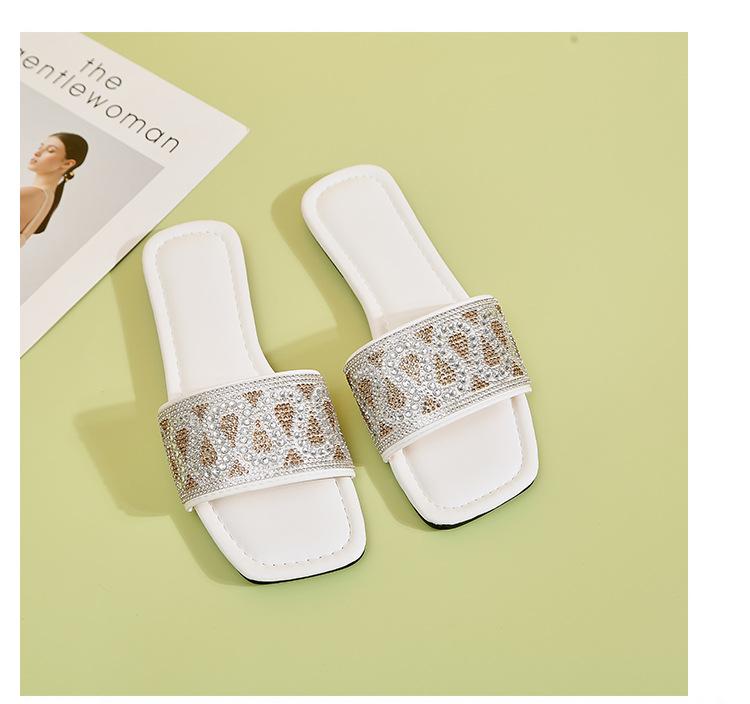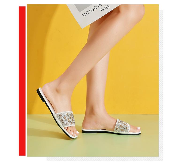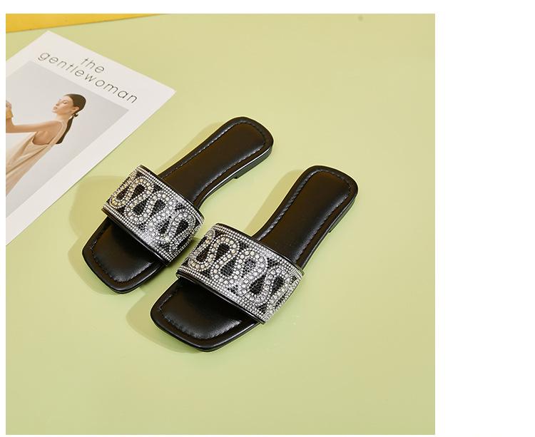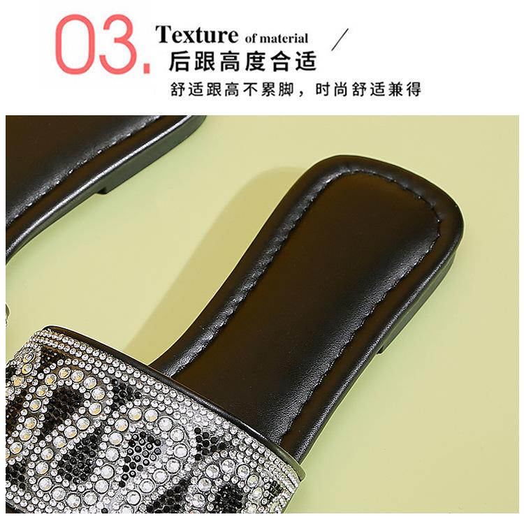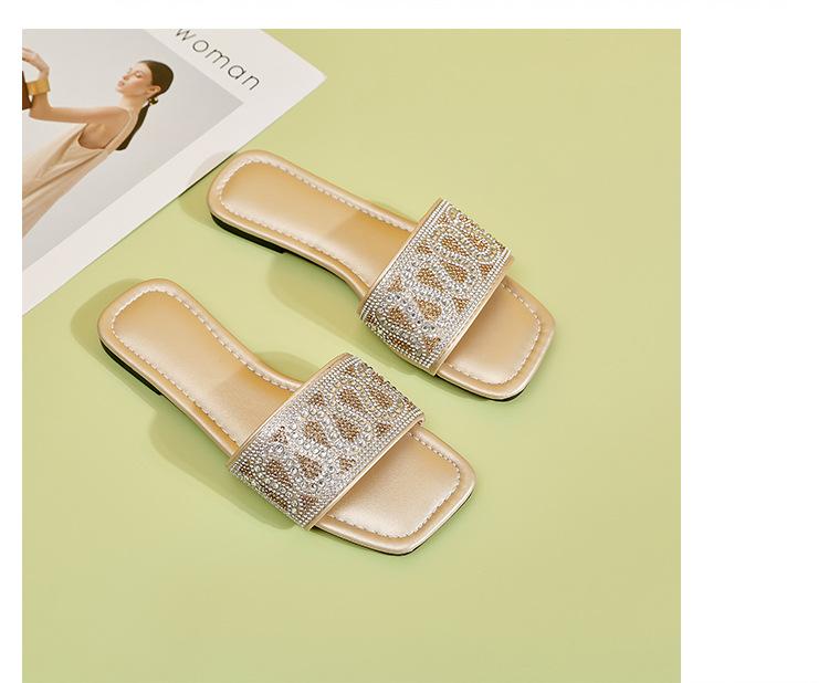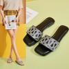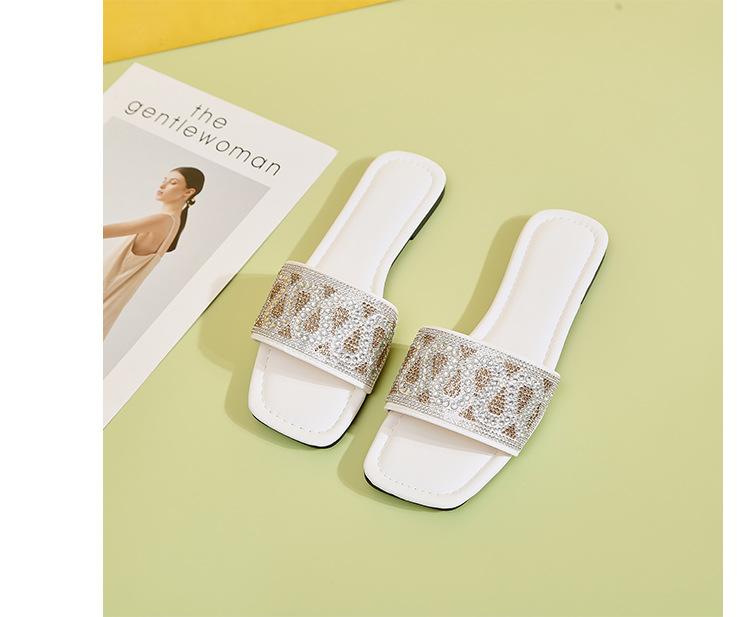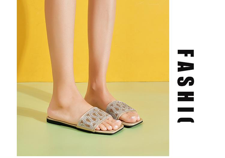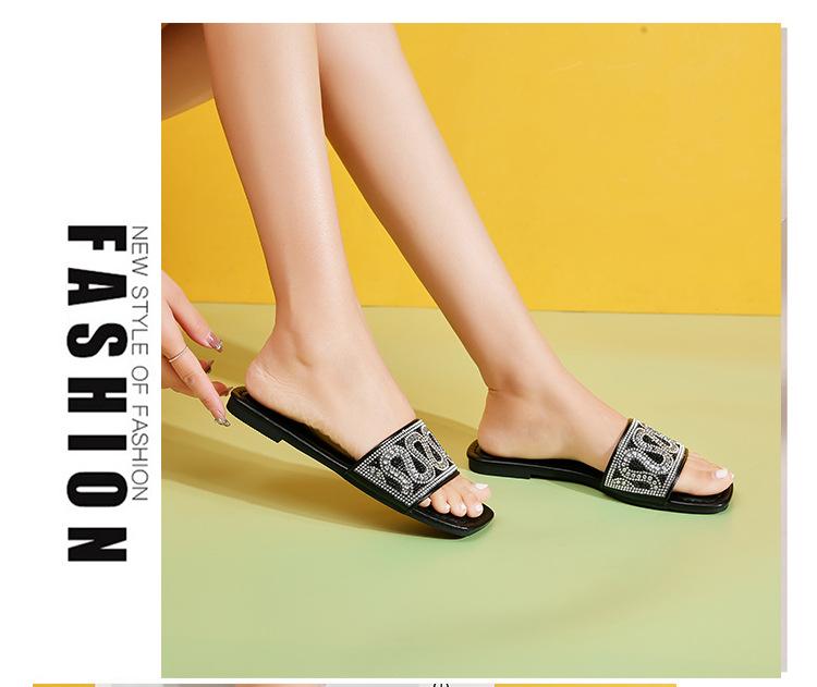 Zapatillas planas de punta cuadrada con pedrería estilo coreano para comercio exterior, para mujer, para uso transfronterizo, talla grande, ligeras, sandalias de playa wish
