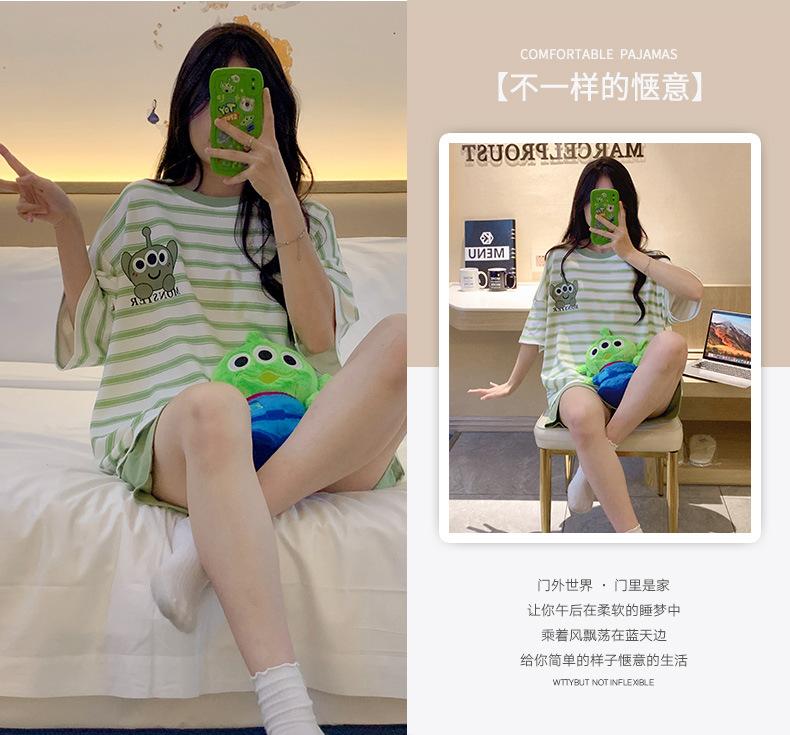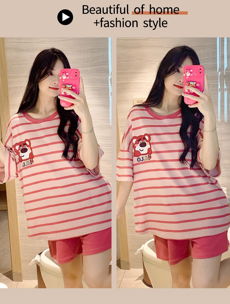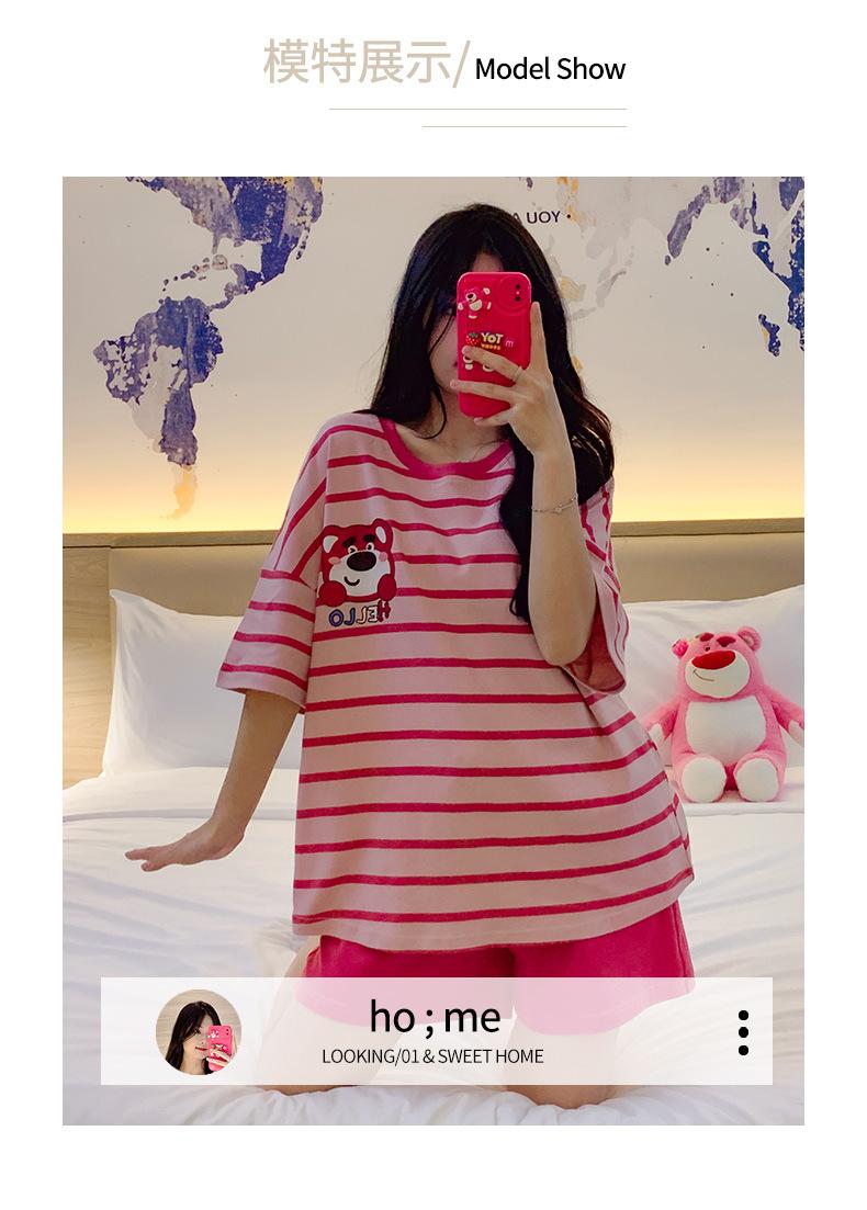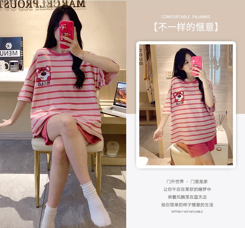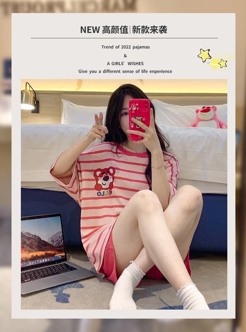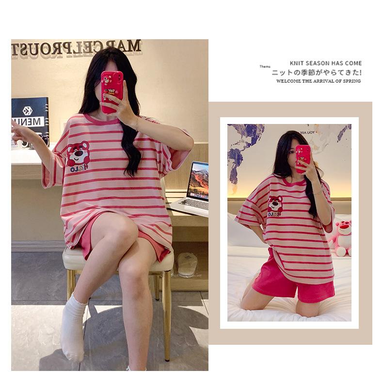 Pijamas bonitos de verano de algodón de imitación con dibujos animados y almohadilla para el pecho, pantalones cortos de manga corta para niñas, ropa de casa, traje de verano para estudiantes.