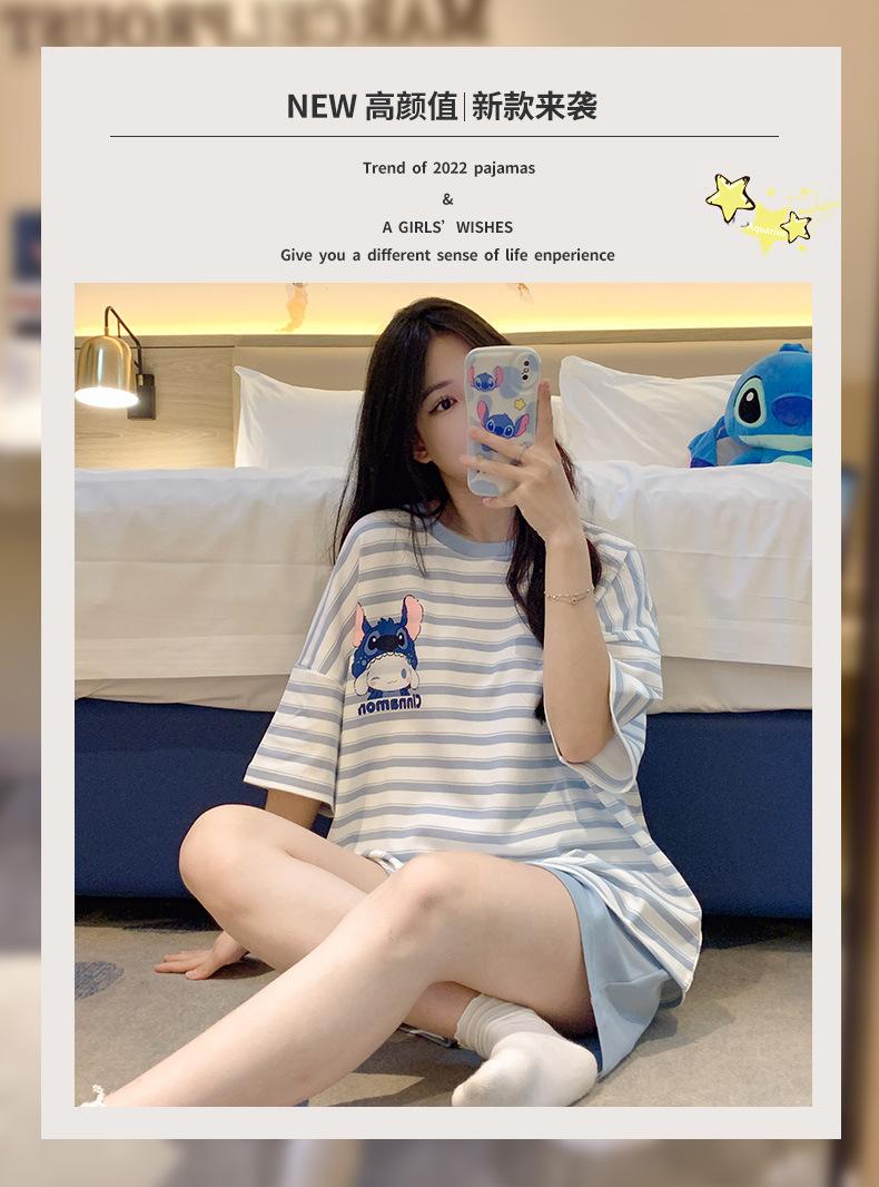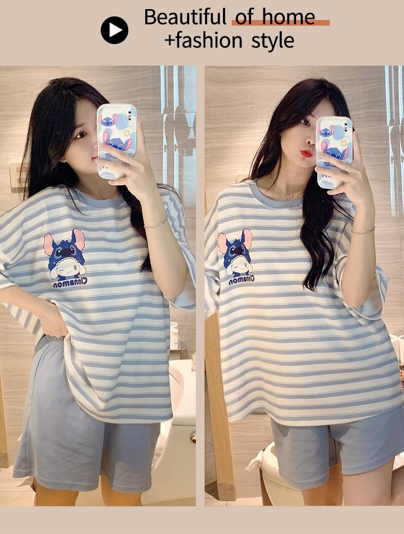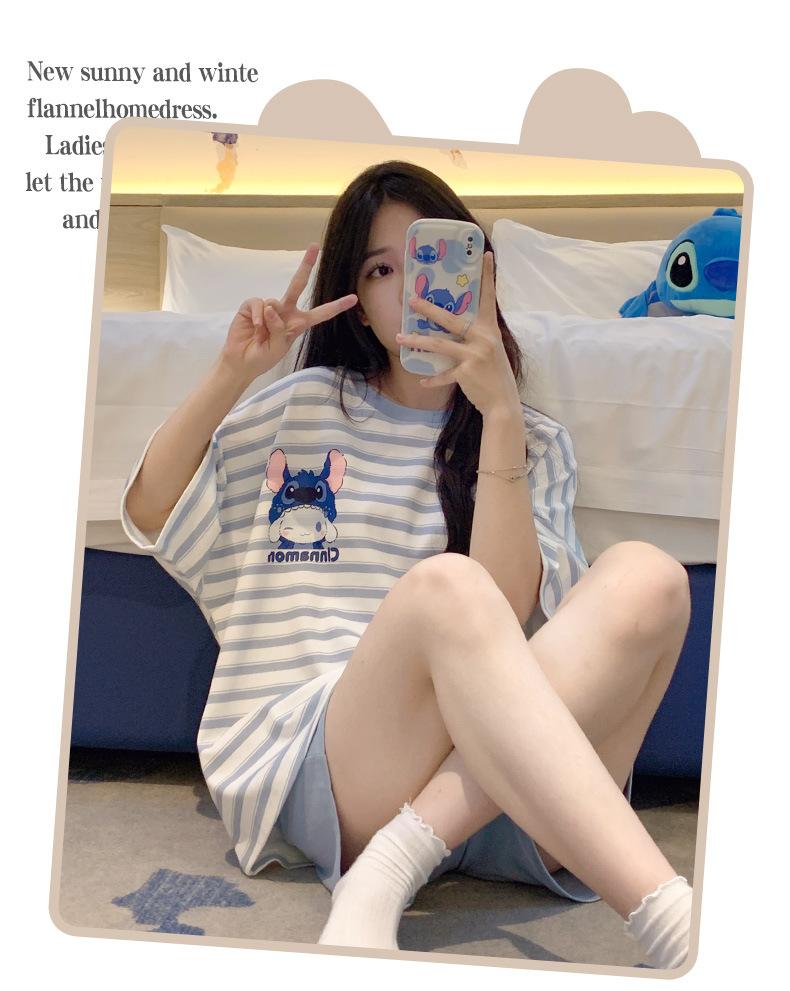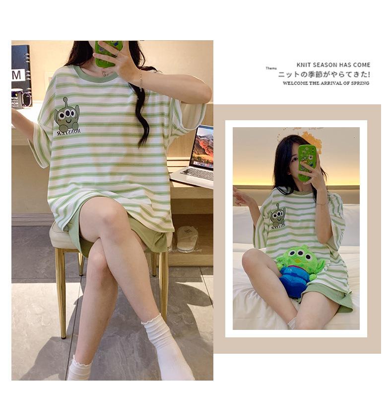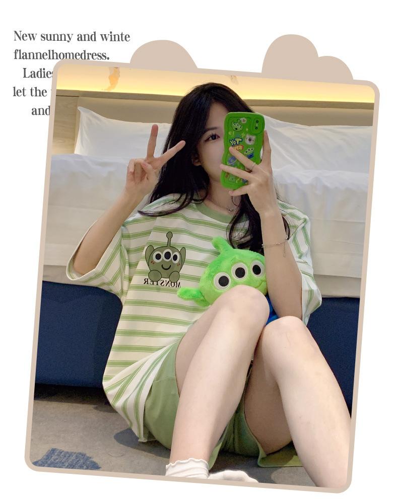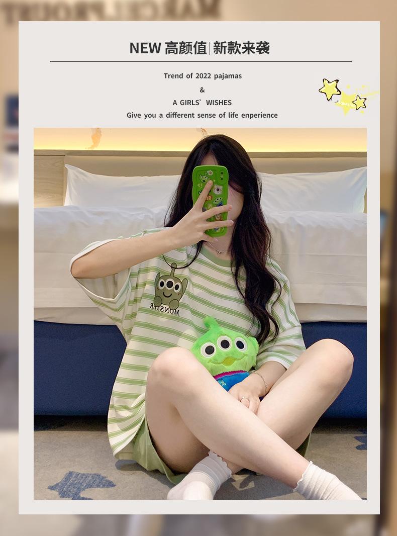 Pijamas bonitos de verano de algodón de imitación con dibujos animados y almohadilla para el pecho, pantalones cortos de manga corta para niñas, ropa de casa, traje de verano para estudiantes.