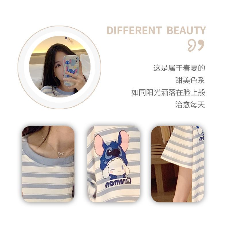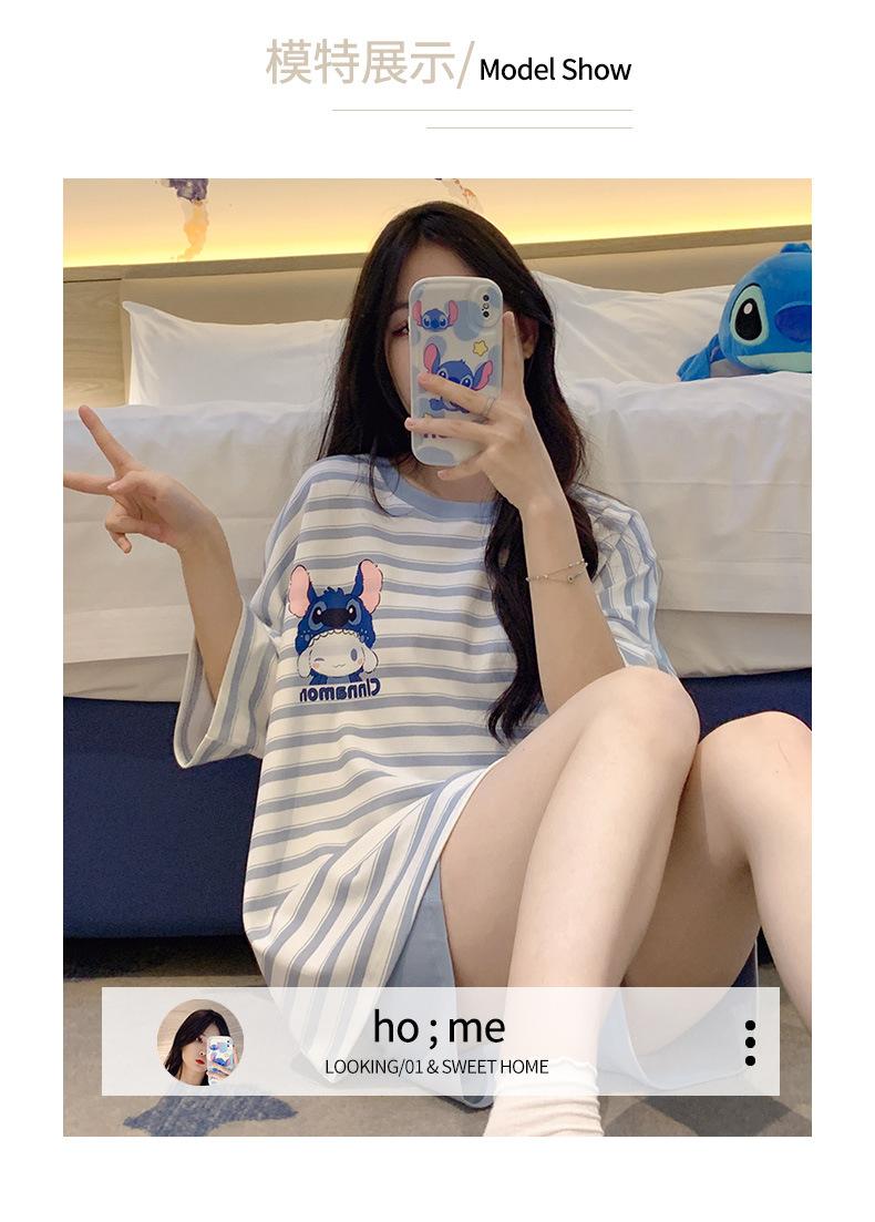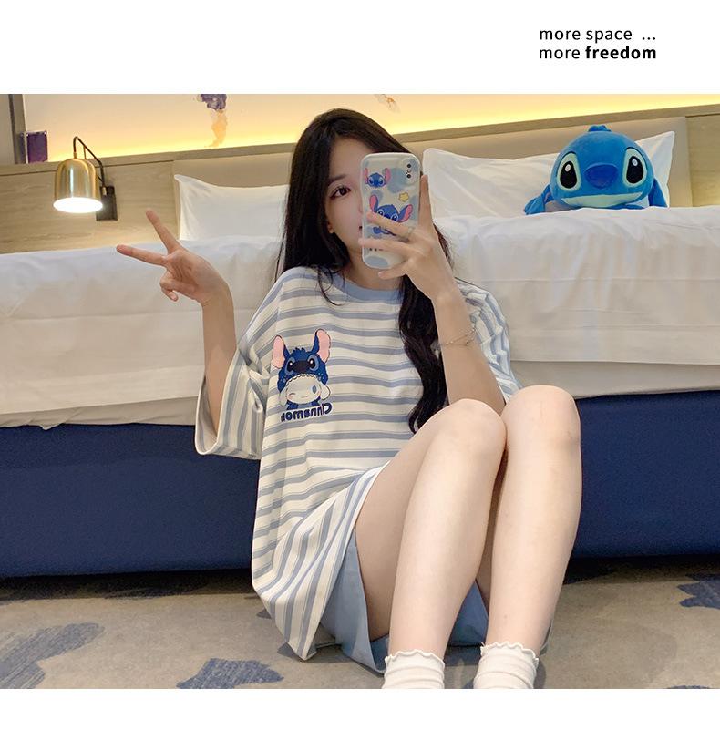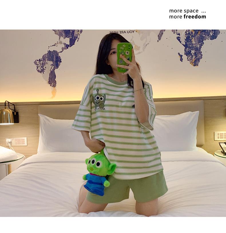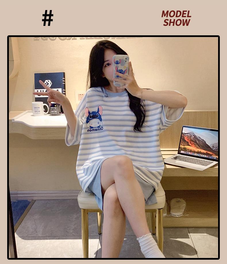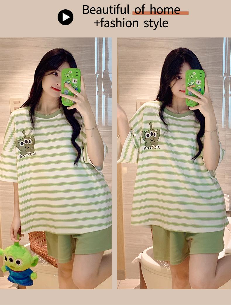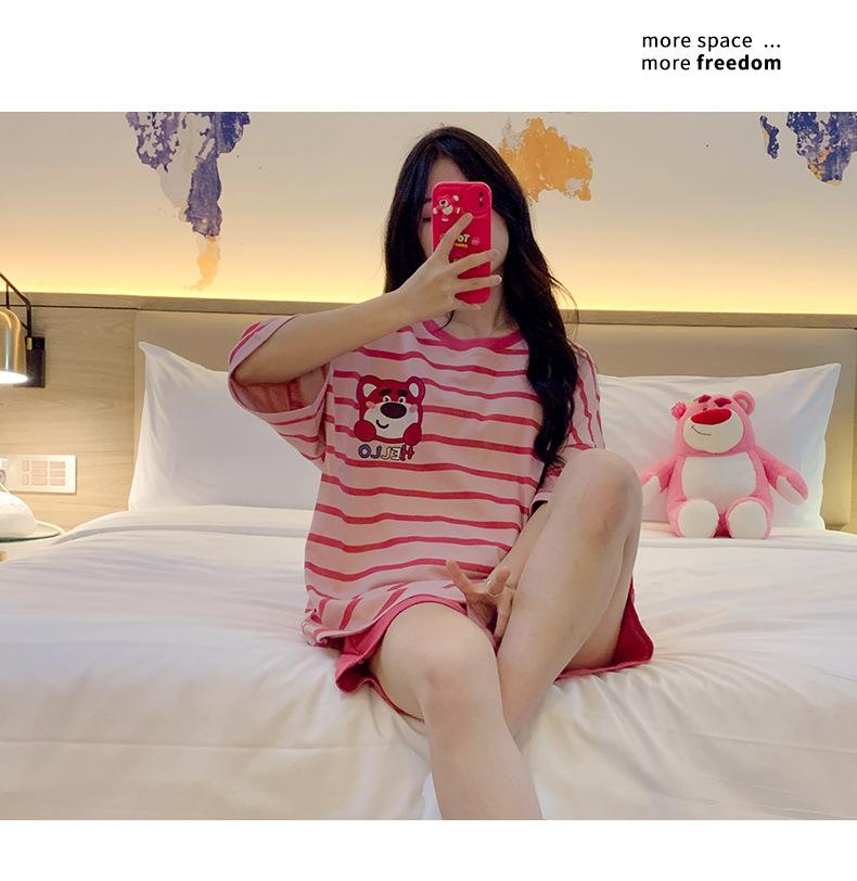 Pijamas bonitos de verano de algodón de imitación con dibujos animados y almohadilla para el pecho, pantalones cortos de manga corta para niñas, ropa de casa, traje de verano para estudiantes.