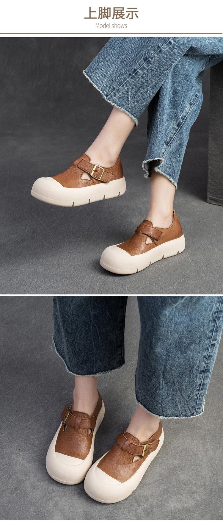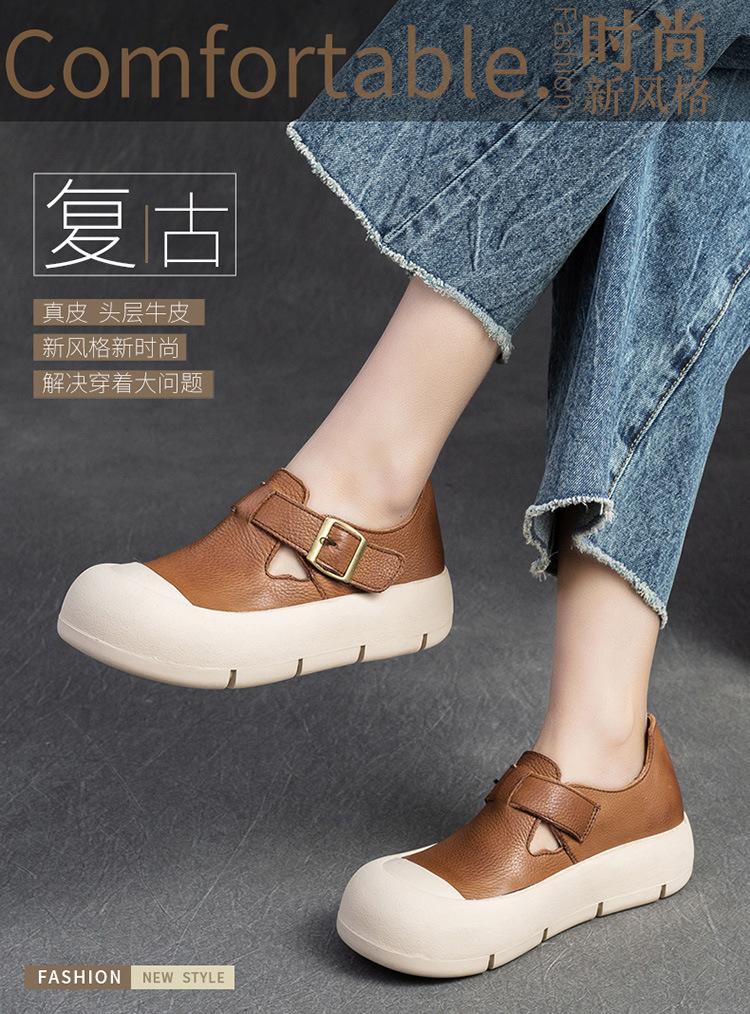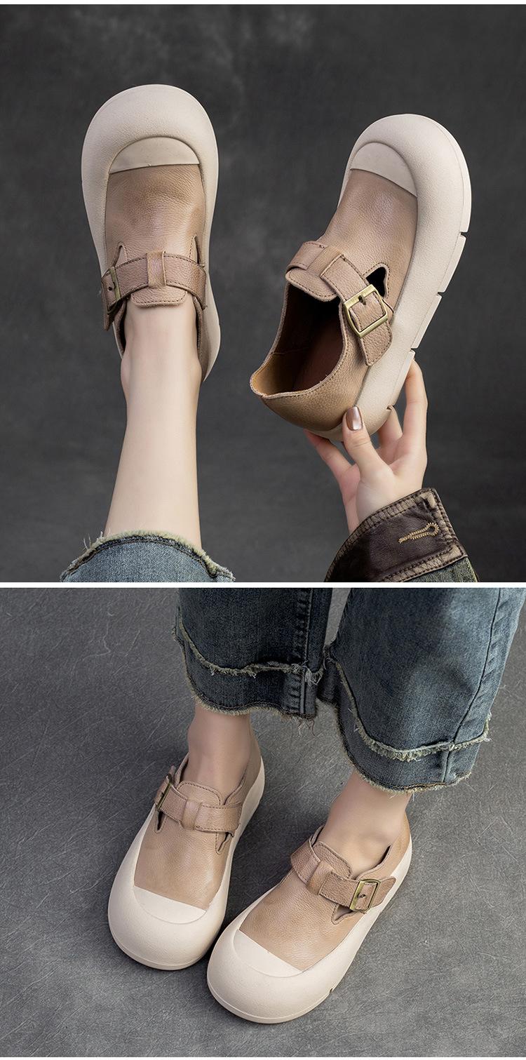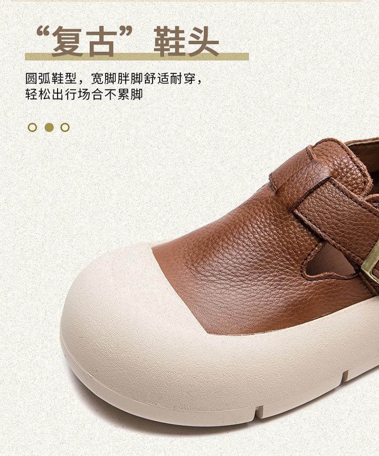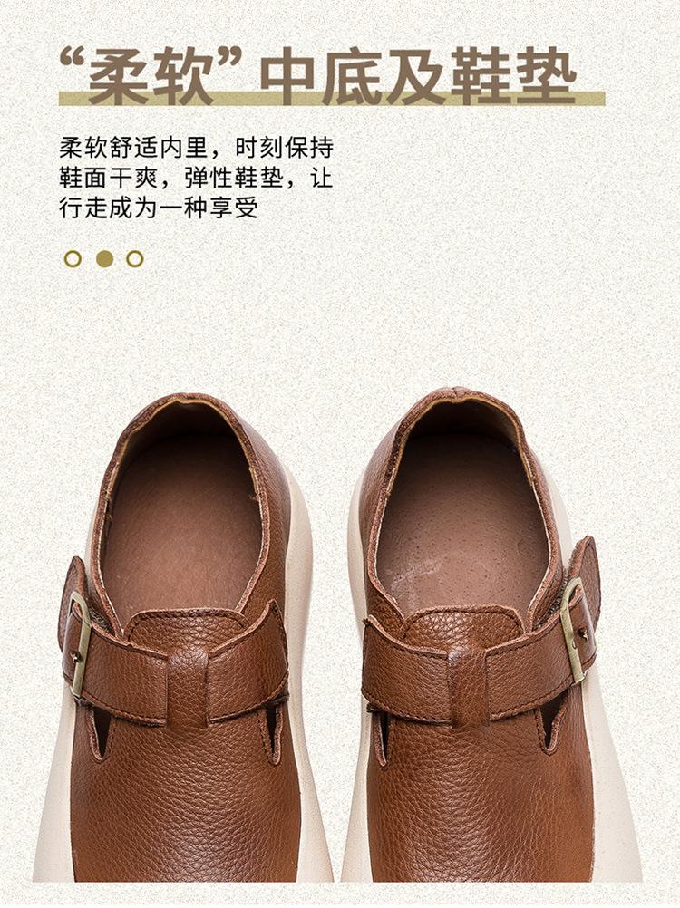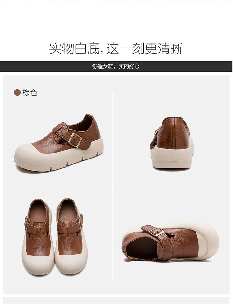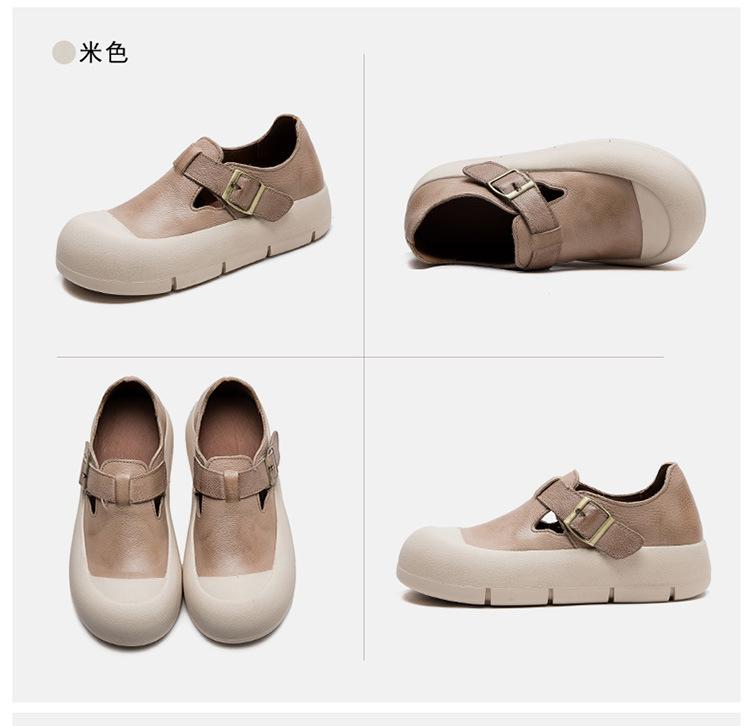 Shanghai Jie Shu 2024 primavera nuevo Mori punta redonda simple casual zapatos de una sola capa velcro estilo retro zapatos de mujer combinables