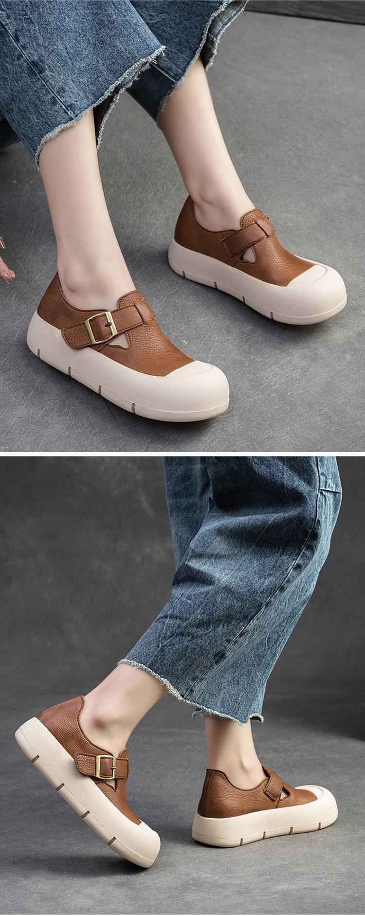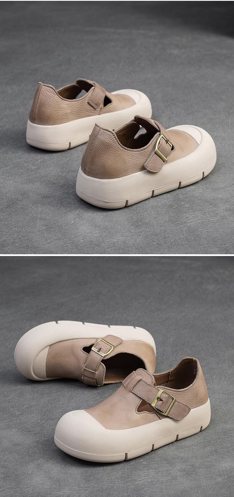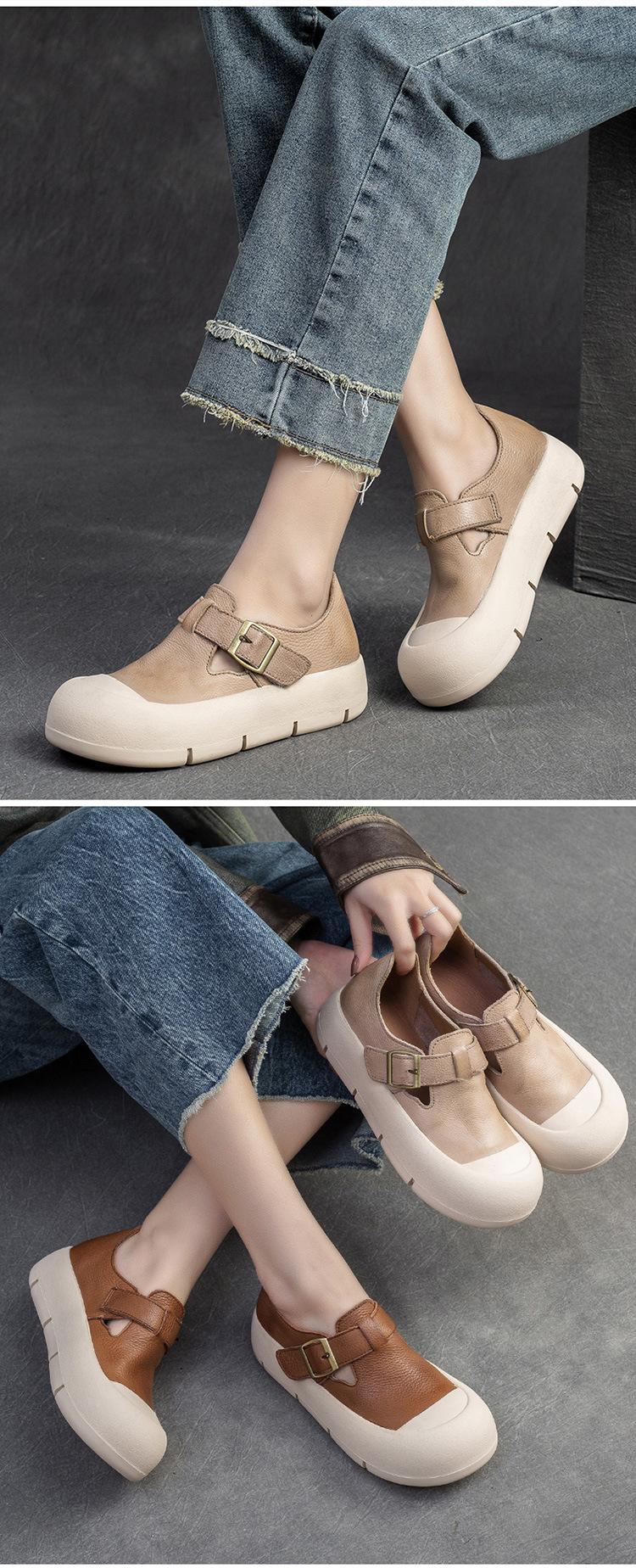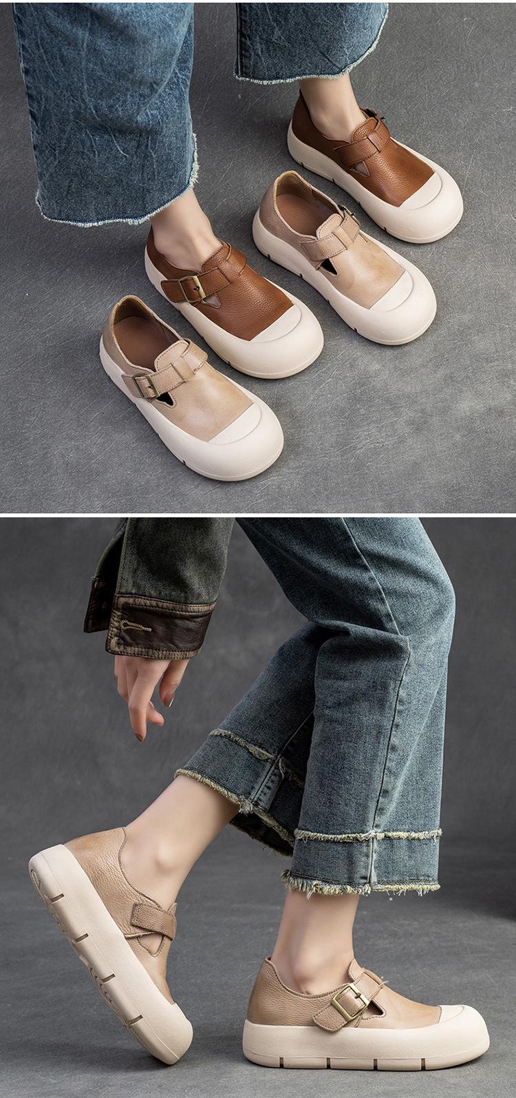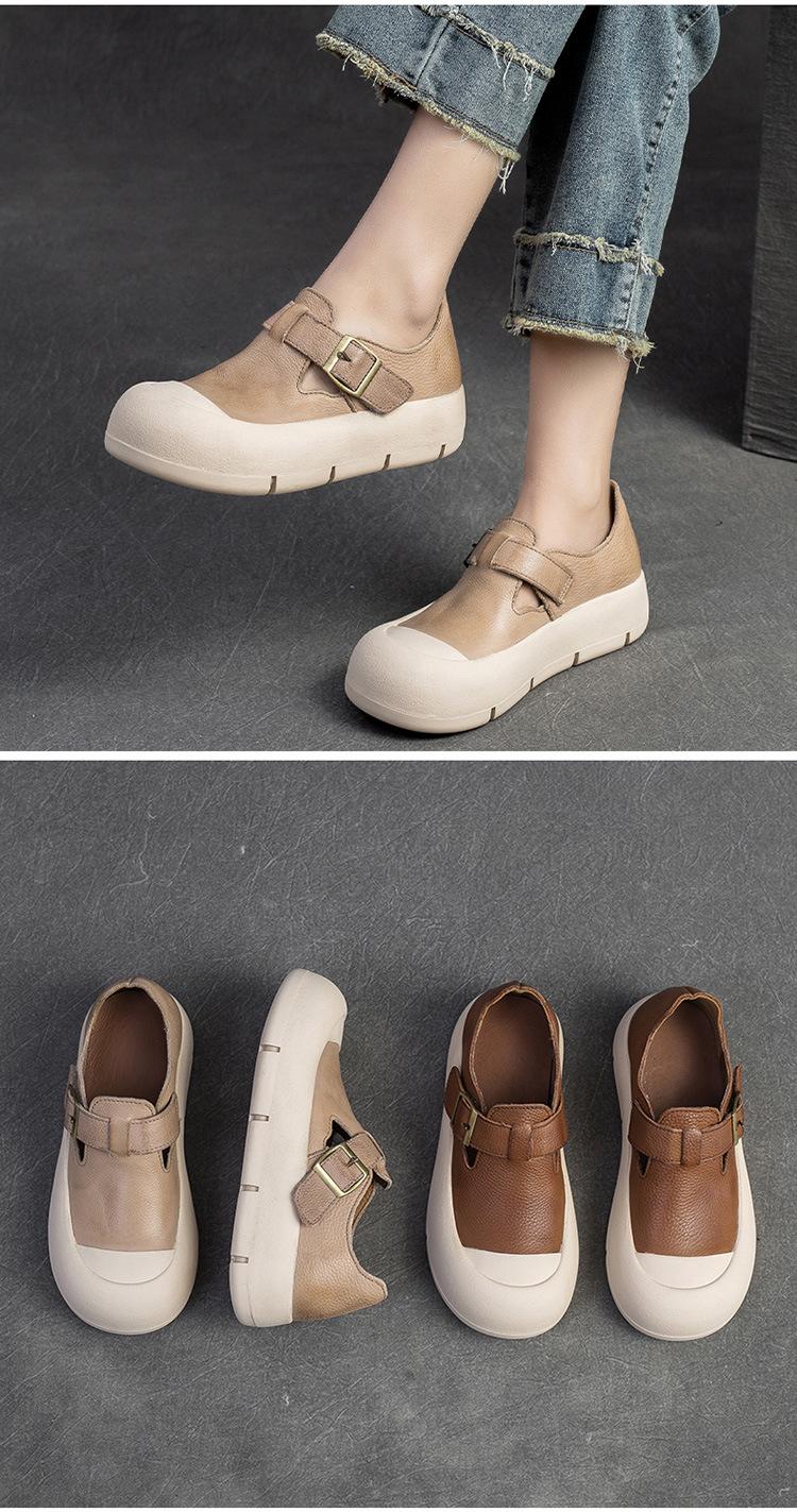 Shanghai Jie Shu 2024 primavera nuevo Mori punta redonda simple casual zapatos de una sola capa velcro estilo retro zapatos de mujer combinables