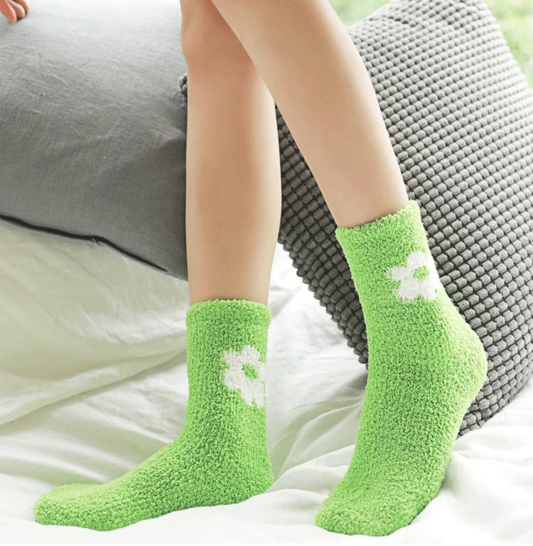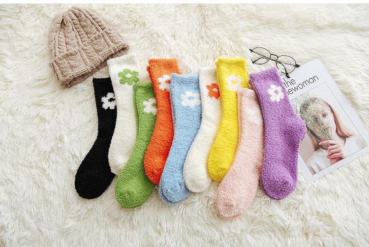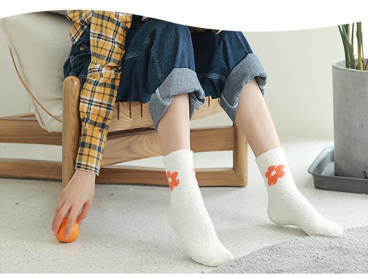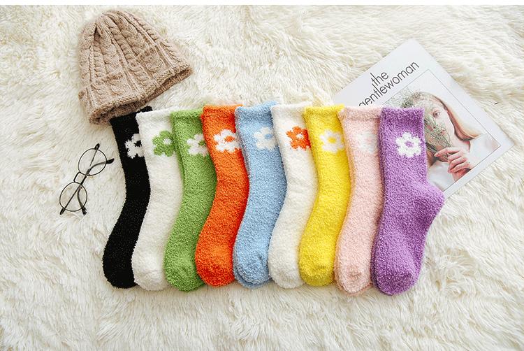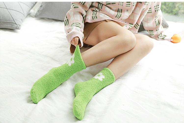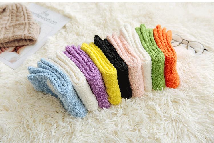Calcetines de otoño e invierno para mujer al por mayor, calcetines de color de terciopelo coral para dama, cálidos y acolchados, calcetines para dormir, calcetines de toalla
