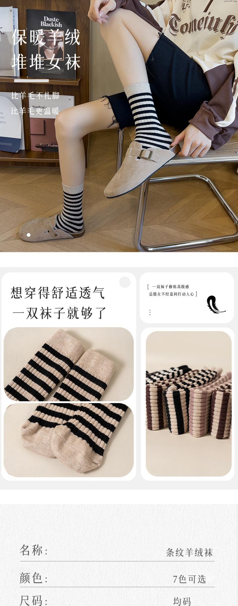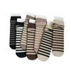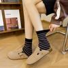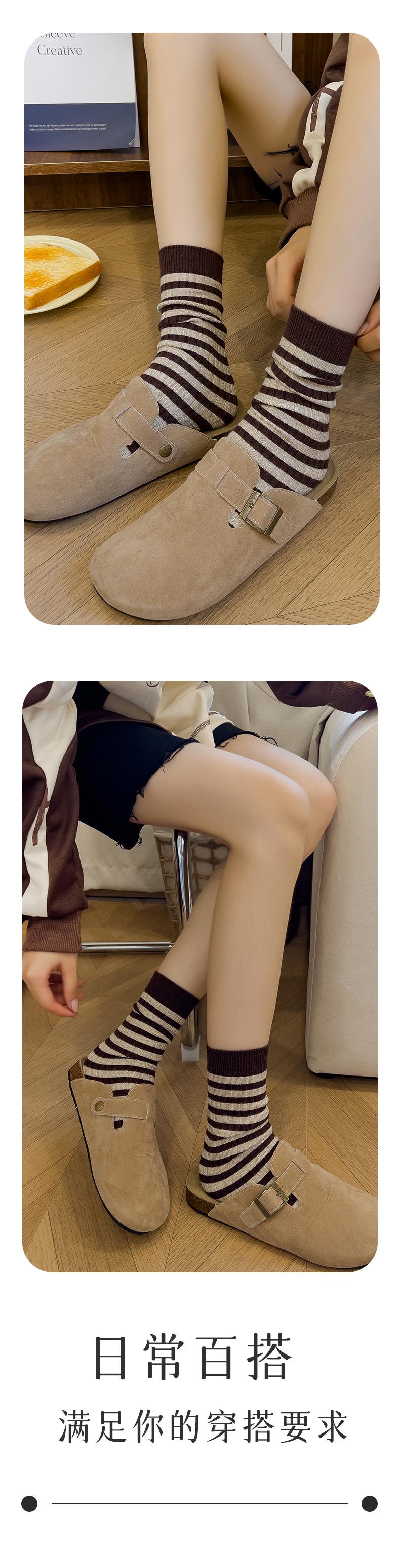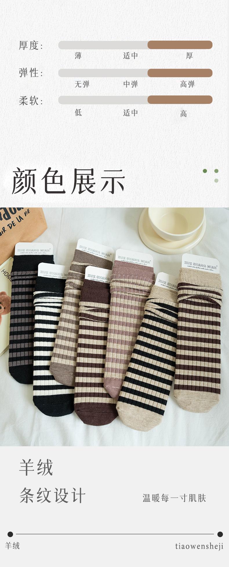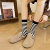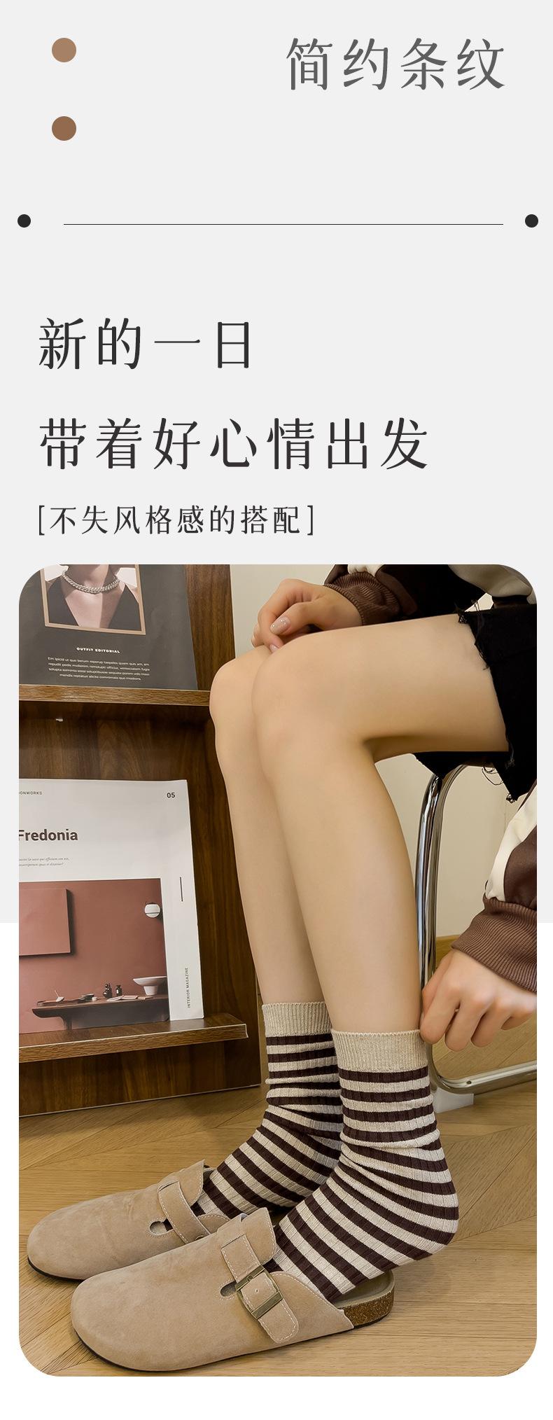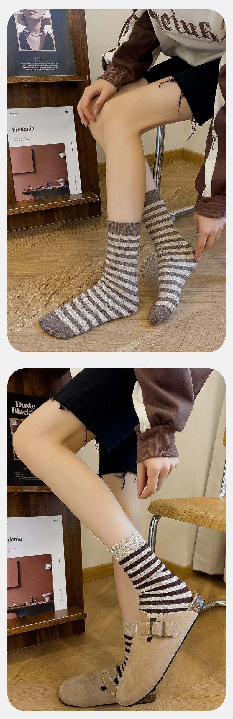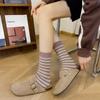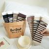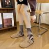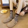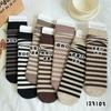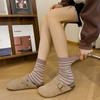 Calcetines de media pantorrilla con rayas blancas y negras para mujer, estilo preppy de moda, costura japonesa, serie marrón, calcetines de cachemira cálidos de otoño e invierno.