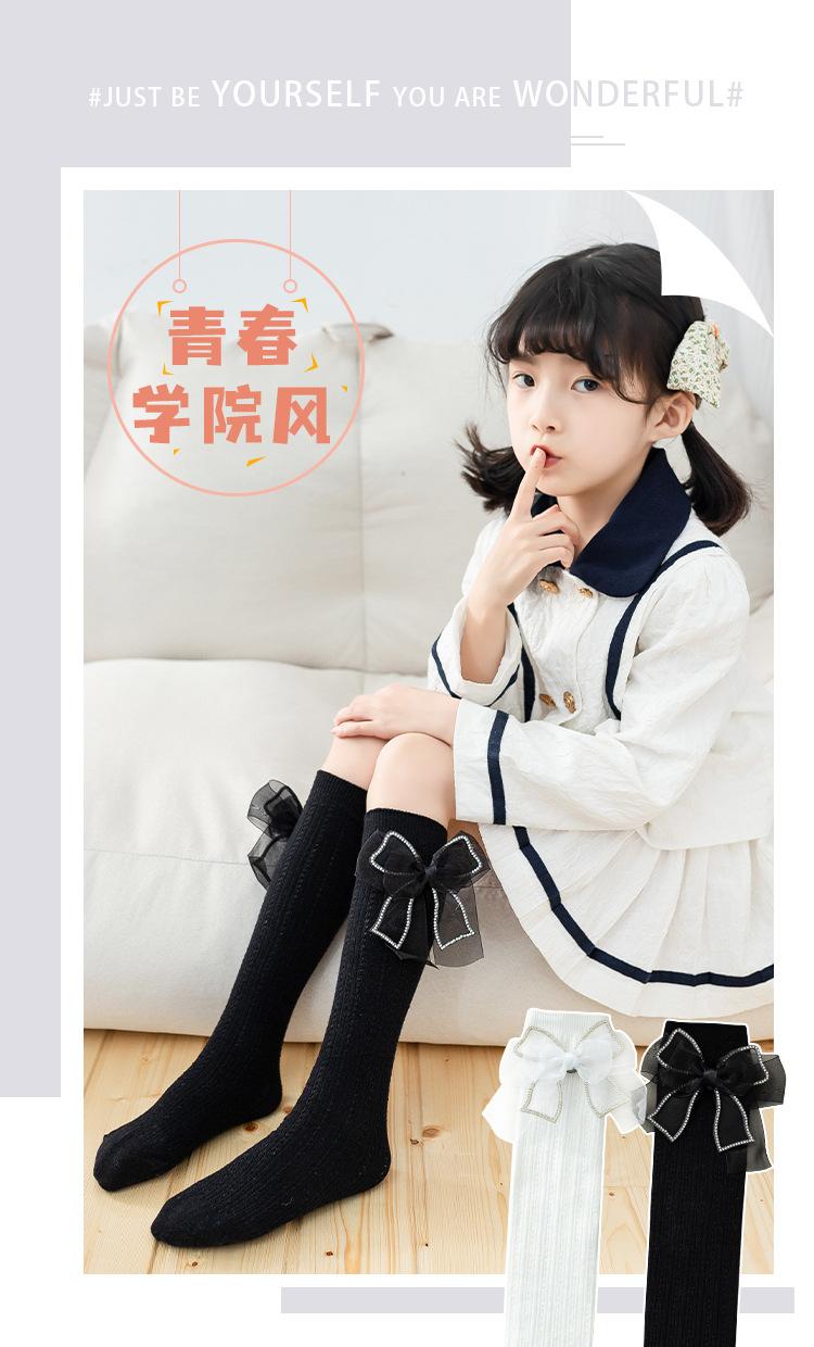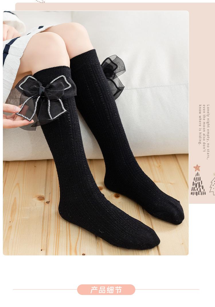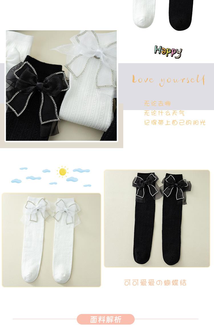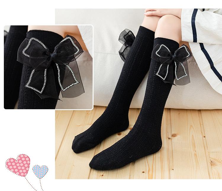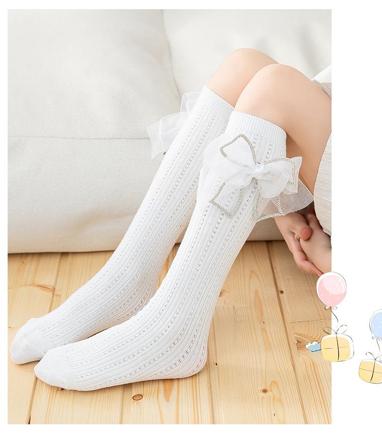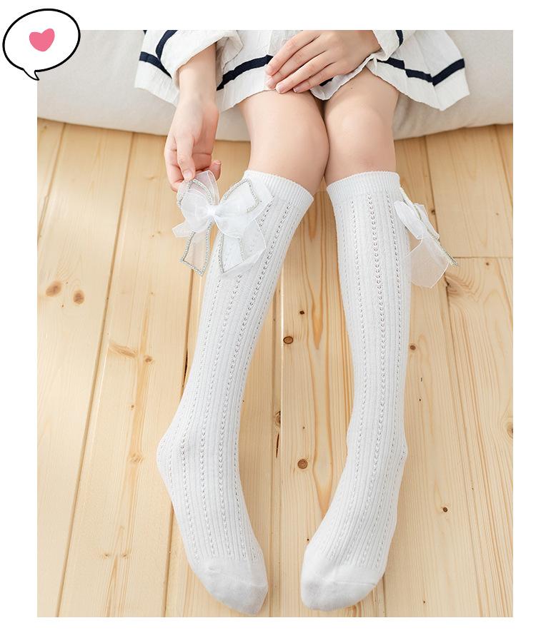 Primavera y Verano Nuevo Diamante Hilo Coreano Lazo Malla Calcetines de Media Pantorrilla para Niños Calcetines Delgados para Niñas Calcetines Rectos de Pantorrilla