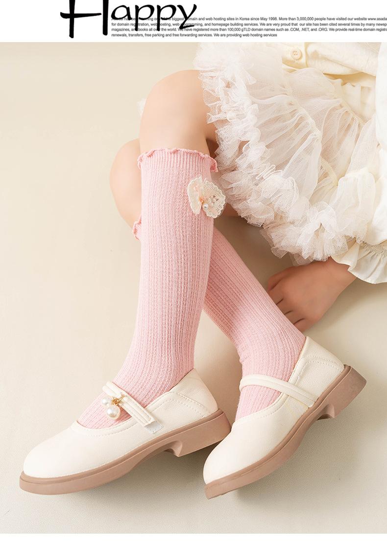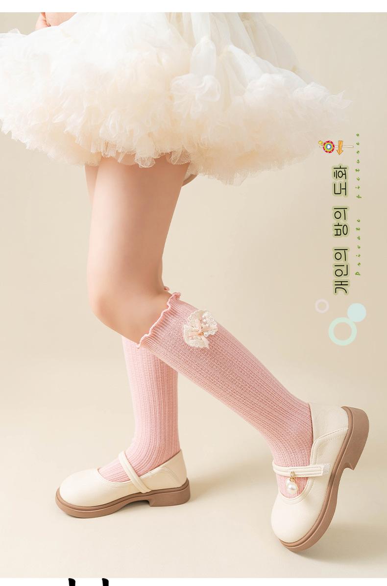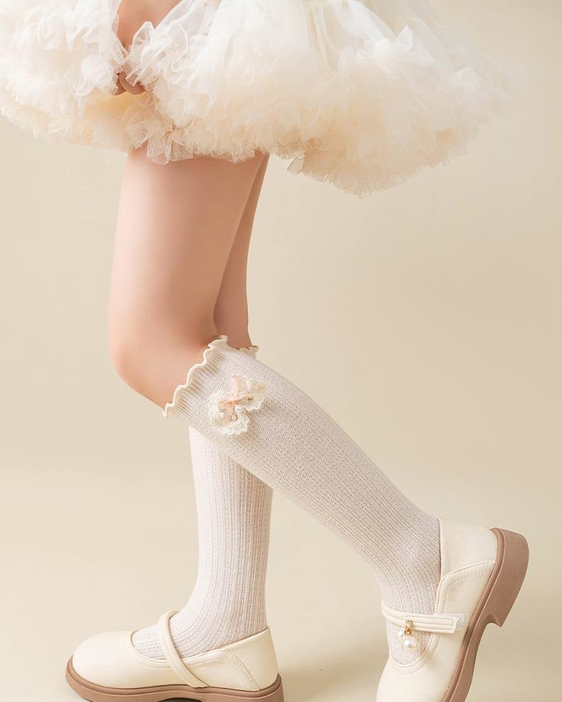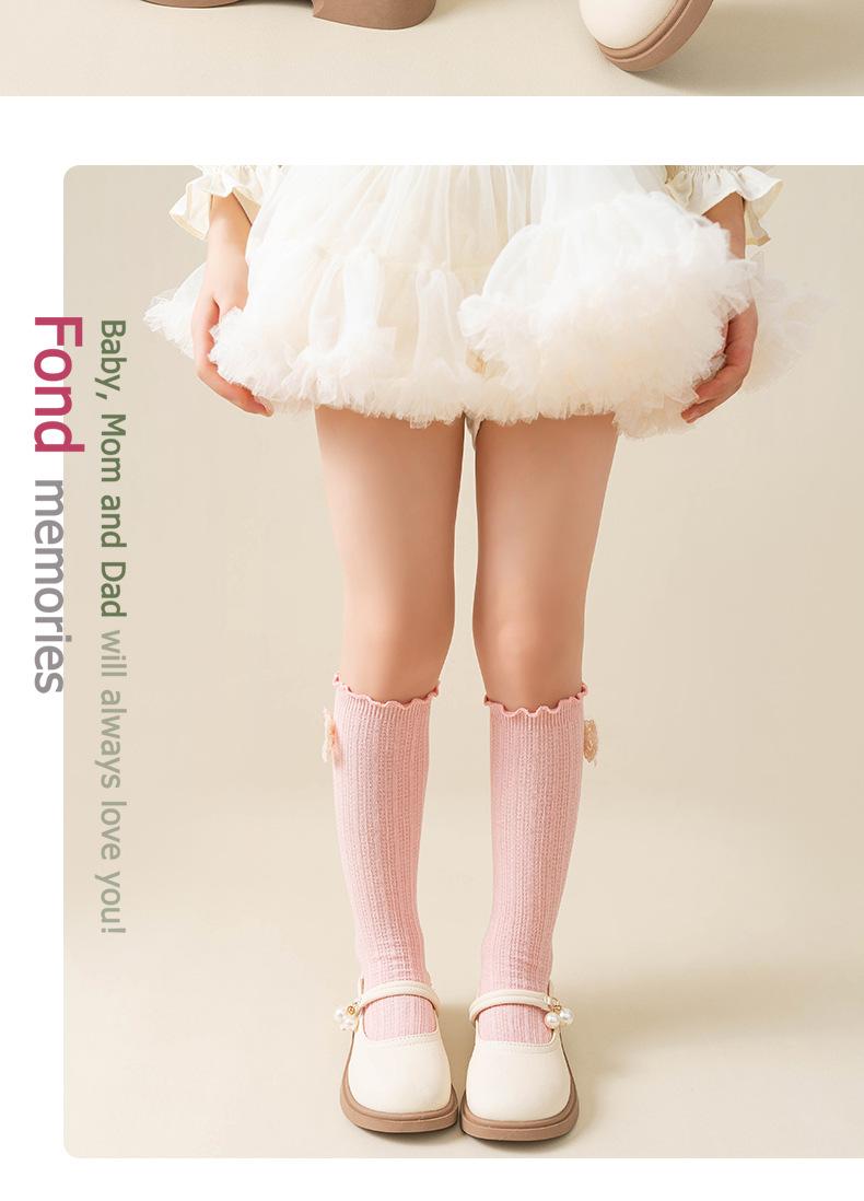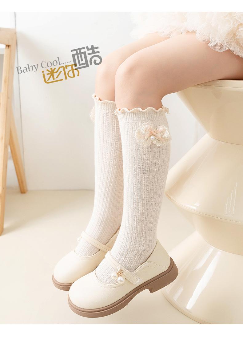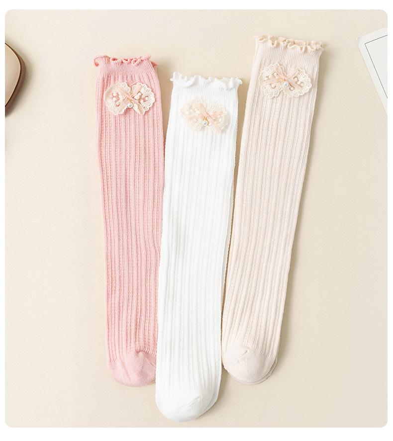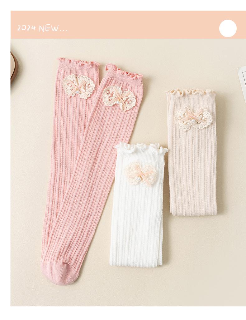 2024 Primavera y Verano Nuevos Calcetines a Media Pantorrilla para Niños con Lazo Calados Rectos Calcetines de Pantorrilla para Niñas Lindos Calcetines Altos hasta la Rodilla
