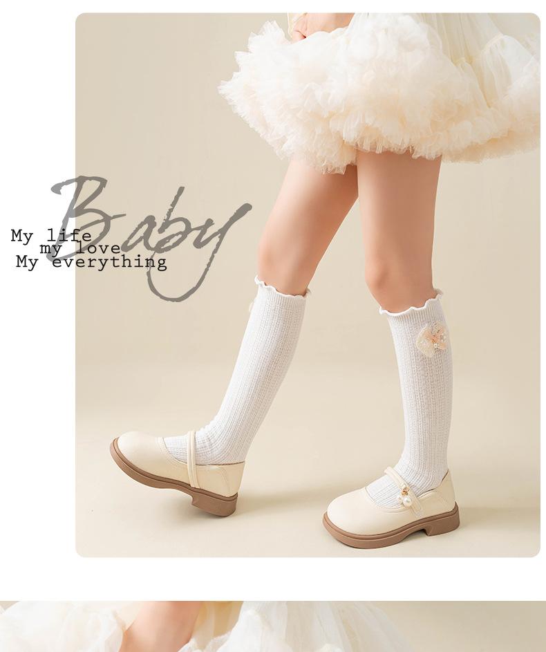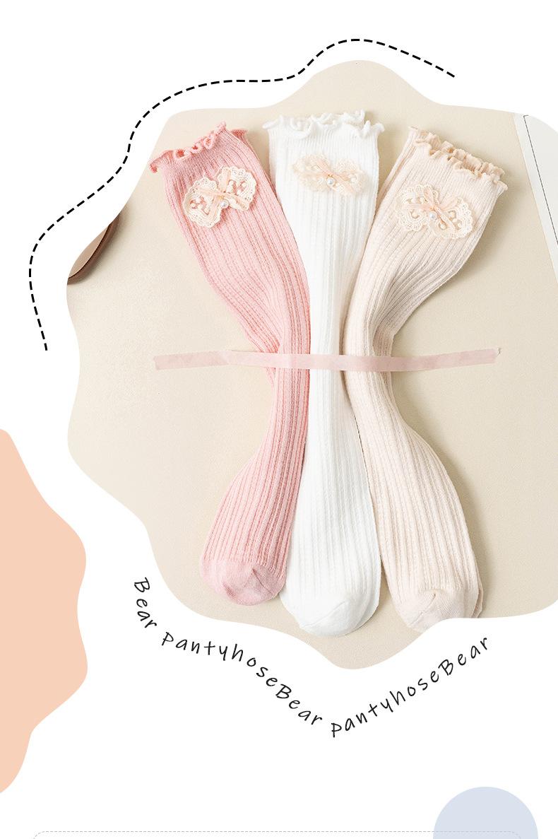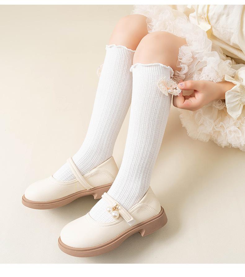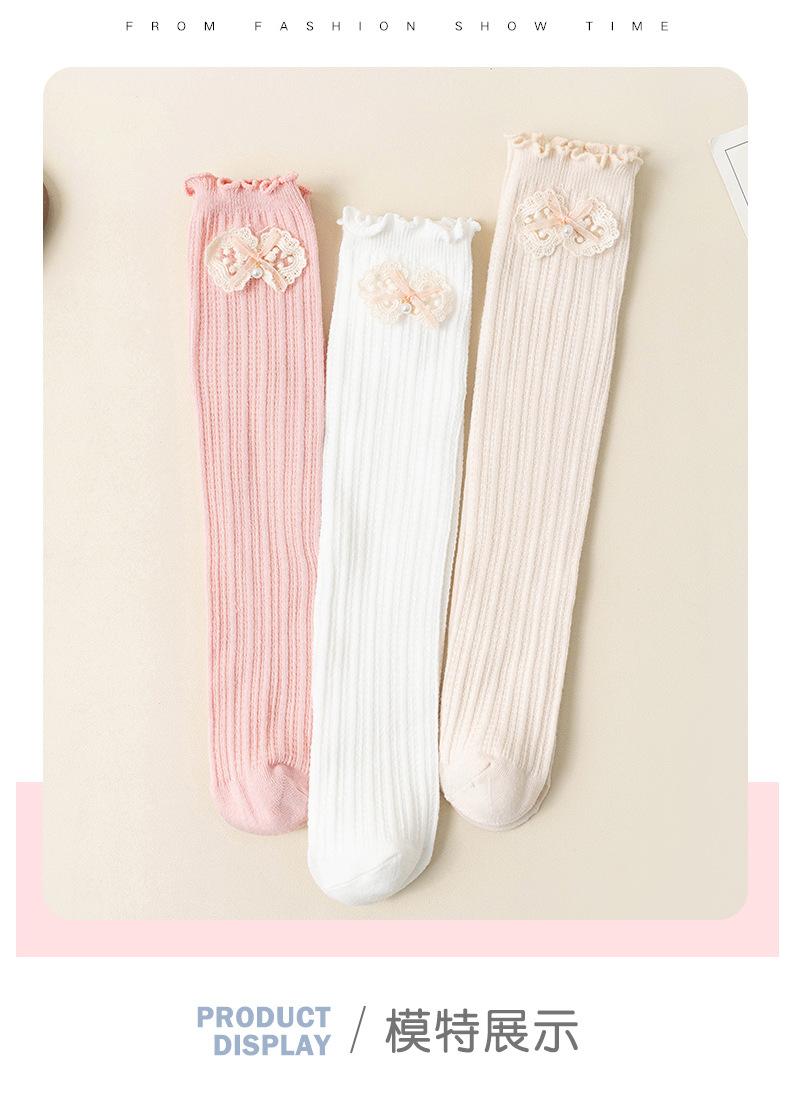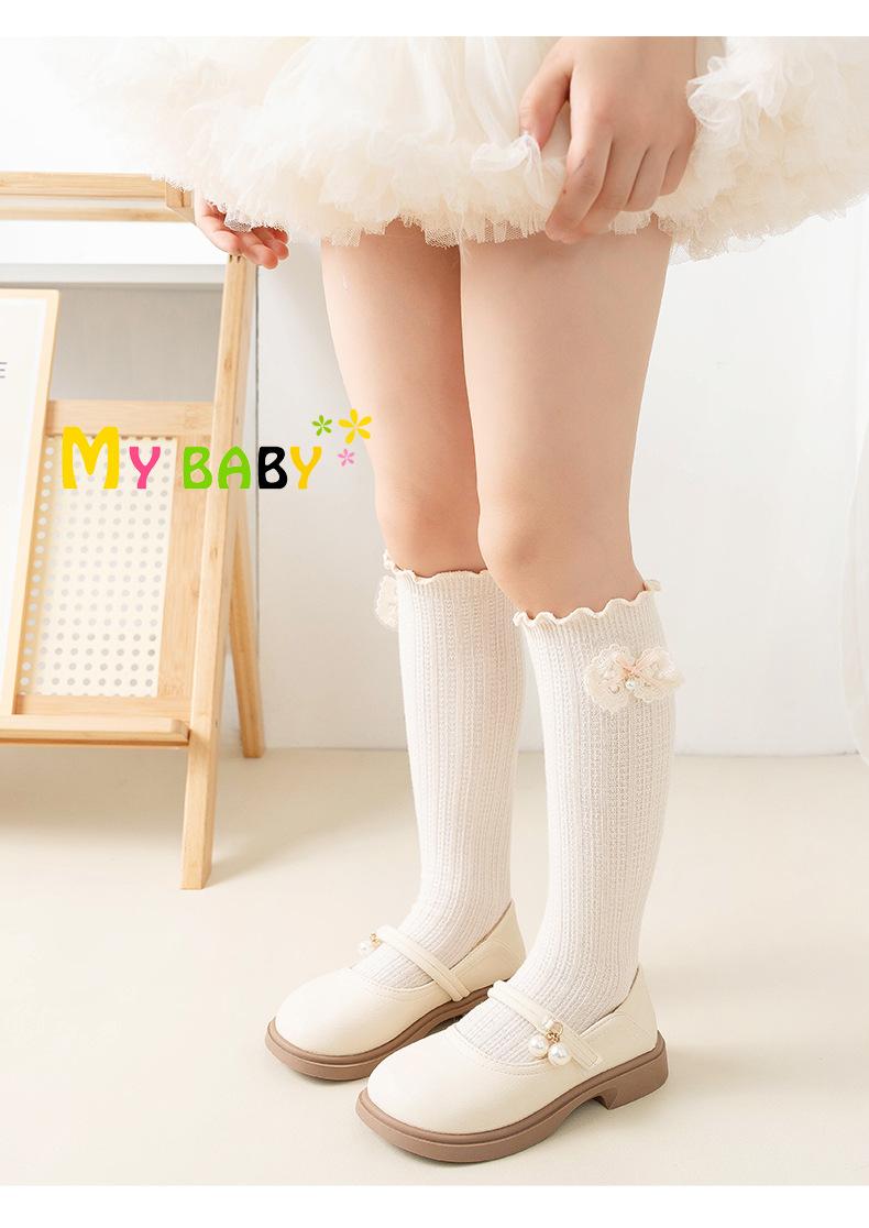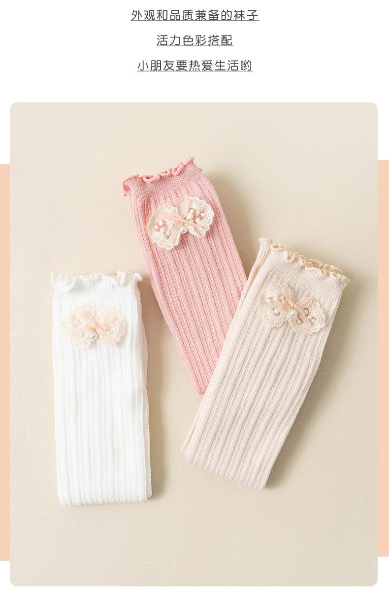 2024 Primavera y Verano Nuevos Calcetines a Media Pantorrilla para Niños con Lazo Calados Rectos Calcetines de Pantorrilla para Niñas Lindos Calcetines Altos hasta la Rodilla