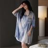 Pijamas de pareja para mujer, primavera y verano, cárdigan de manga larga de seda helada, traje Xiaohongshu, ropa de hogar con bordado personalizable para el Día de San Valentín, fina¥75.0090 yenes
