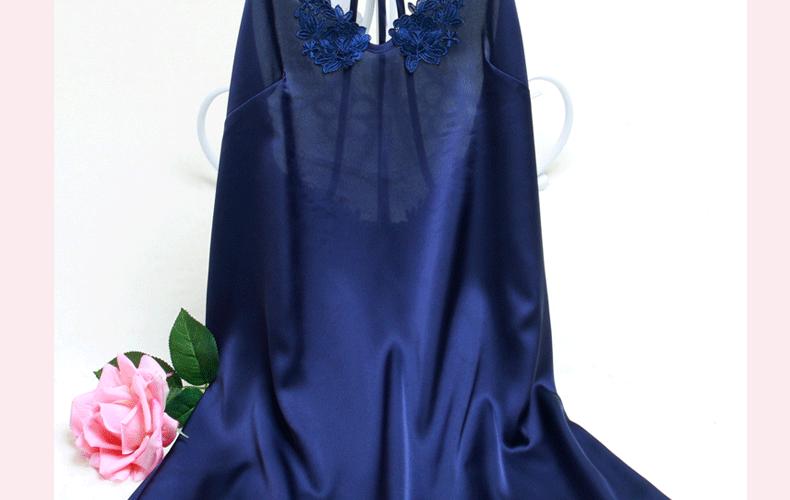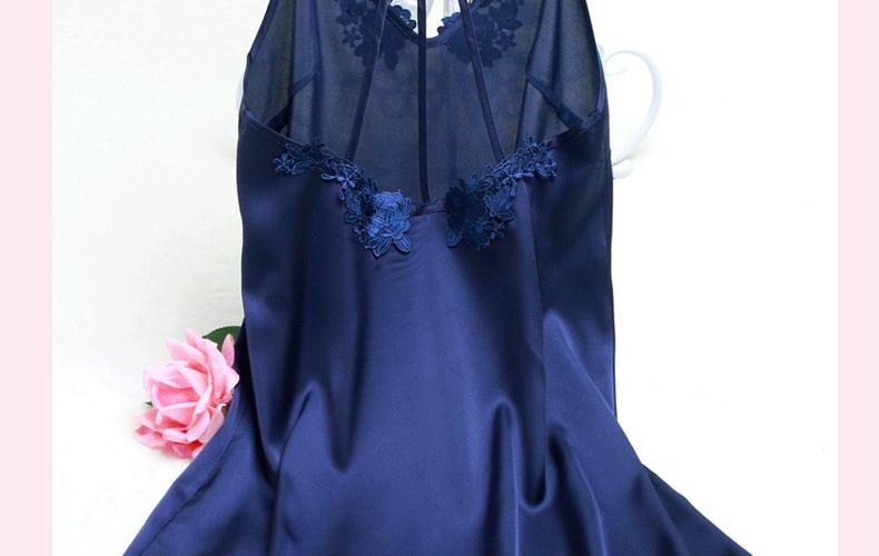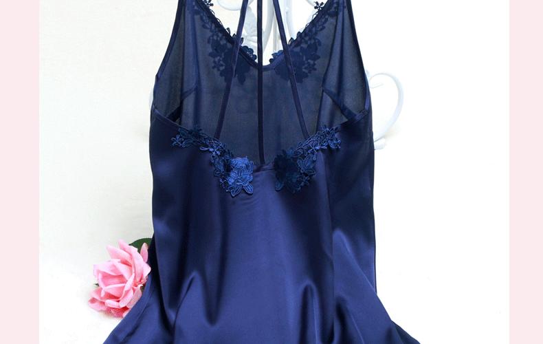 Camisón de seda sintética, sexy, estilo europeo y americano, para mujer, de verano, bordado, con tirantes, de seda helada, nuevo estilo, con espalda hermosa.