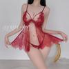 Yiyue lencería sexy con tirantes de encaje, camisón tentador, uniforme abierto, pijama gratis, traje 8536