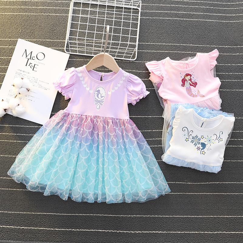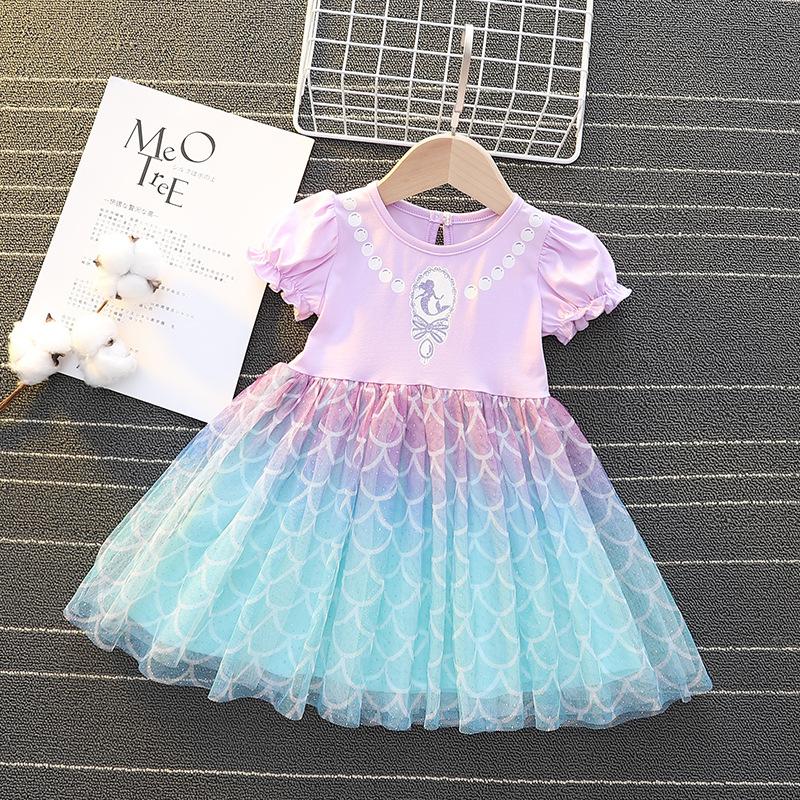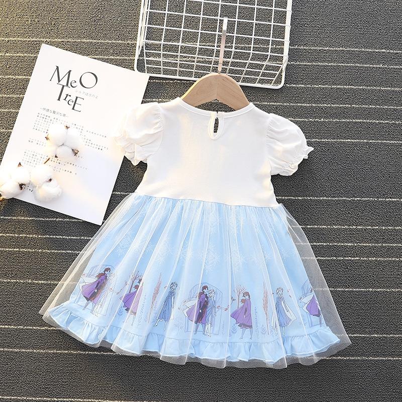 Vestido de manga corta para niñas de comercio exterior 2024, vestido de verano para niñas, vestido de Elsa, falda de bebé, vestido de princesa Aisha