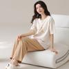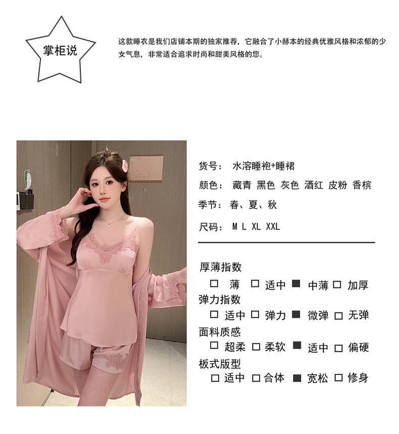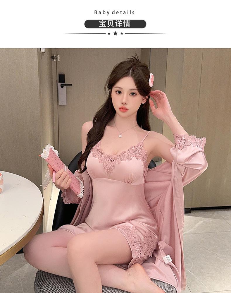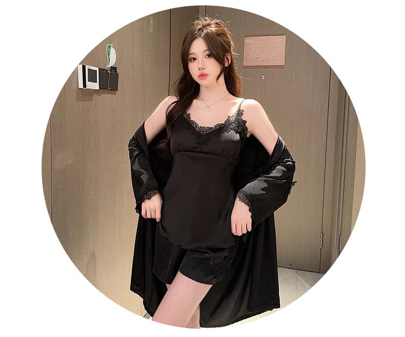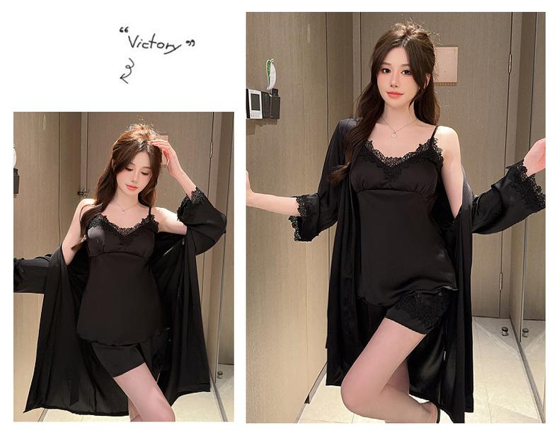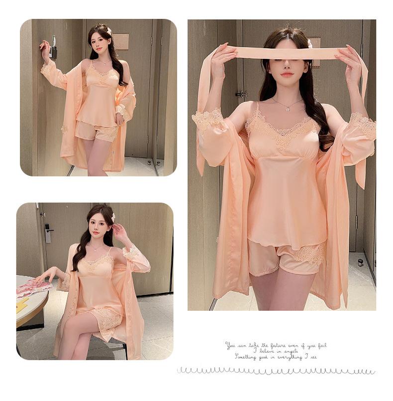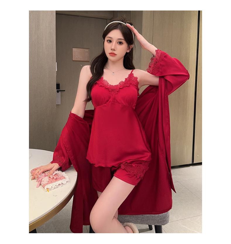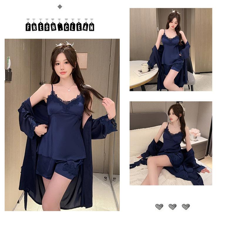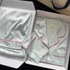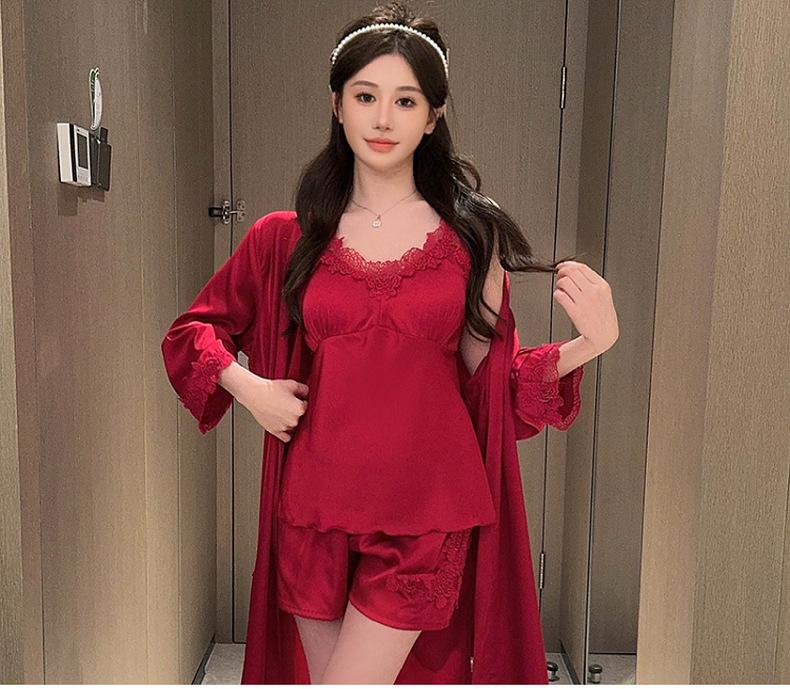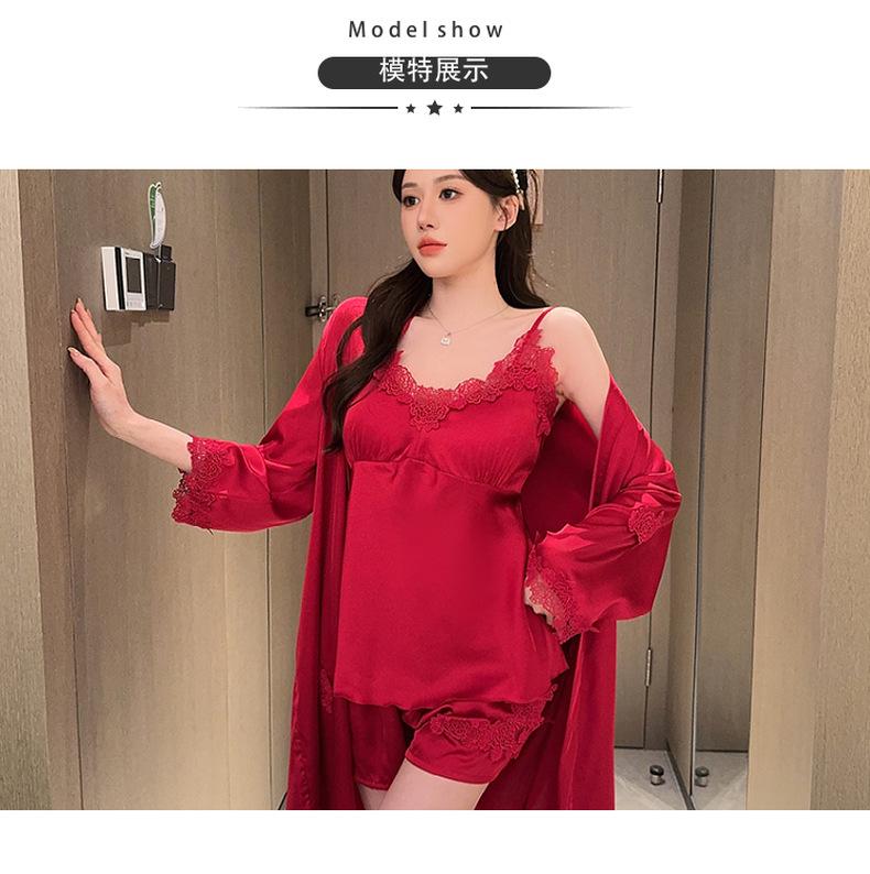 Pijama de verano para mujer, de seda helada, sexy, para adultos, primavera y otoño, de manga larga, fino, de tres piezas