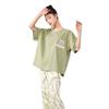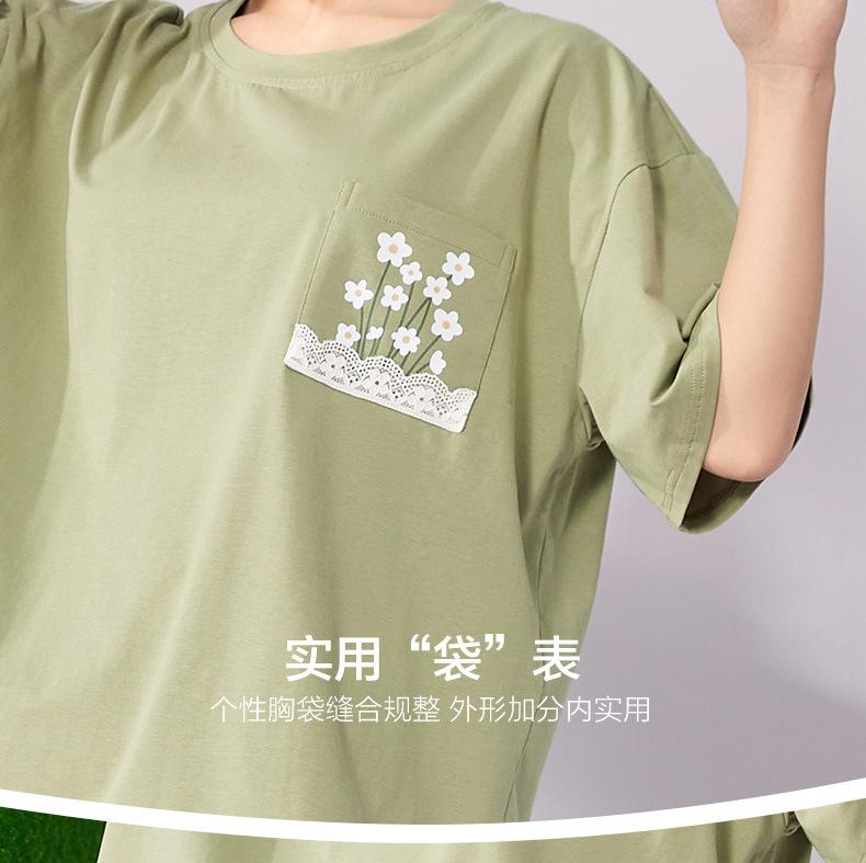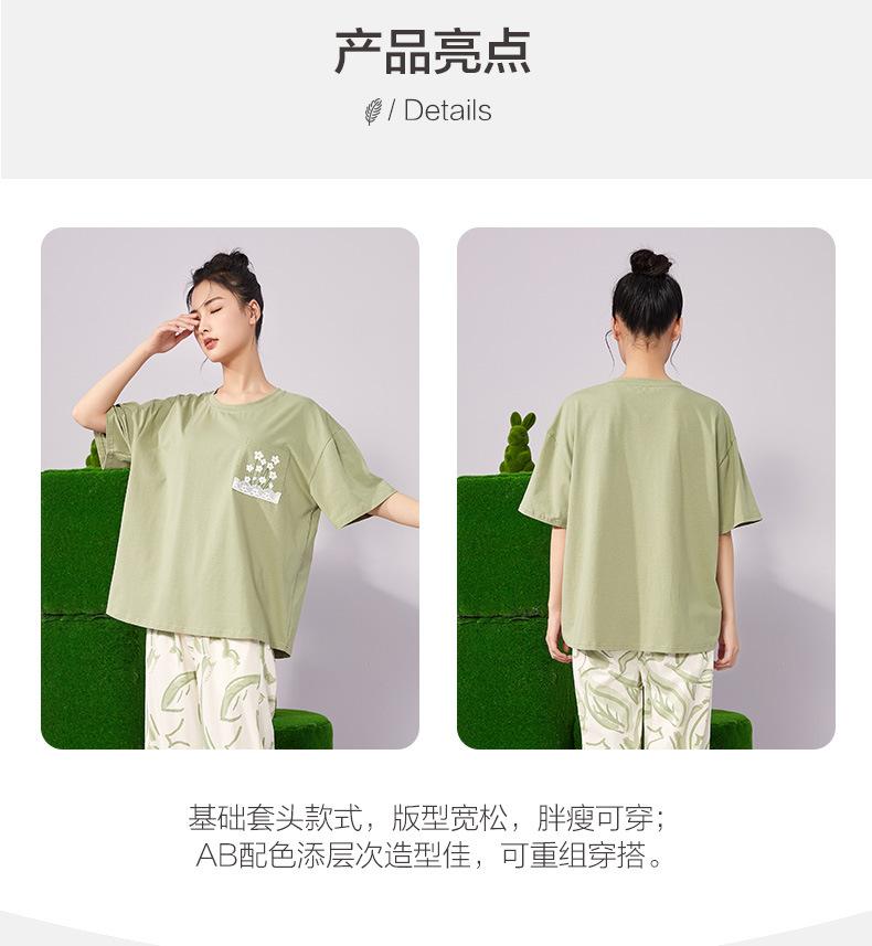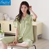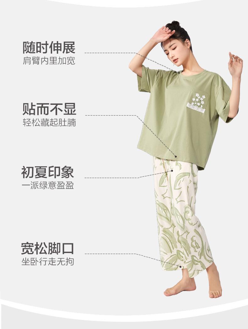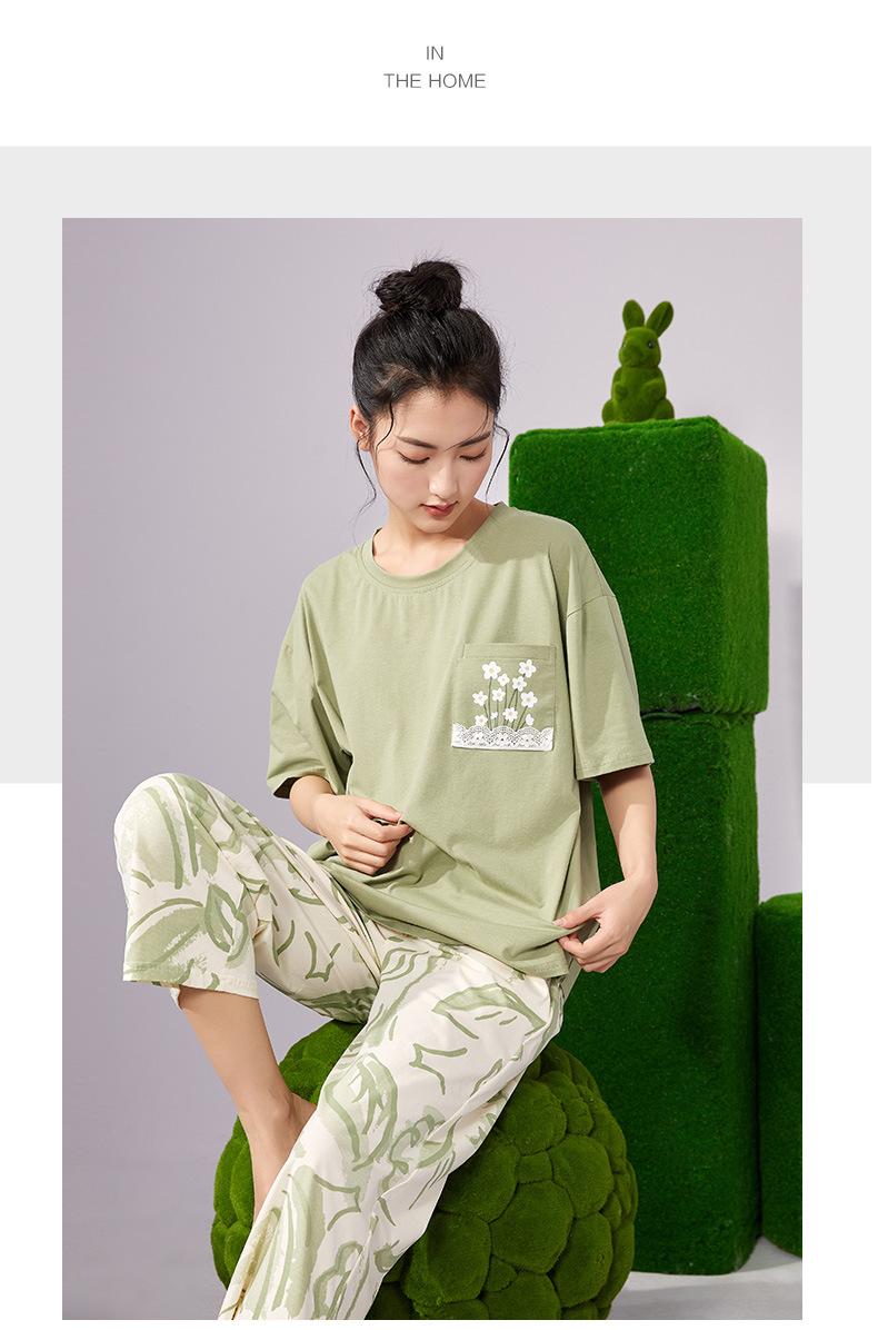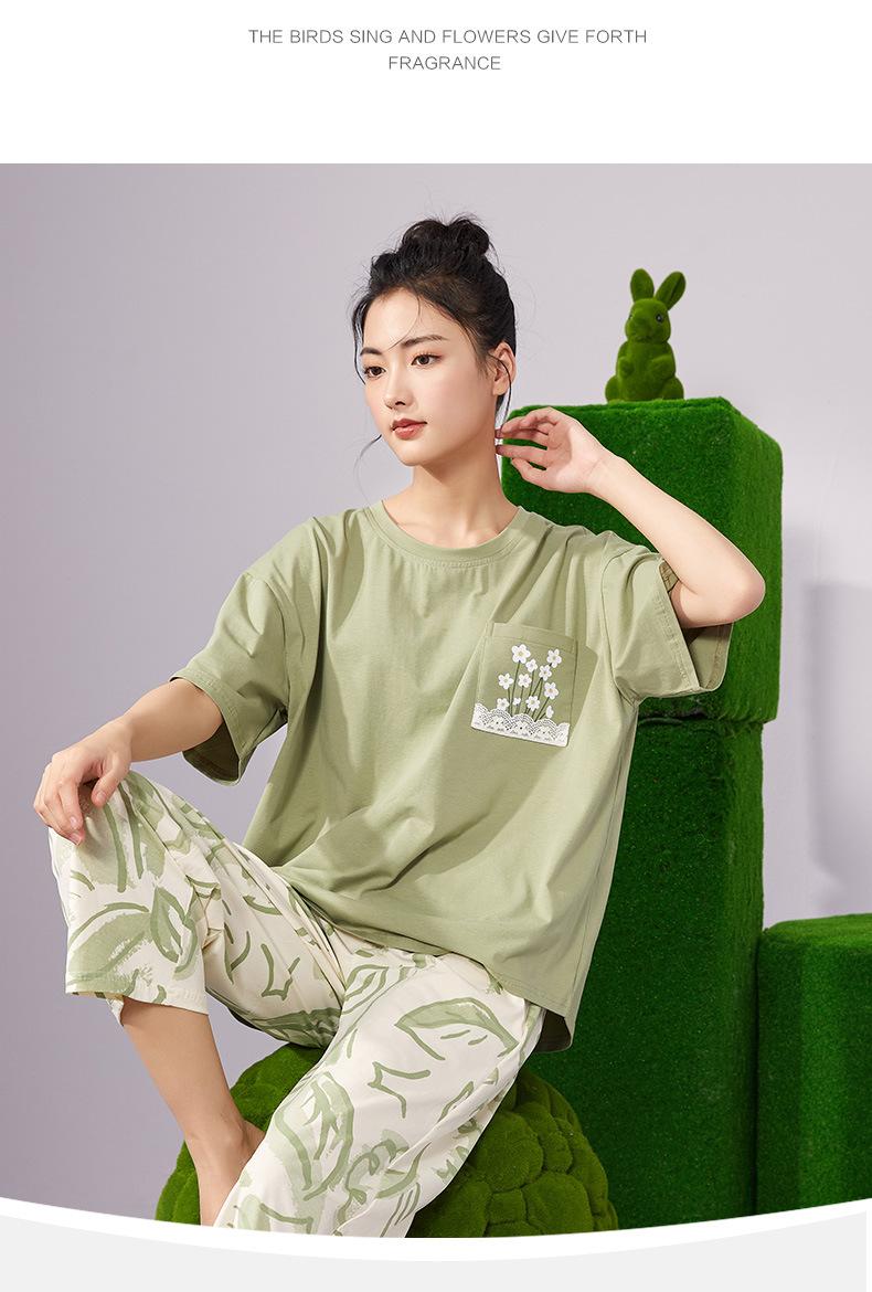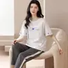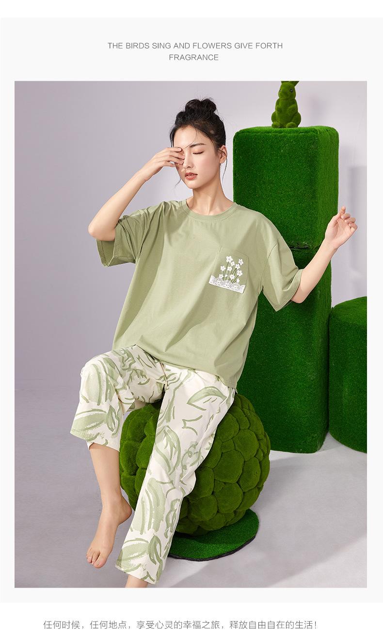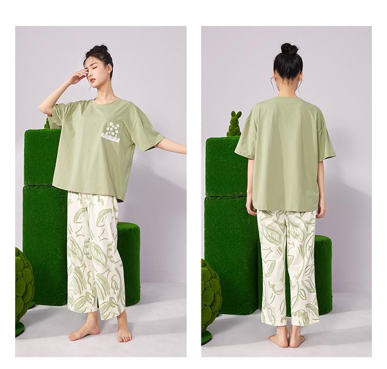 Pijama de verano juvenil para mujer, de manga corta, pantalones capri, algodón puro, lindo, talla grande, holgado, coreano, fino, traje para estar en casa