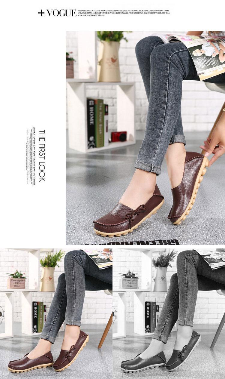 Zapatos individuales casuales para mujer, zapatos de mamá de cuero genuino, zapatos planos tipo mocasín, zapatos de enfermera con cordones, suela de tendón de res, zapatos bajos, talla grande