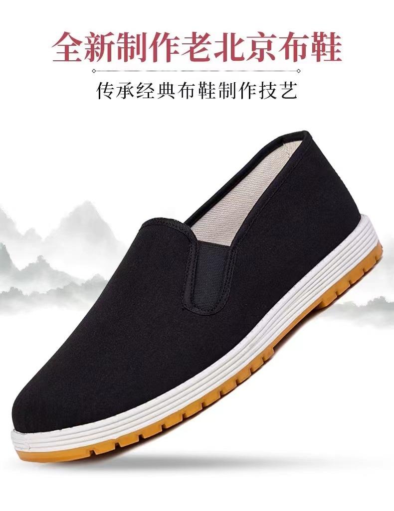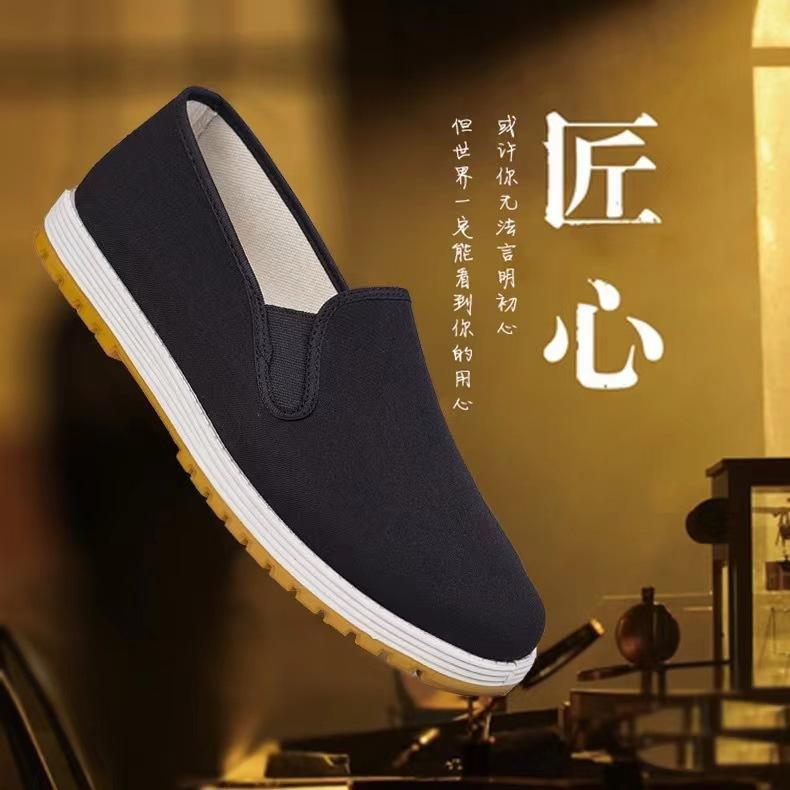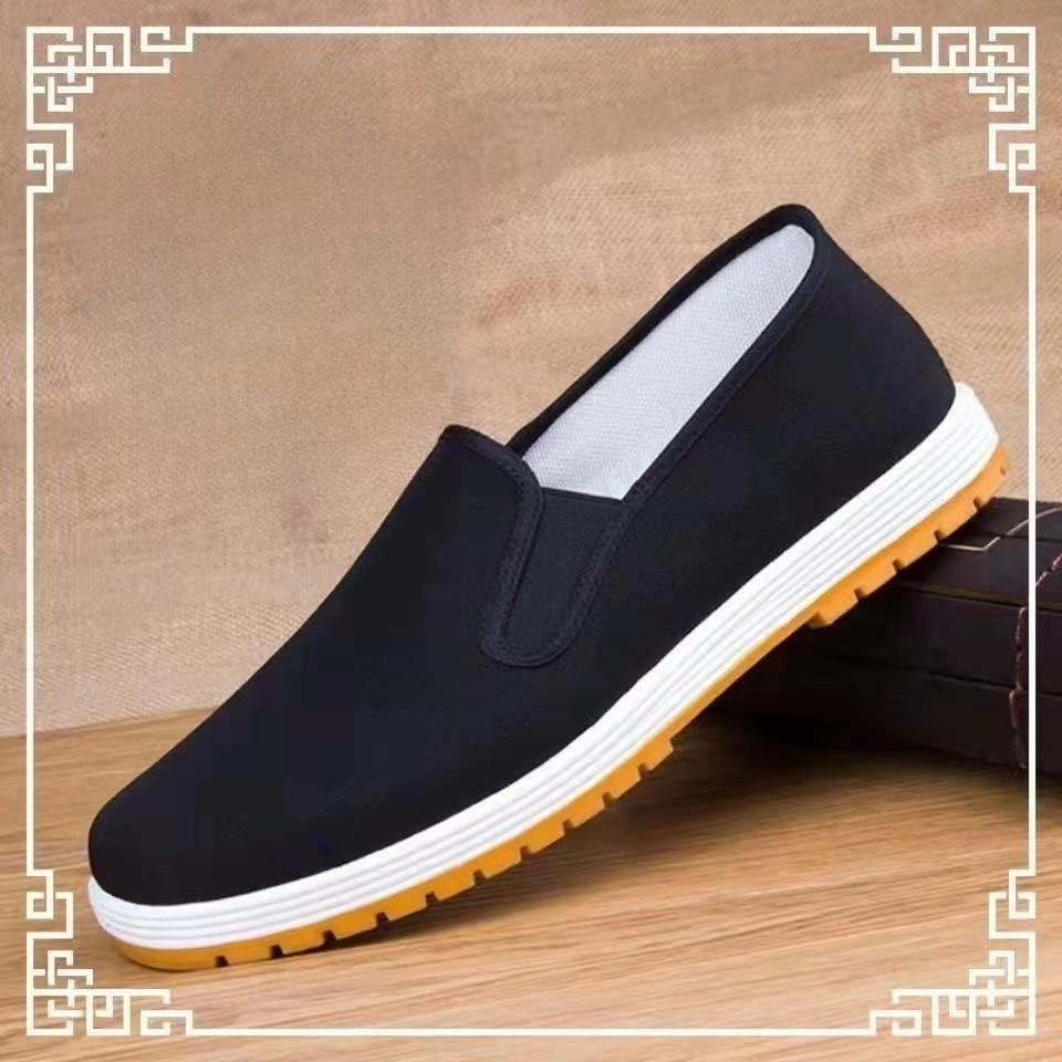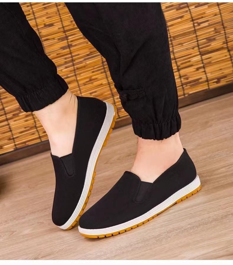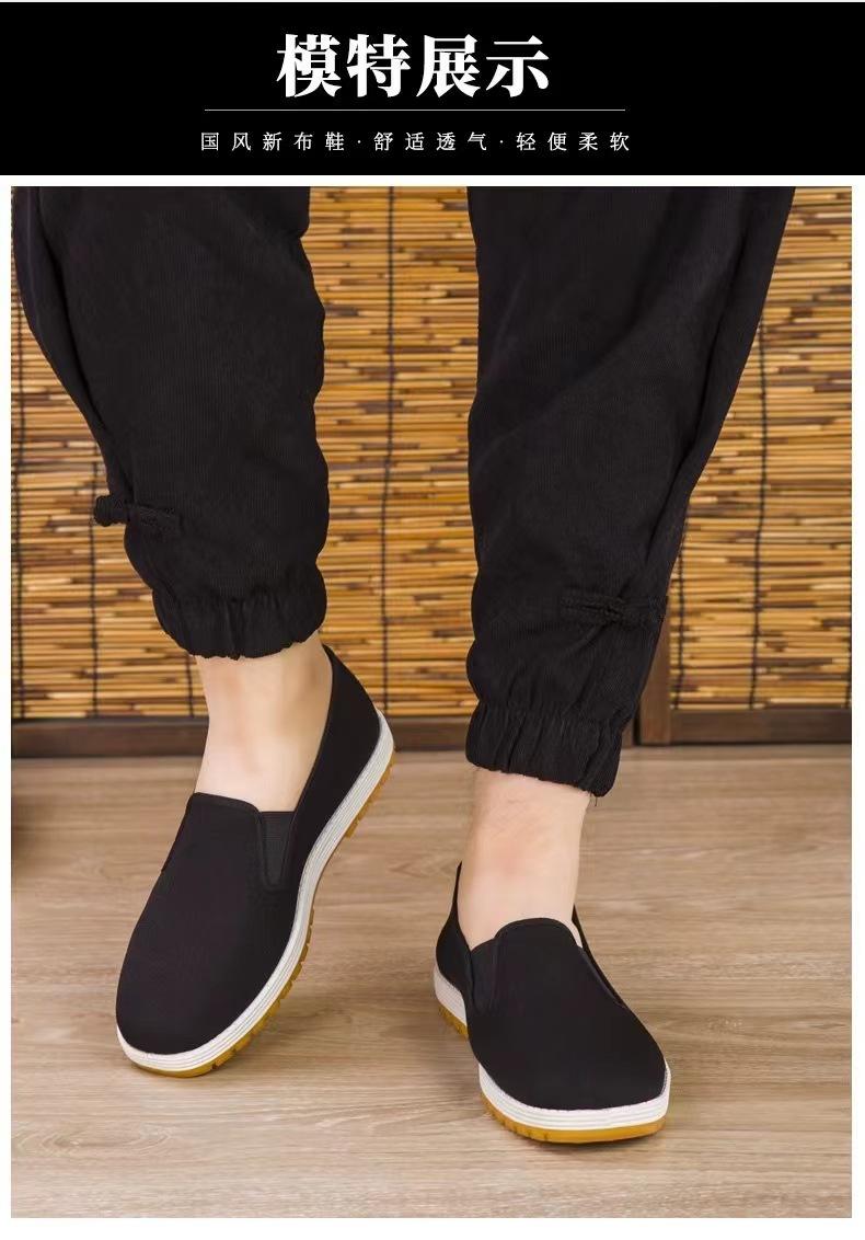 Zapatos Oxford de tela negra con suela esmerilada, informales, cómodos y transpirables, sin cordones, estilo clásico de Beijing