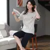 Pijama de verano para mujer, de algodón fresco, de manga corta, con pantalones cortos, de dibujos animados, informal, fino, cómodo, holgado, para el hogar juvenil.