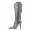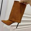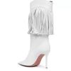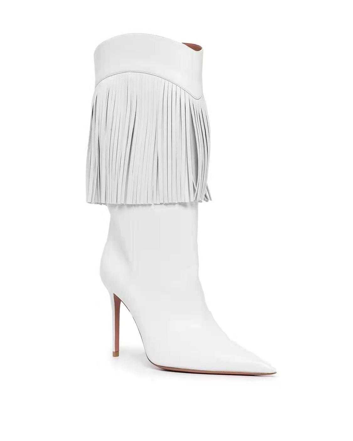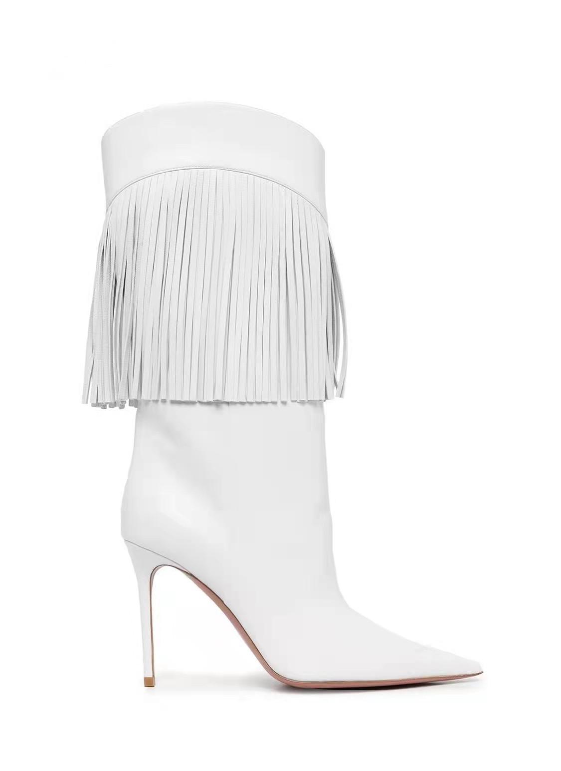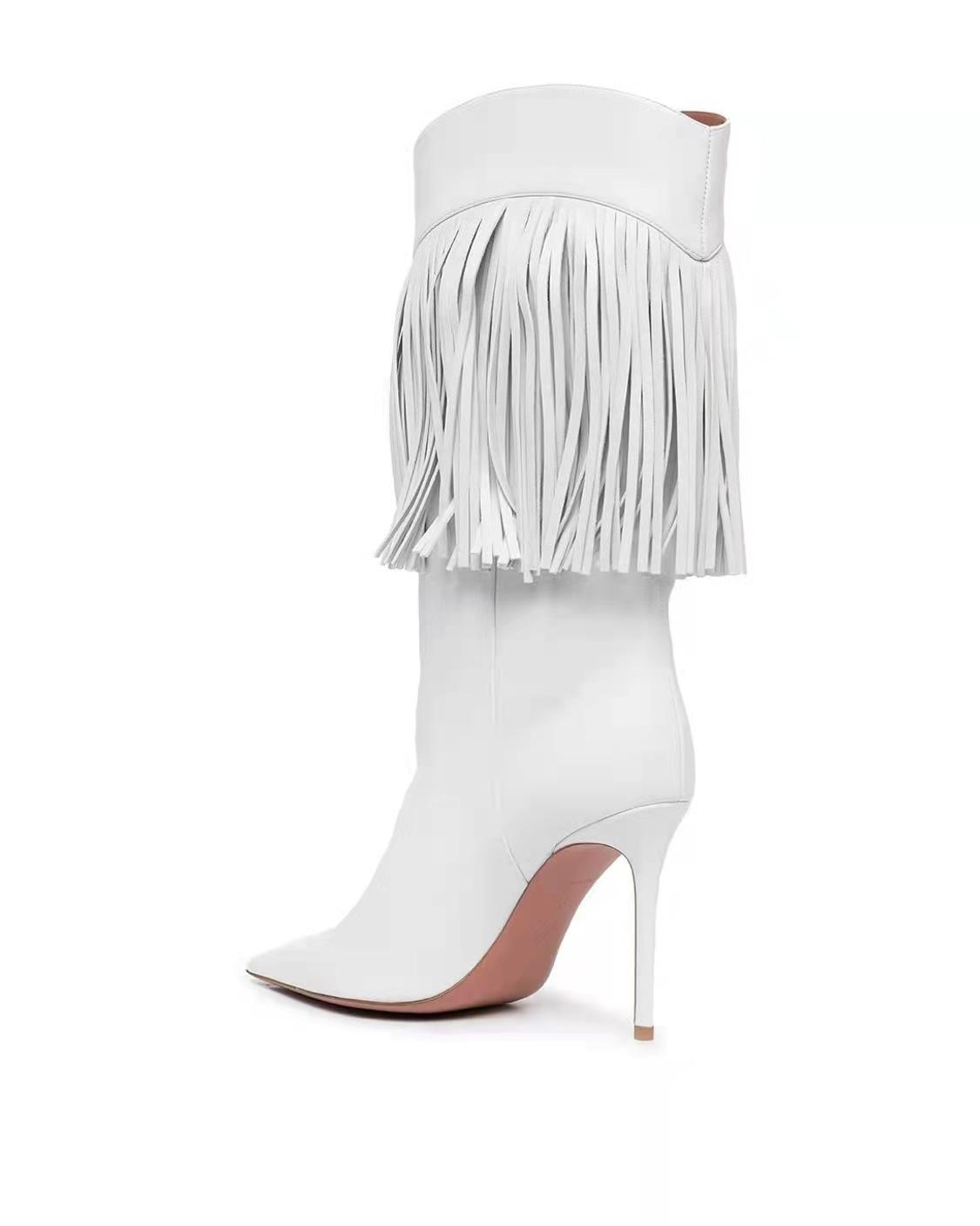 Botas de mujer de talla grande con borlas de cuero y tacón fino puntiagudo de comercio exterior de invierno 2024