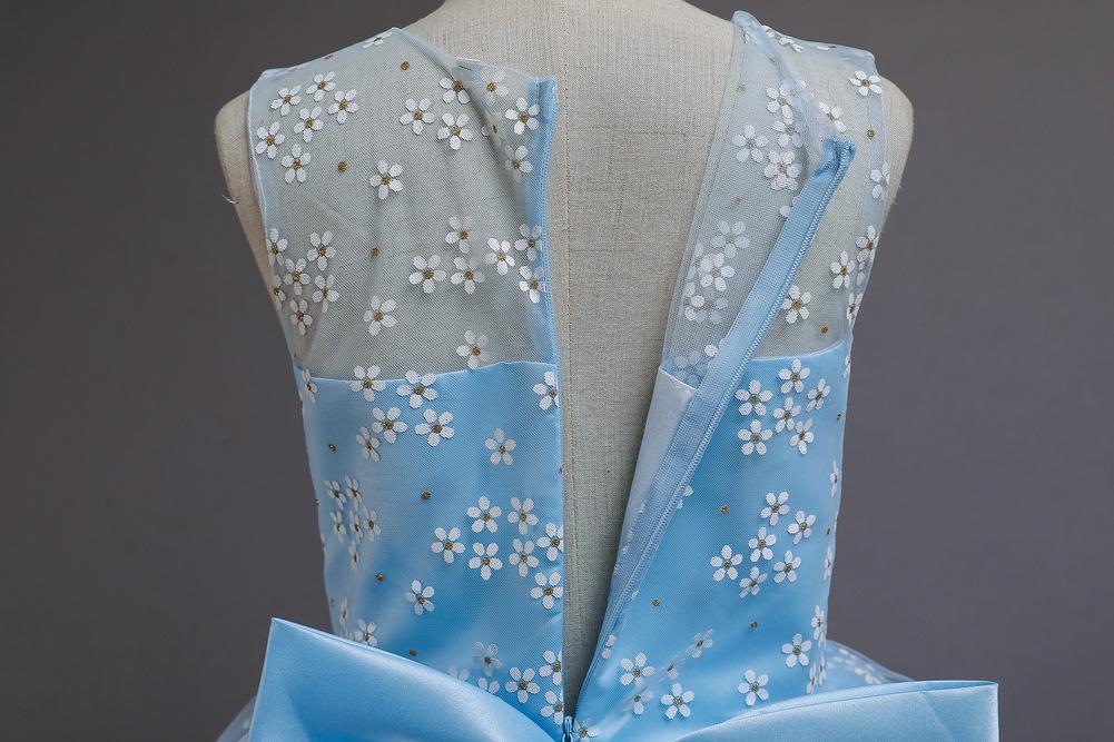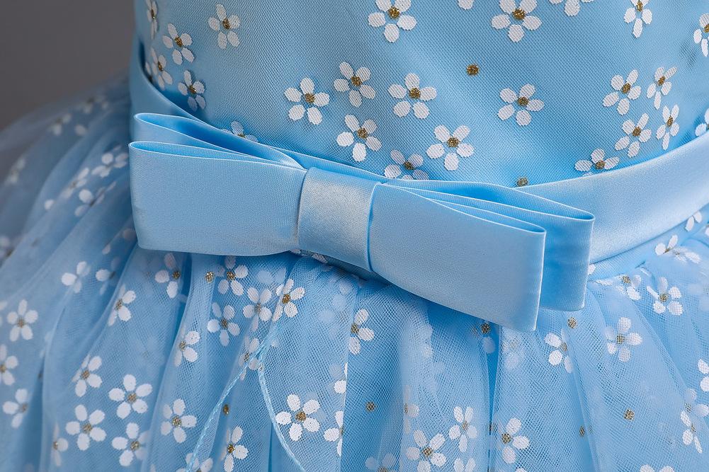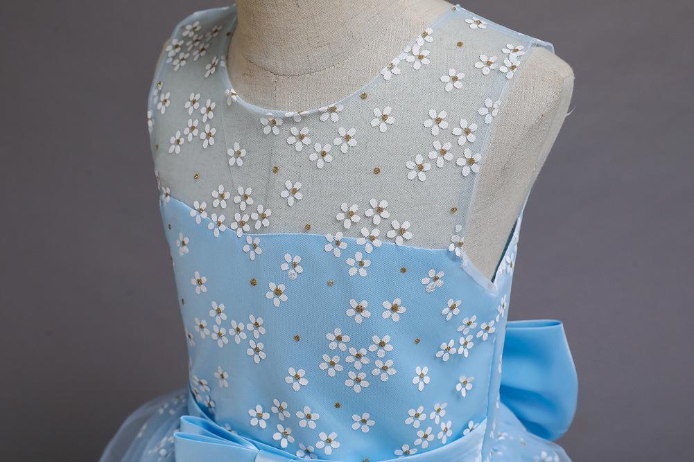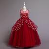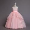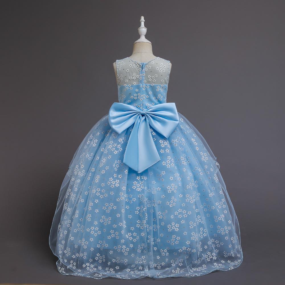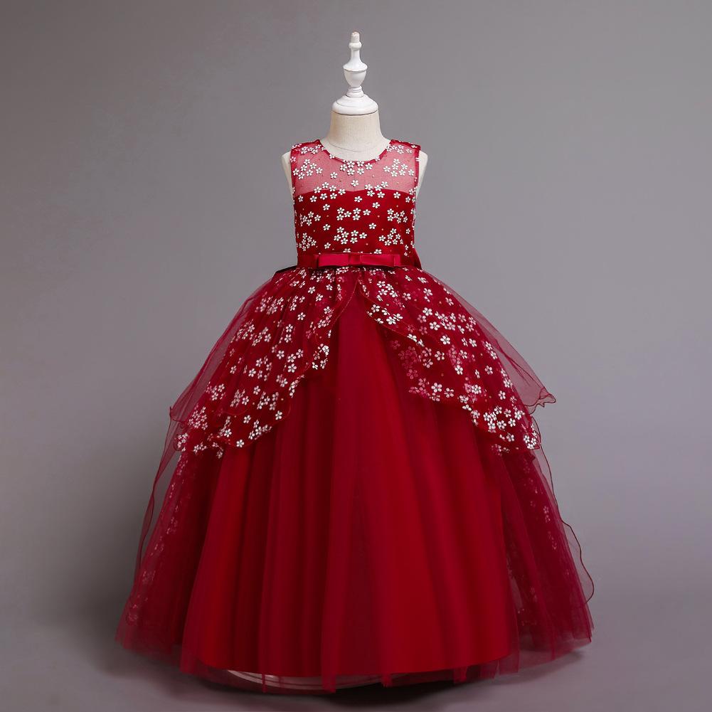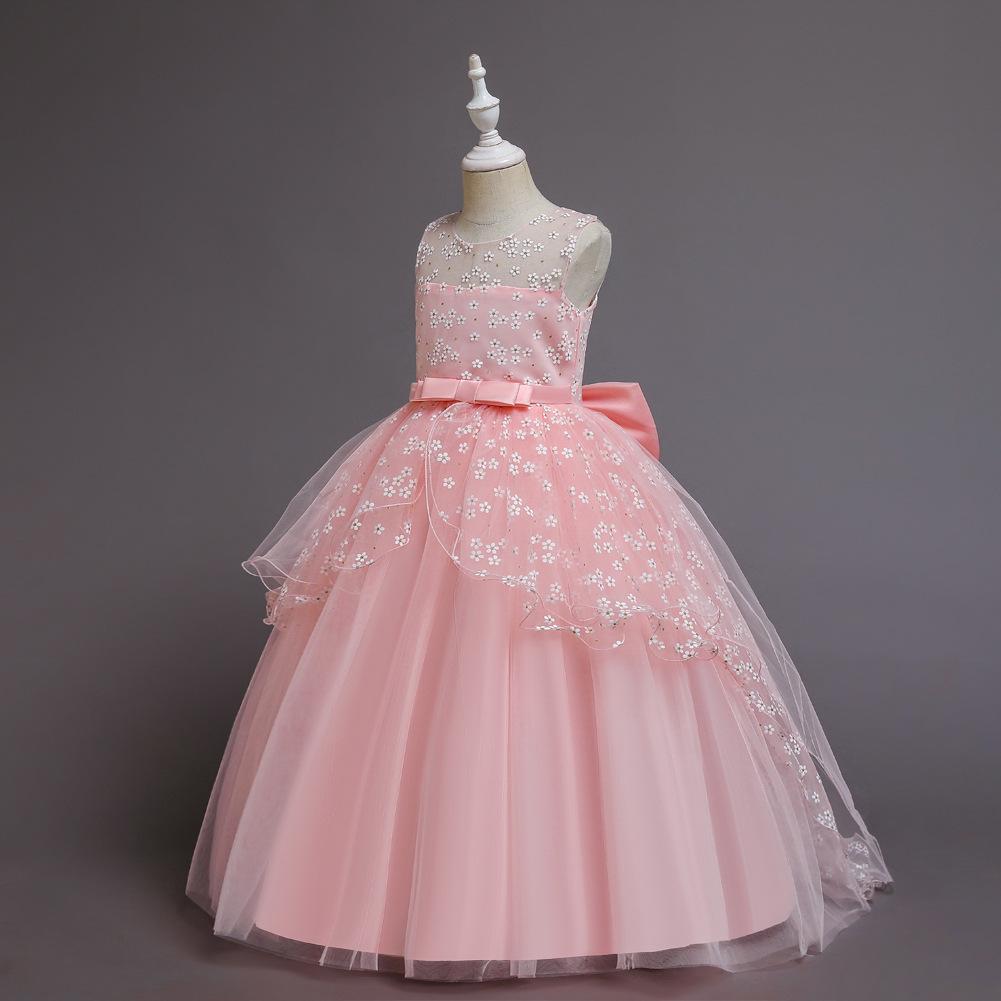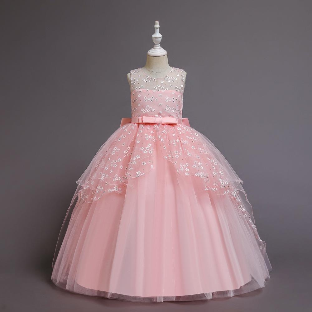 Vestido infantil europeo y americano nuevo, vestido infantil grande con lazo de flores de encaje, vestido de princesa para niña pequeña con cola de flores
