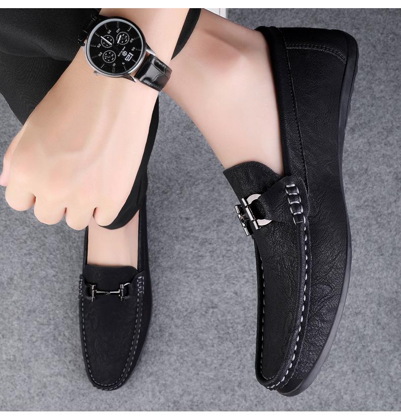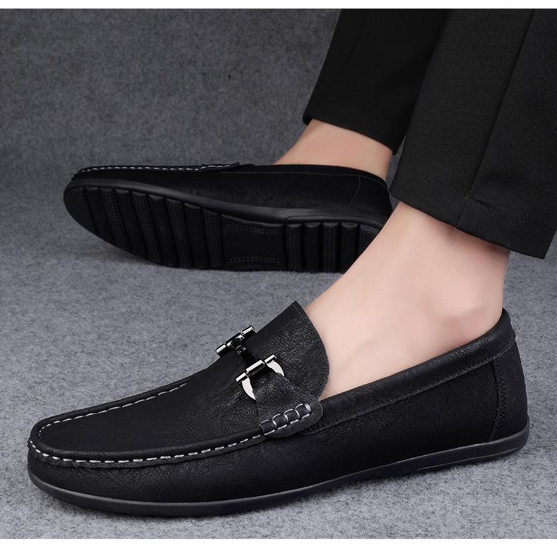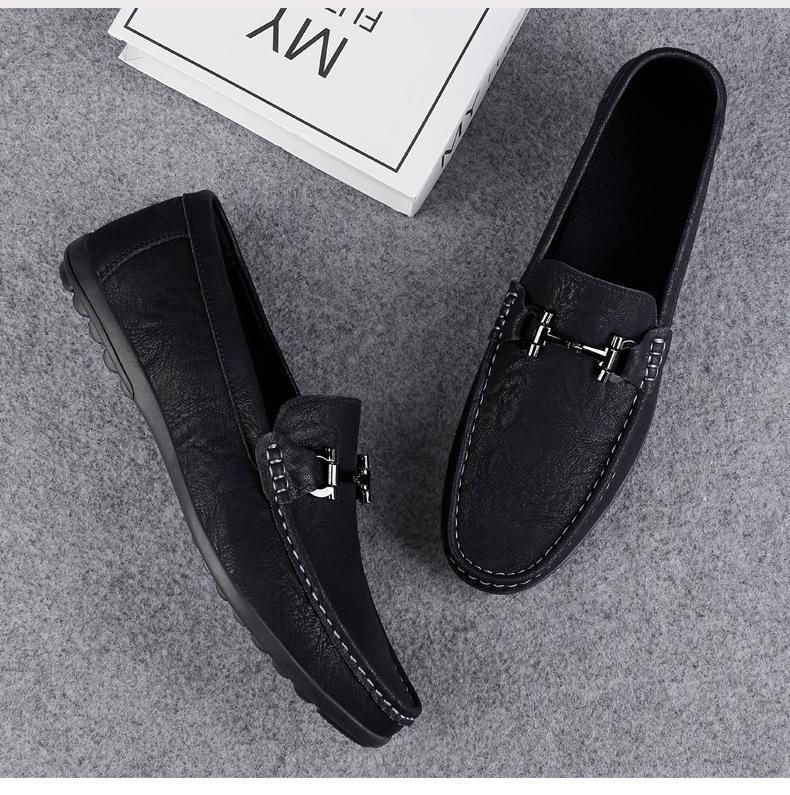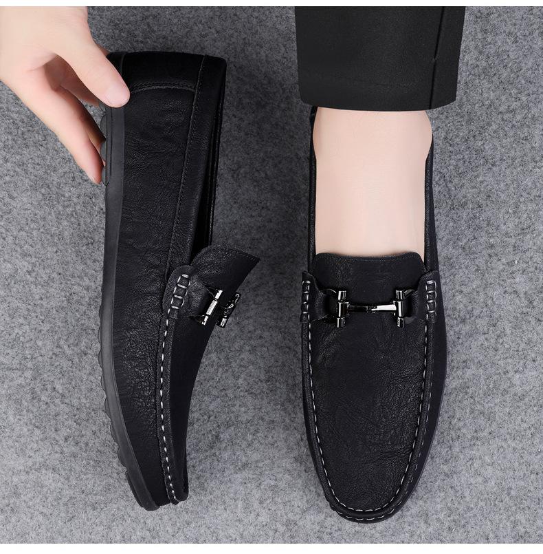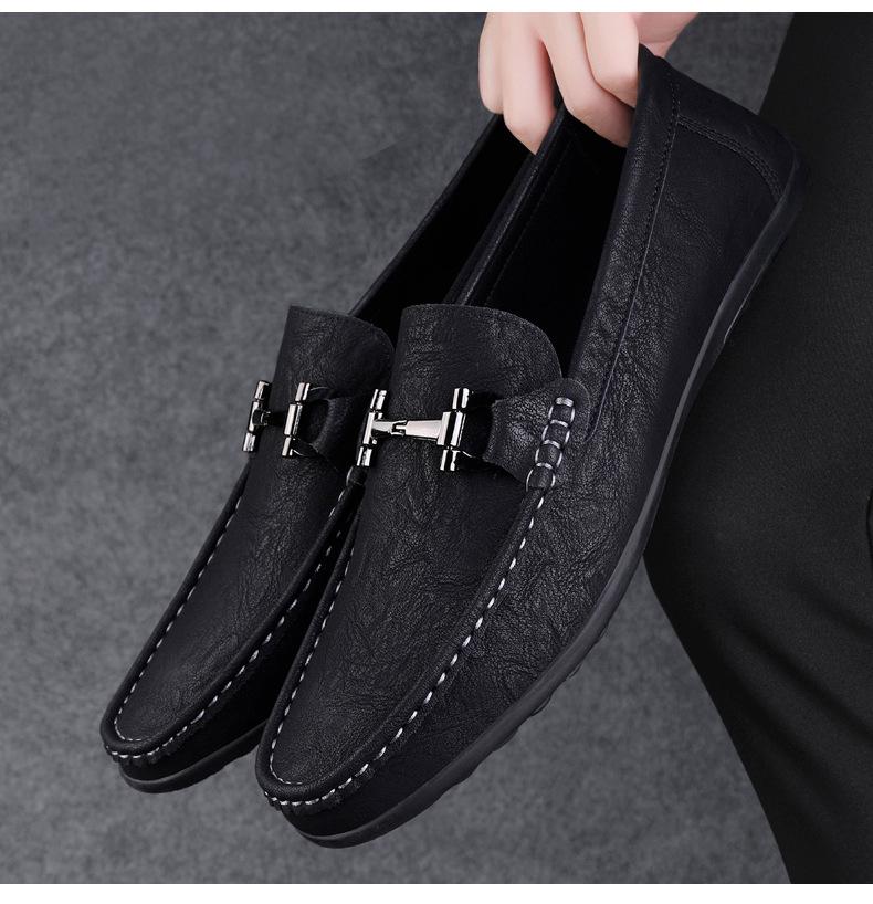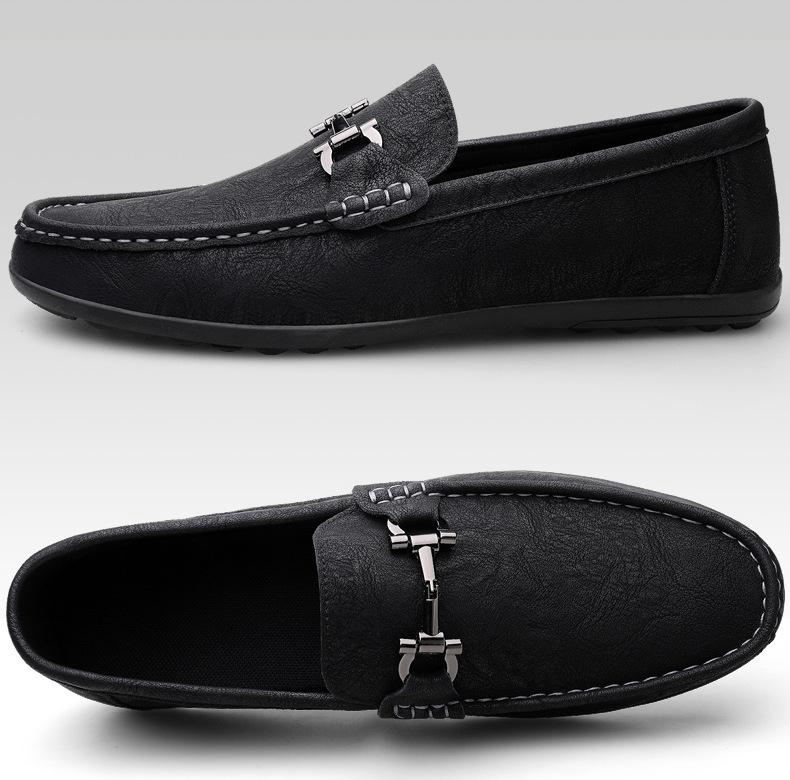 Talla grande transfronteriza Otoño Simple Zapatos Casuales Holgazanes para Hombre Zapatos de Cuero de Talla Grande para Hombre Zapatos Negros