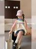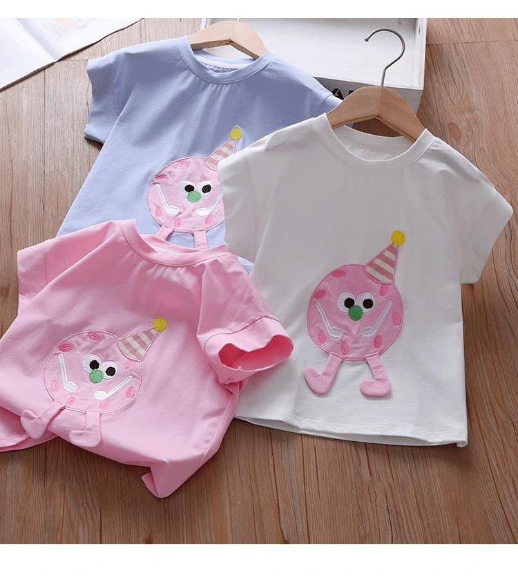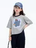 Camiseta de Verano de Manga Corta para Niñas 2025 Top Casual Holgado de Estilo Coreano para Niñas Ropa de Verano Bordada de Algodón para Niños Ropa para Niños