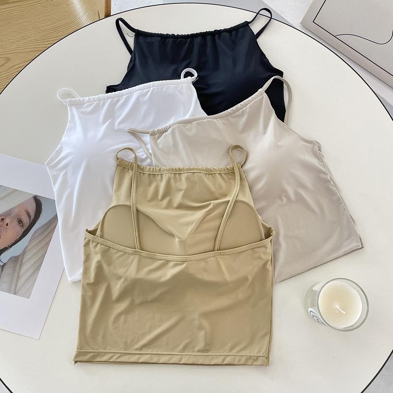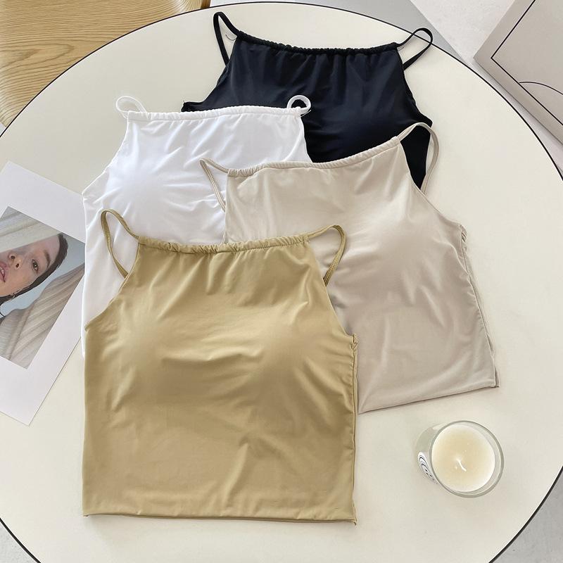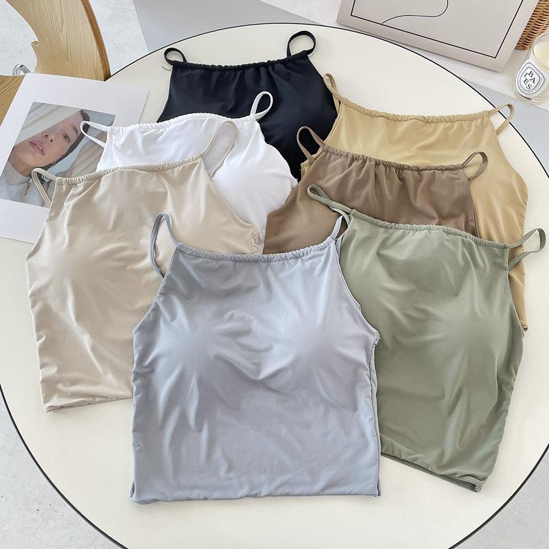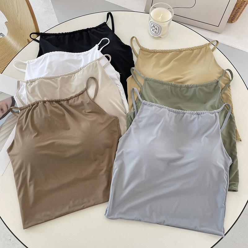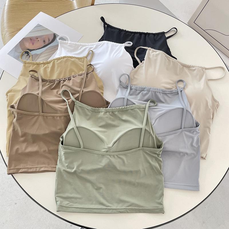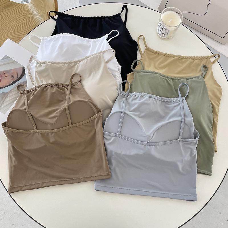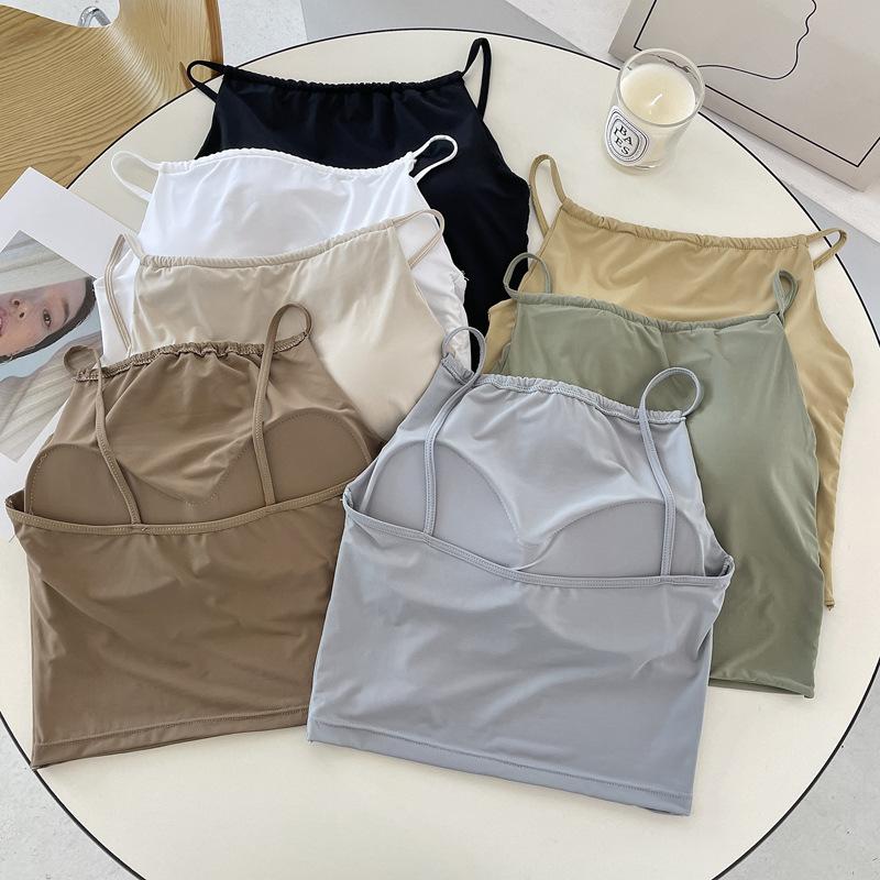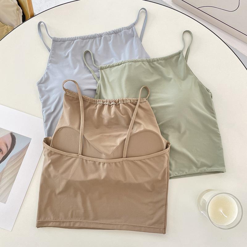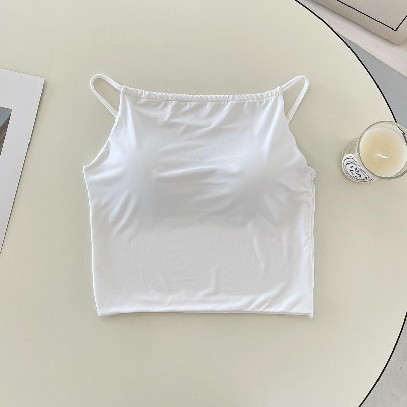 Camisola pequeña de verano para mujer, diseño interior con nicho de sensación con almohadilla para el pecho, ropa exterior adelgazante, top corto sin mangas para chica sexy