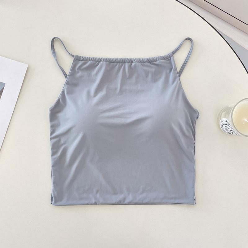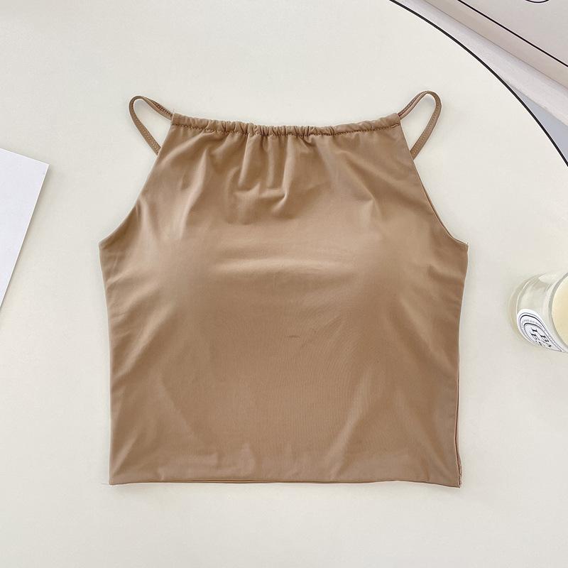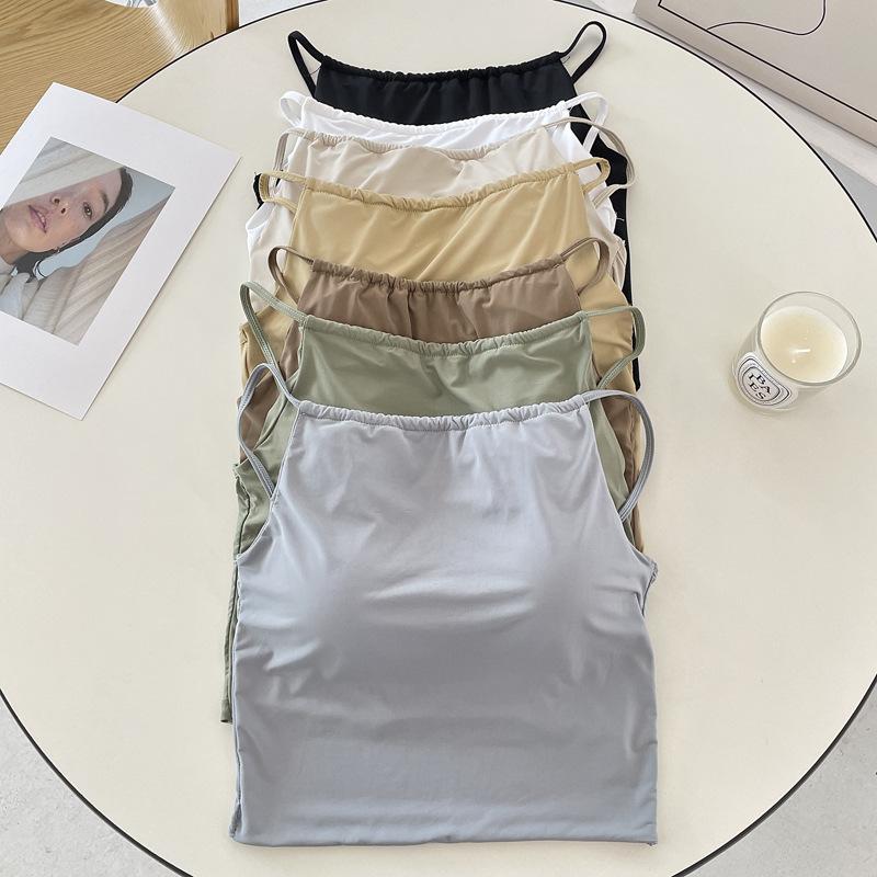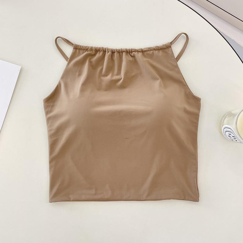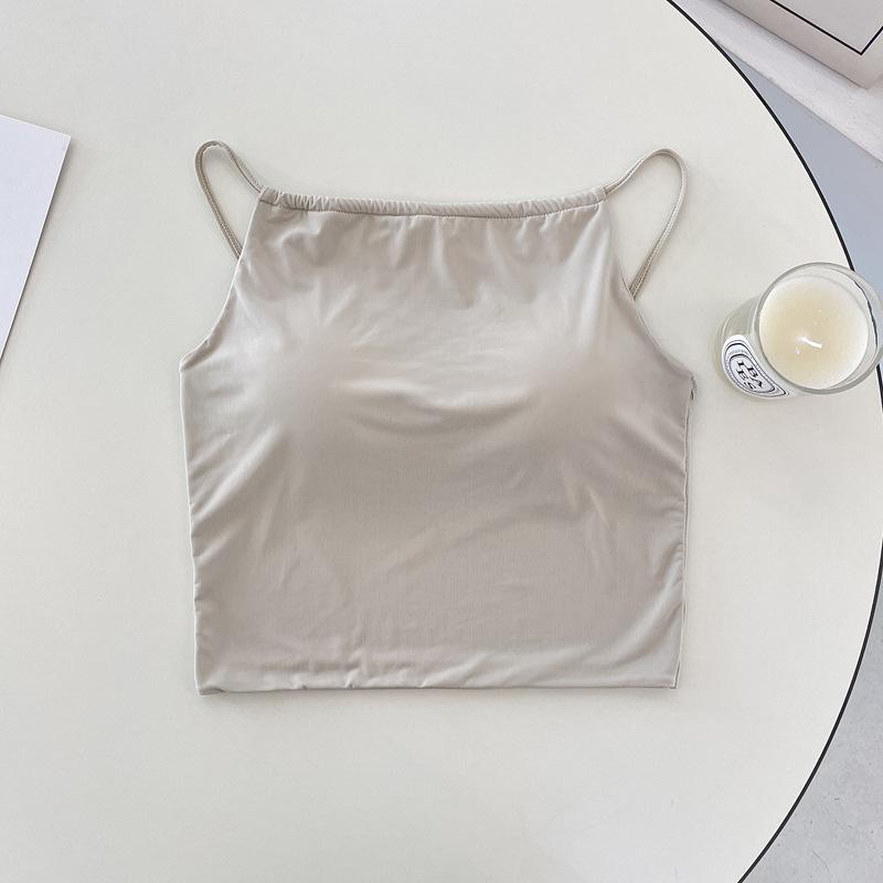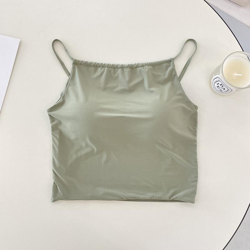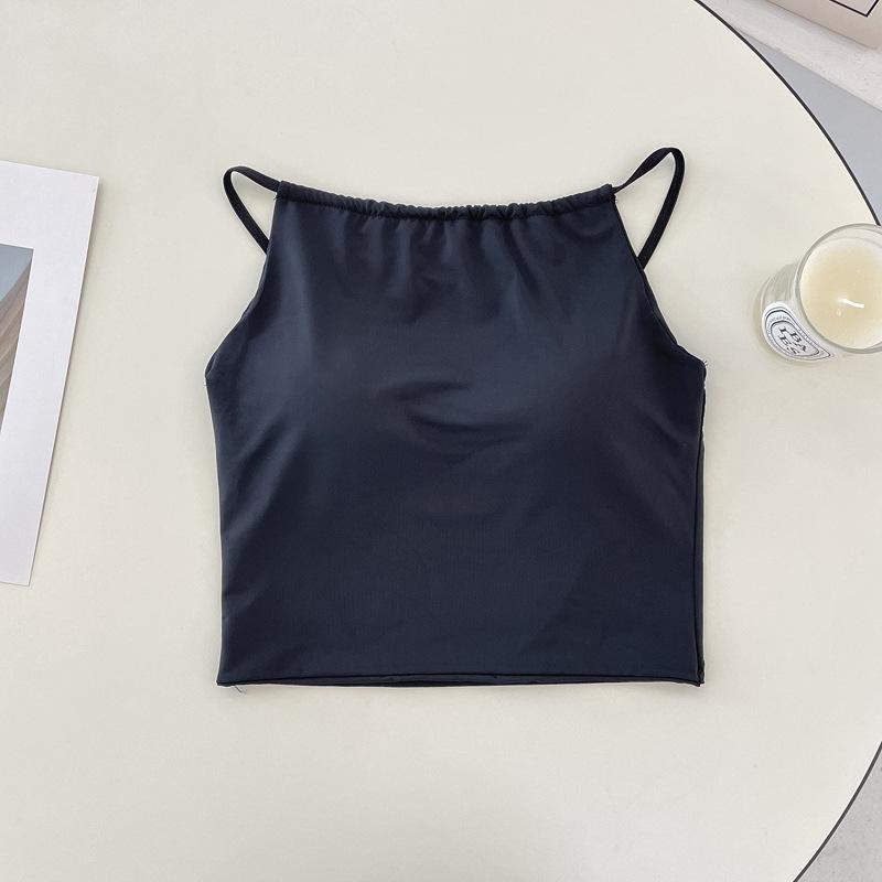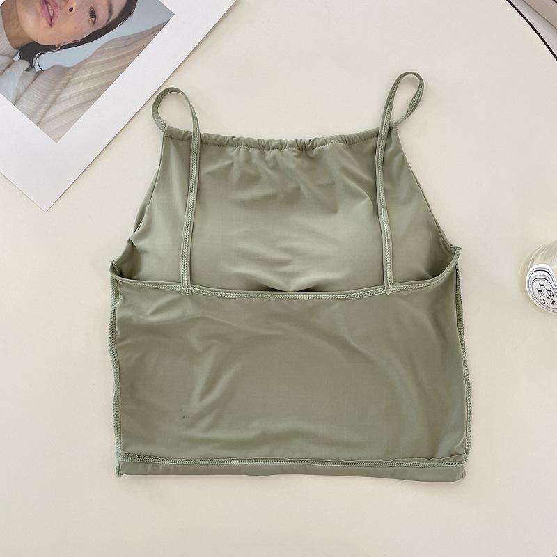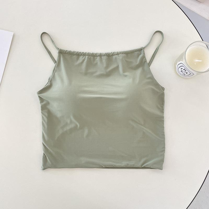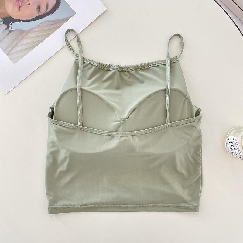 Camisola pequeña de verano para mujer, diseño interior con nicho de sensación con almohadilla para el pecho, ropa exterior adelgazante, top corto sin mangas para chica sexy